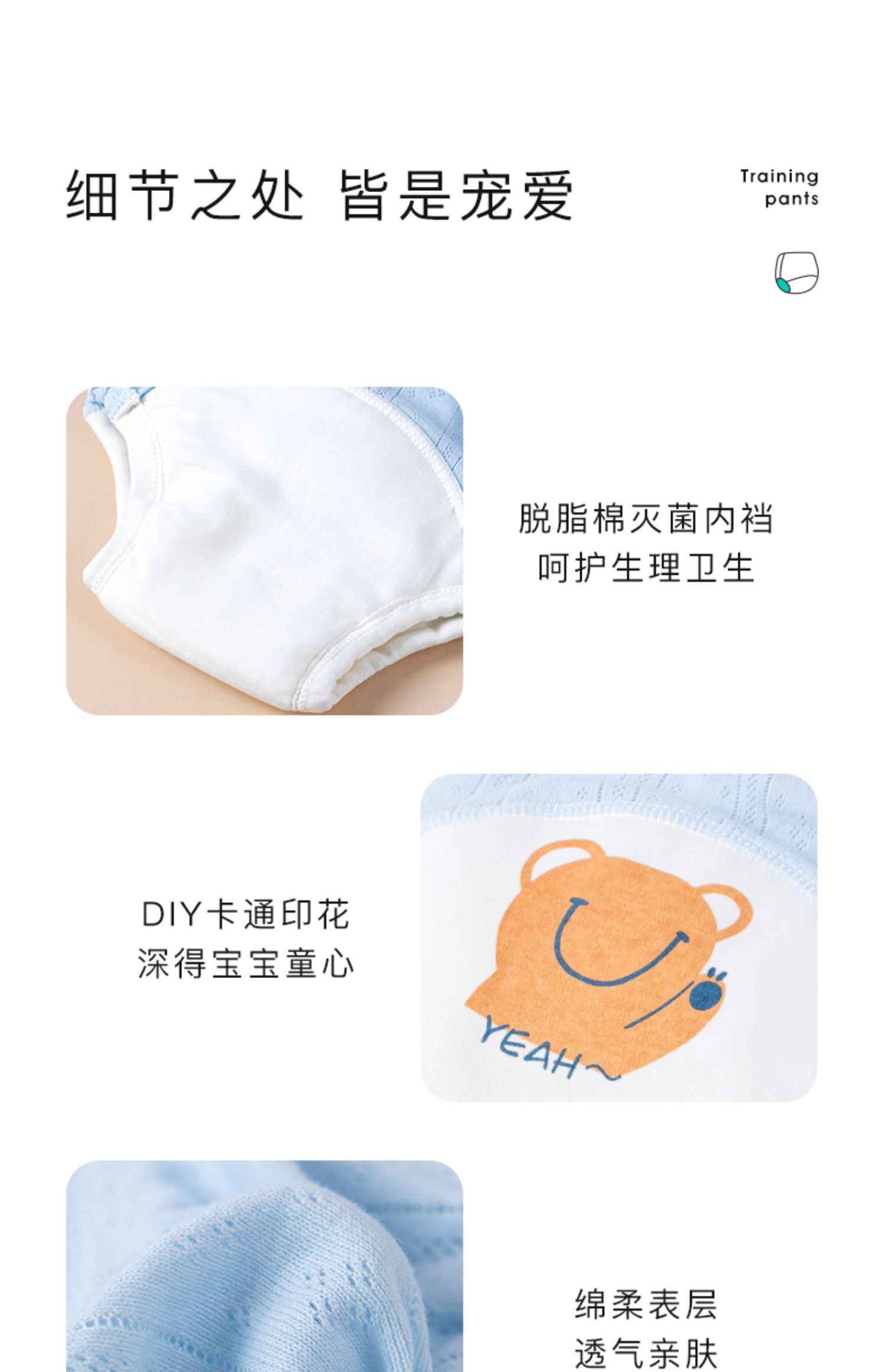 Beedoll蓓兜如厕训练裤夏季男宝宝隔尿内裤纯棉可洗婴儿女童戒尿不湿神器