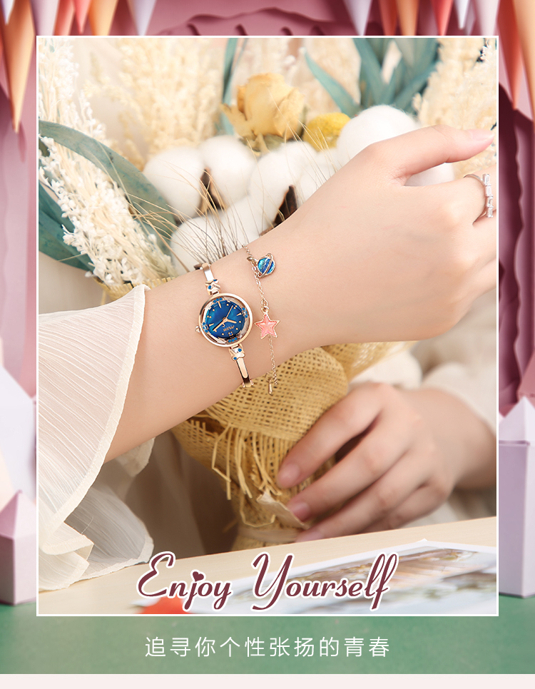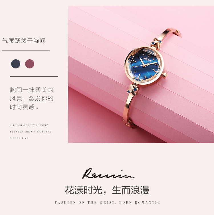 聚利时(Julius)手表女韩版时尚闪耀水钻女式纤细手链防水石英女士手表蓝盘JA-878D