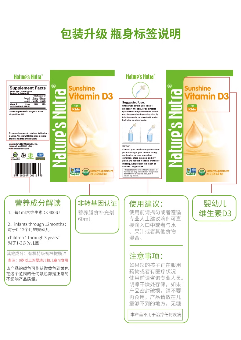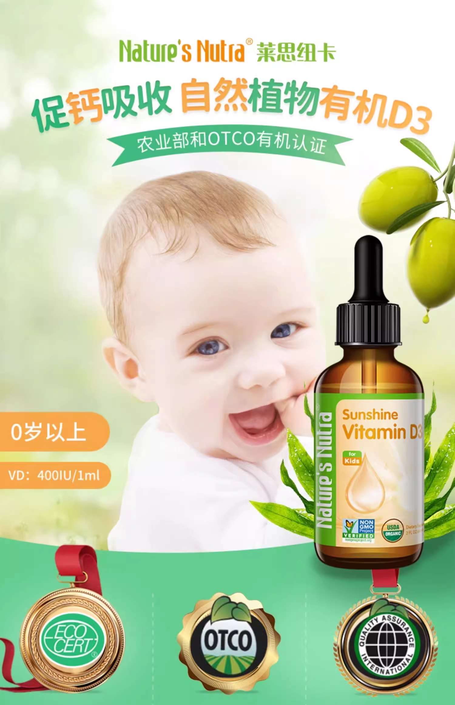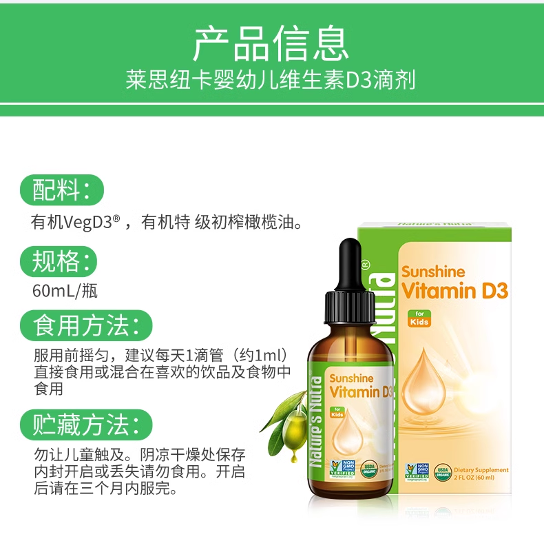 【保税仓发货 包邮包税 新生儿可用】美国莱思纽卡维生素d3婴幼儿宝宝婴儿童d3维生素d滴剂vd促补钙维D