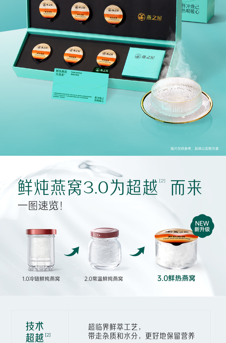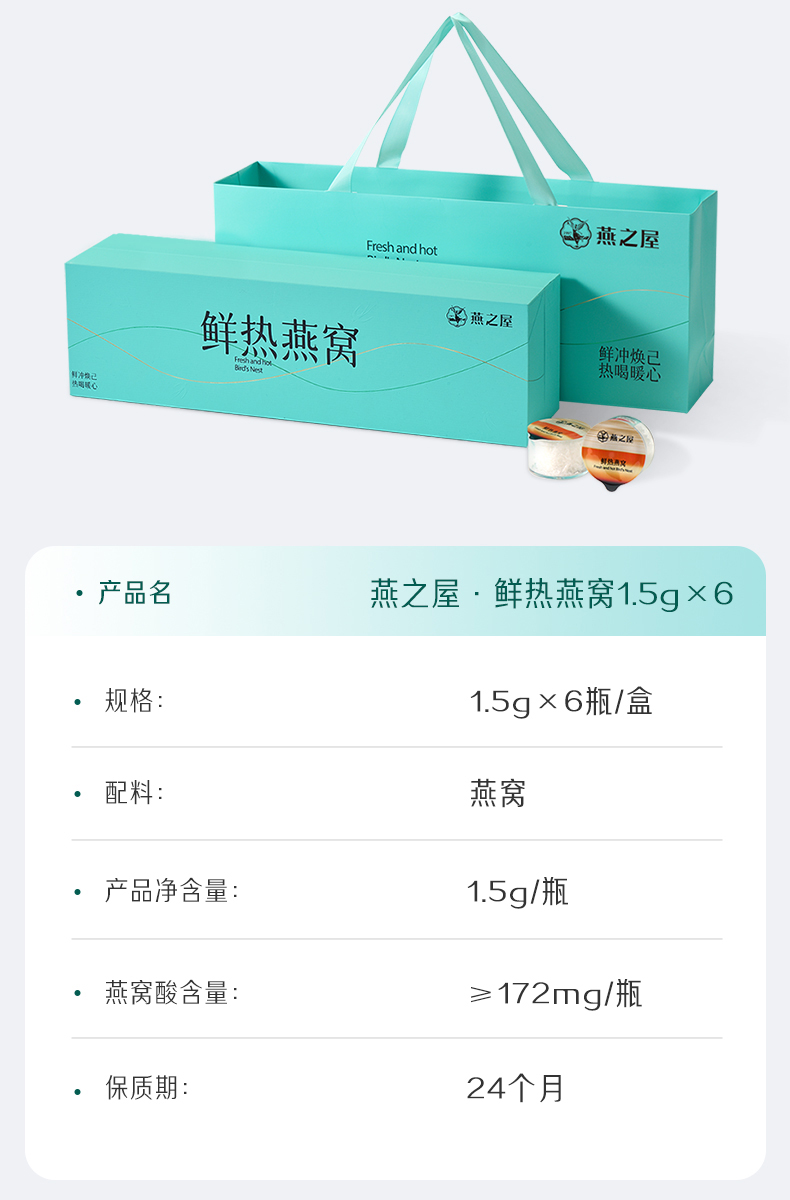 燕之屋鲜热燕窝1.5gx6瓶 礼盒装 即食滋养送女友礼盒【礼盒礼袋】送礼推荐