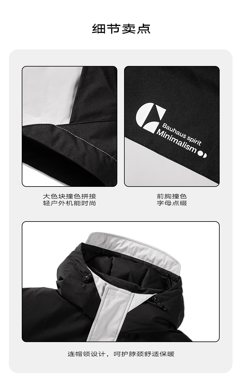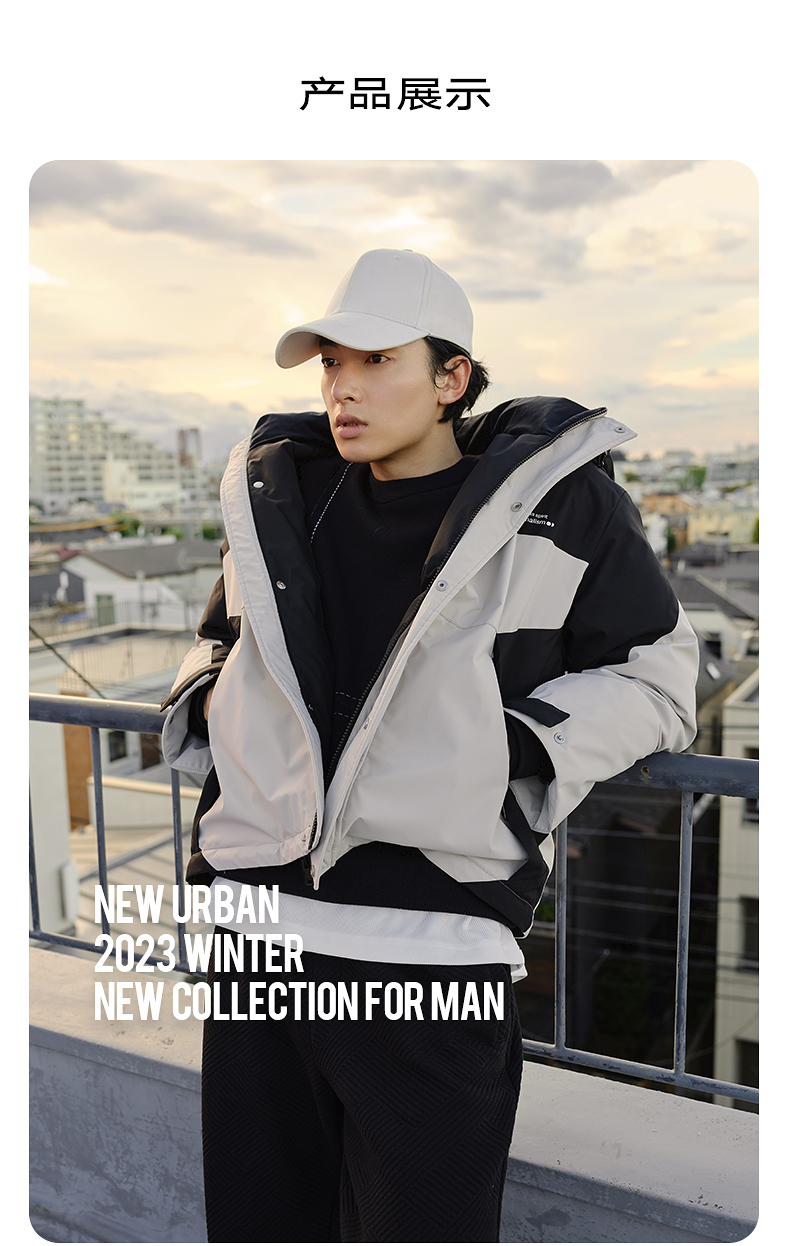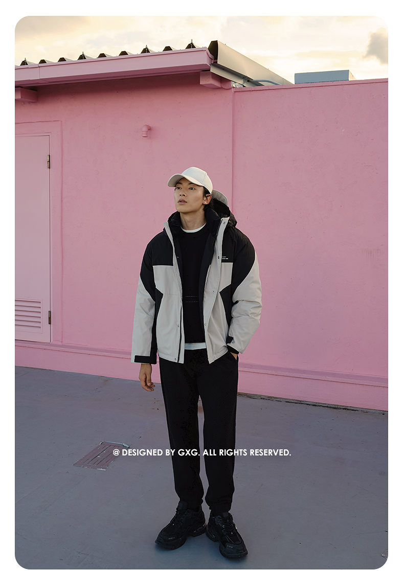 GXG男装 三防面料潮流拼色连帽羽绒服男户外保暖羽绒服 冬热卖