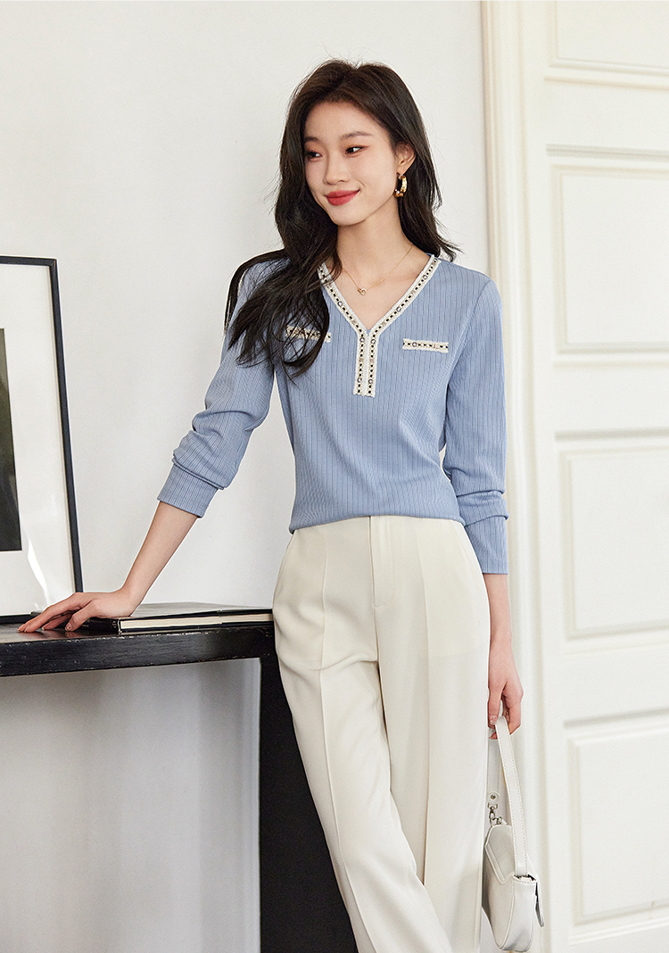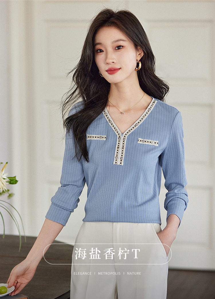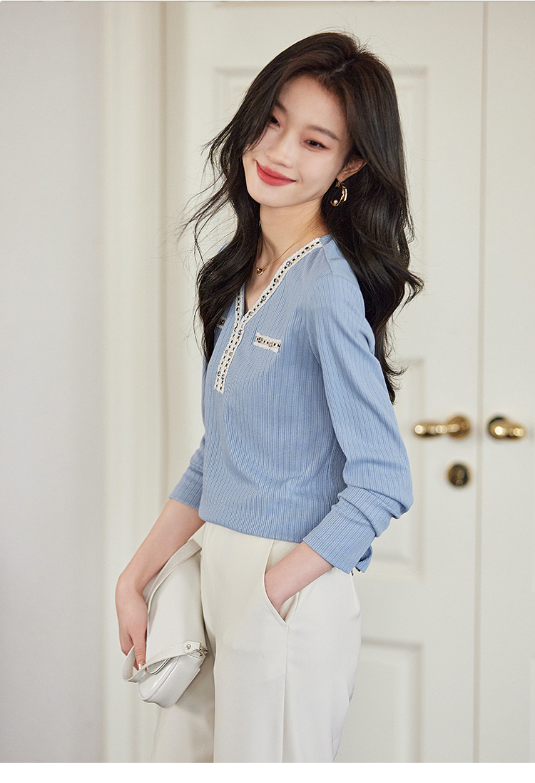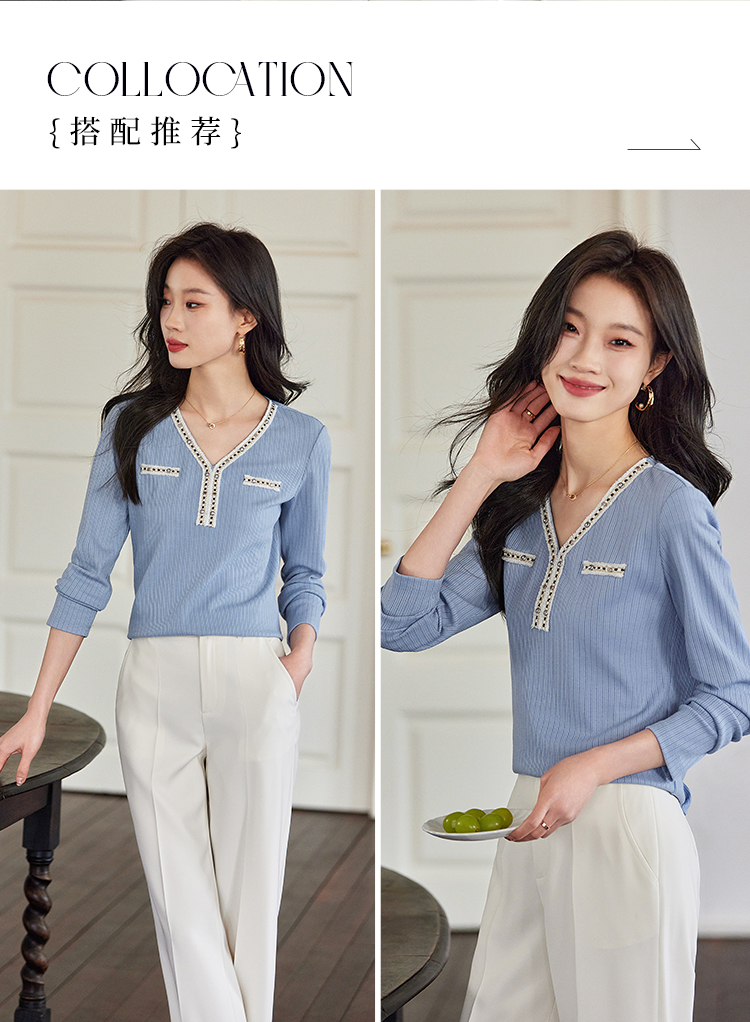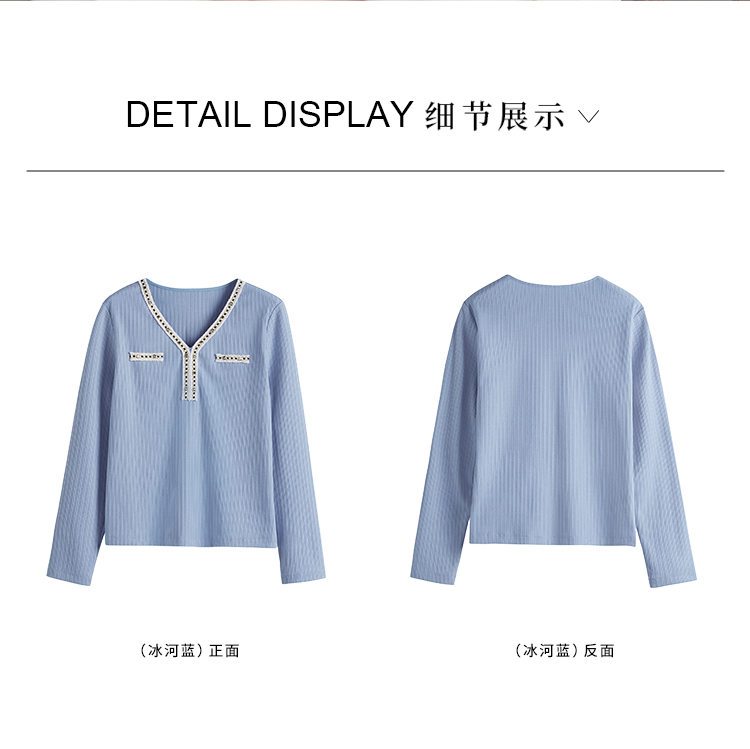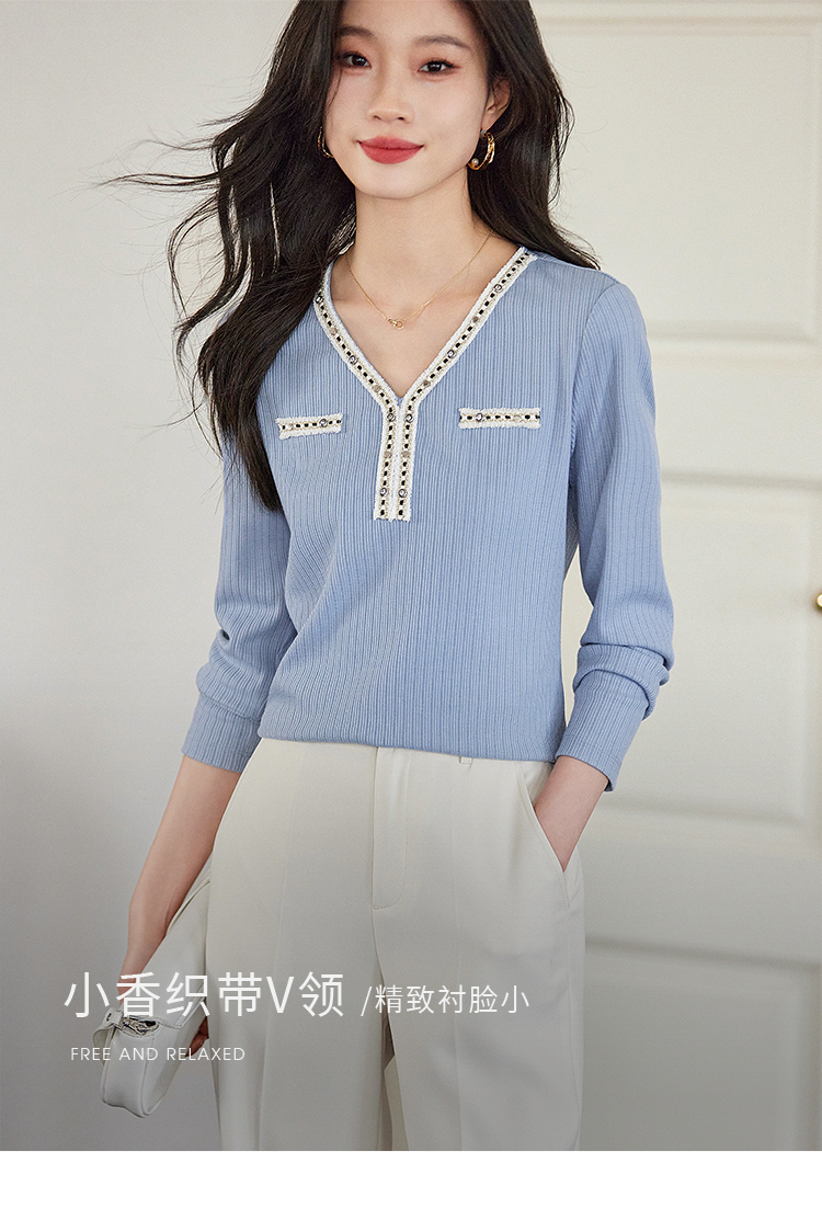【年终特卖】熙世界2025秋新款小香风织带V领针织T恤女时尚洋气减龄长袖上衣