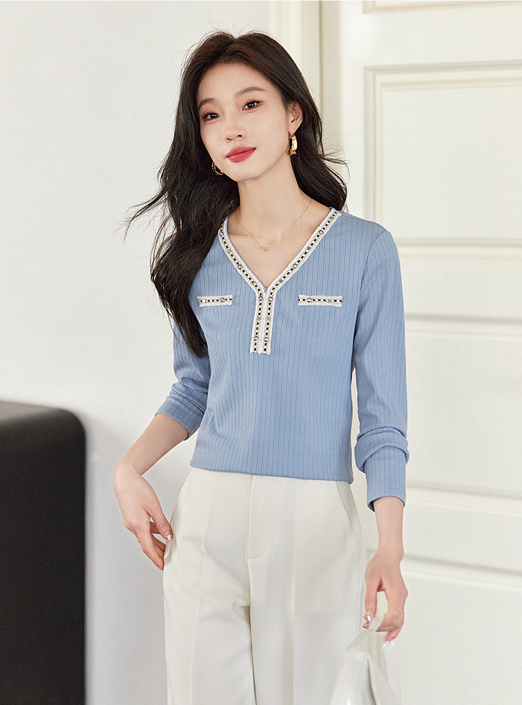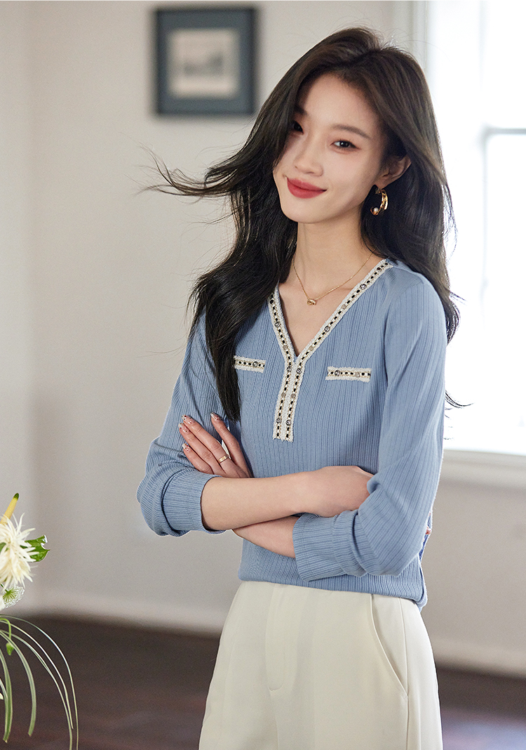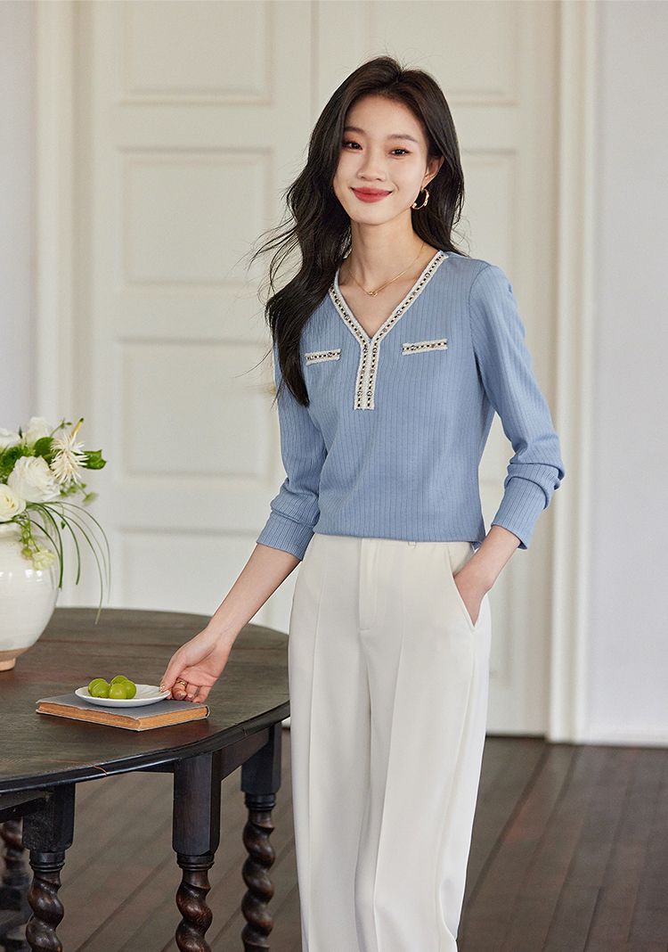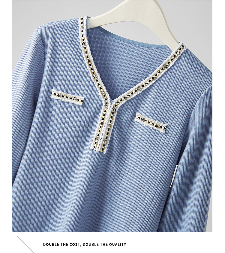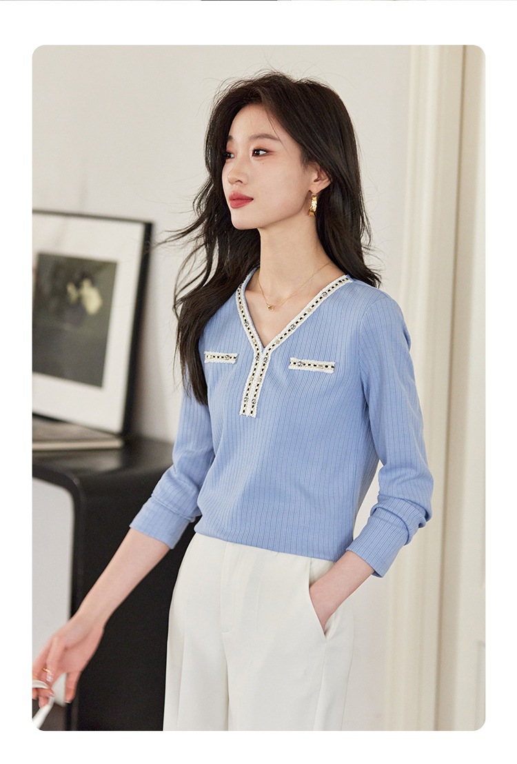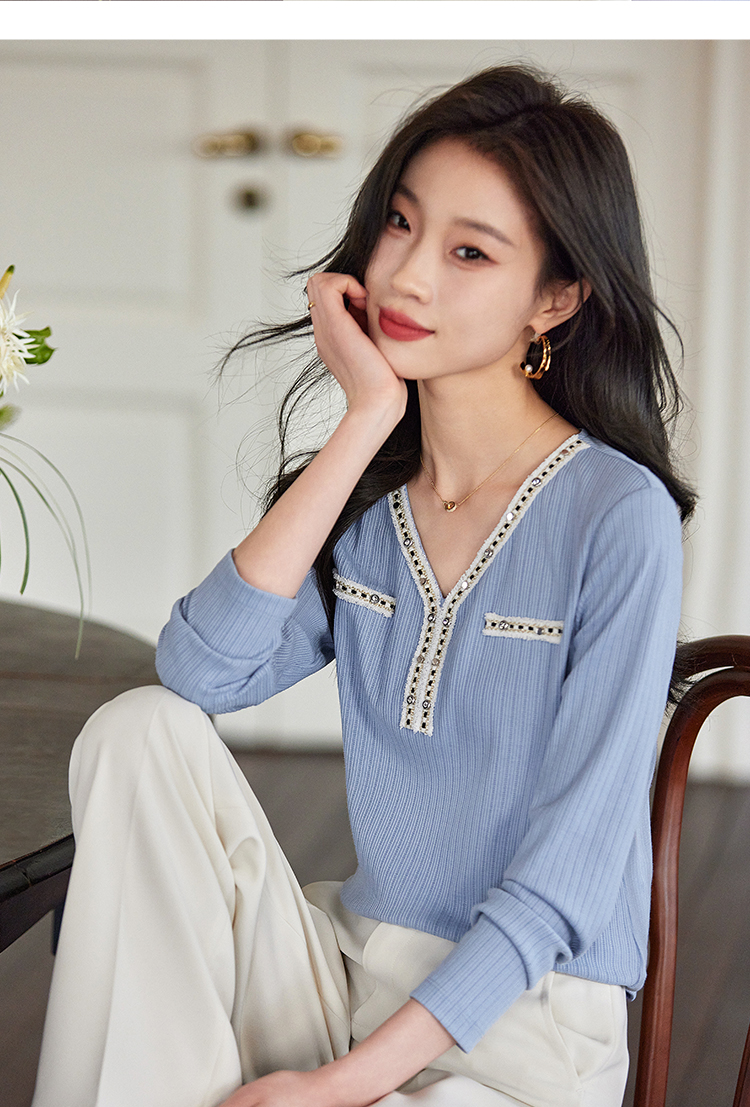 【年终特卖】熙世界2025秋新款小香风织带V领针织T恤女时尚洋气减龄长袖上衣