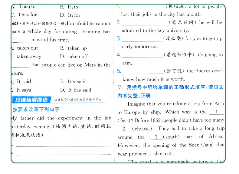 2025春 【译林版】九年级英语(下) 实验班提优训练