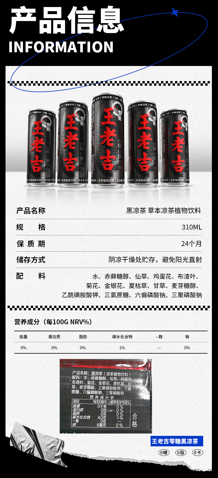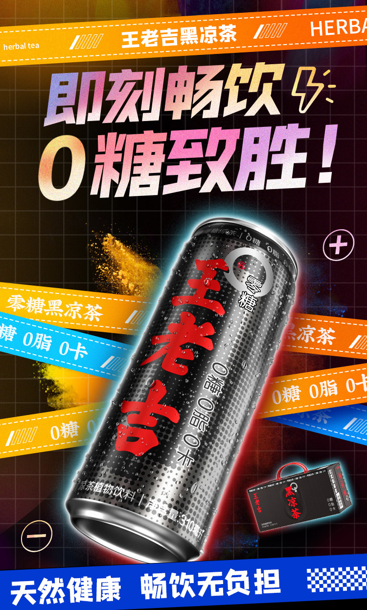 王老吉黑罐无糖凉茶310ml*20罐