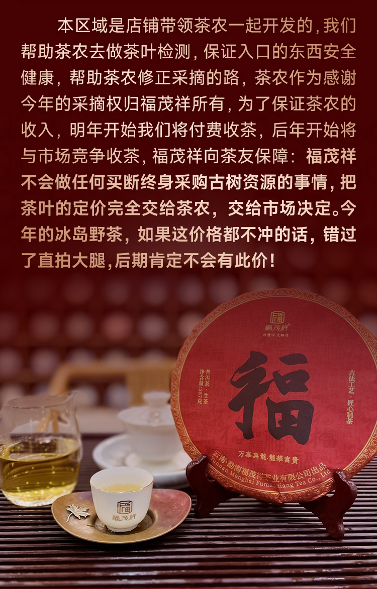 【传承福】以茶为礼 敬献福茂祥茶友 一款福茶开启一整年的福气 福粉必入 2023年春茶临沧茶区冰岛普洱茶生茶野茶茶饼357g