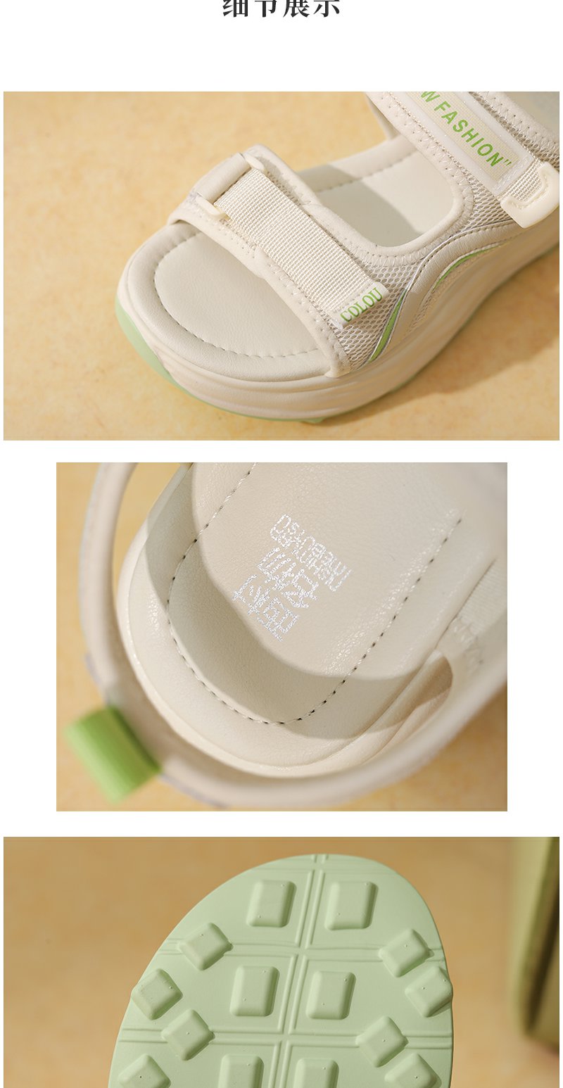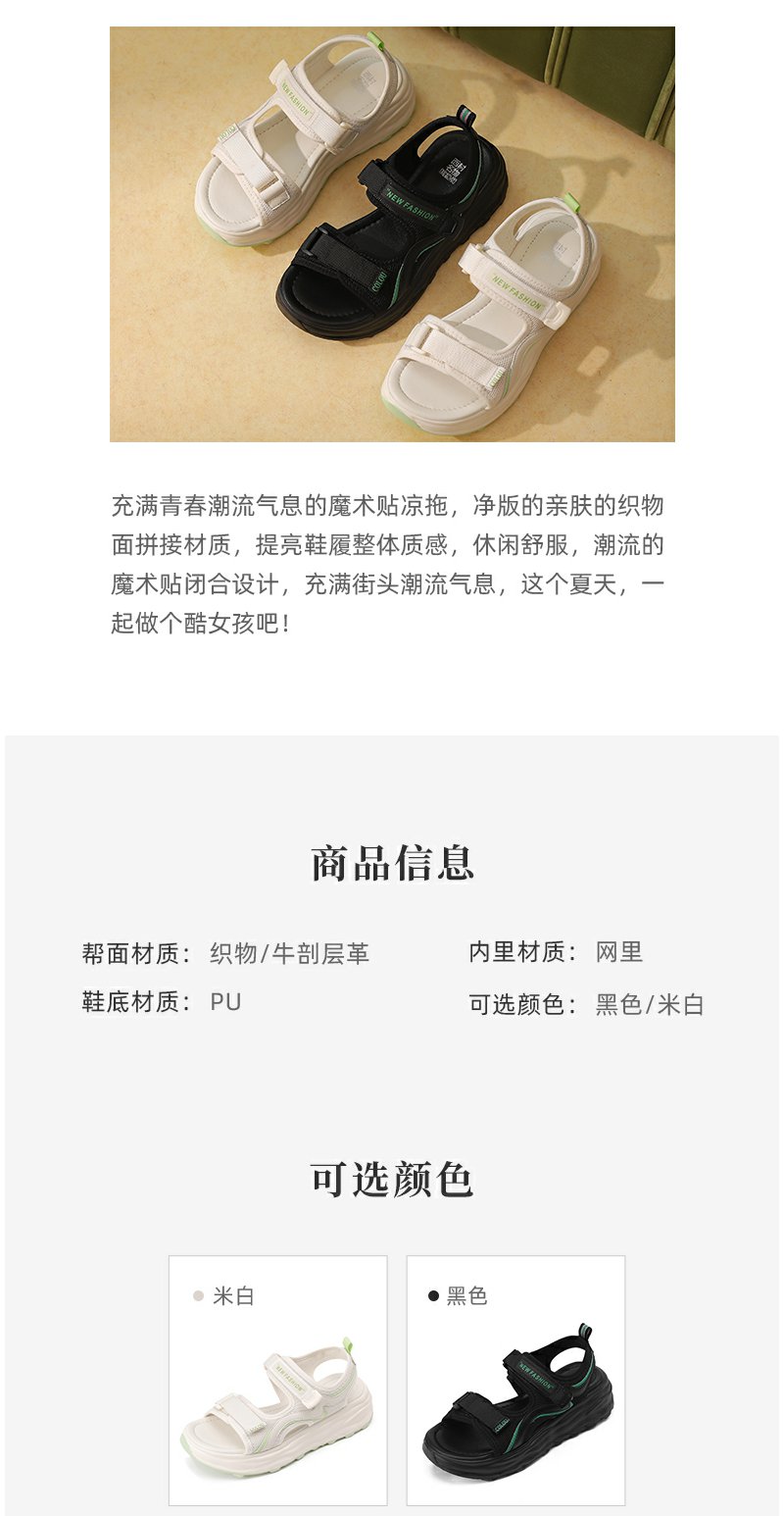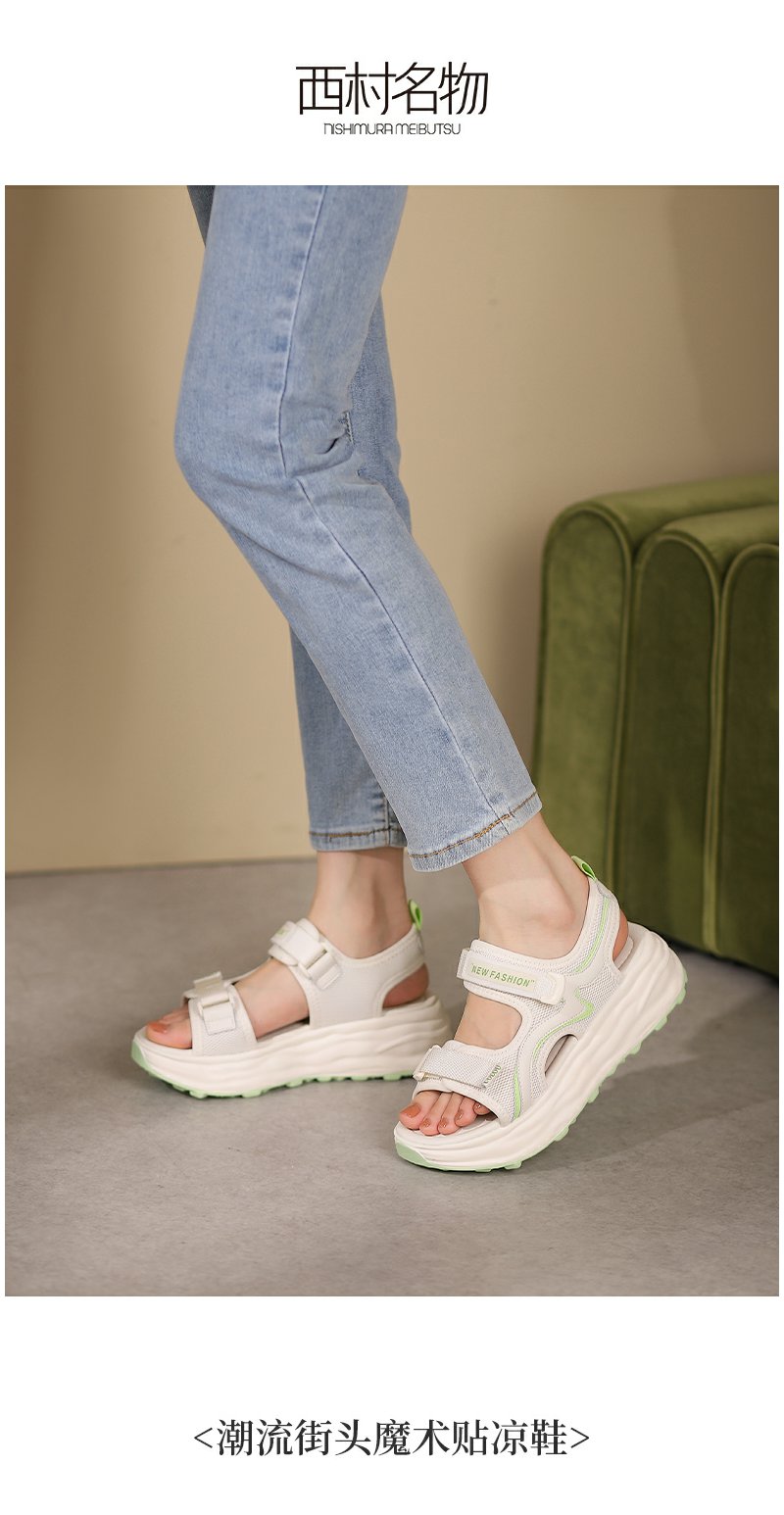 西村名物厚底凉鞋女2022夏季新款百搭仙女风软底运动魔术贴罗马鞋T22BG25101
