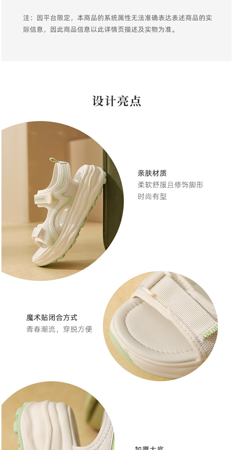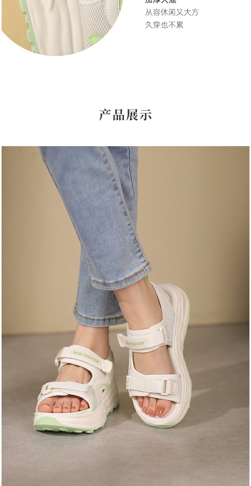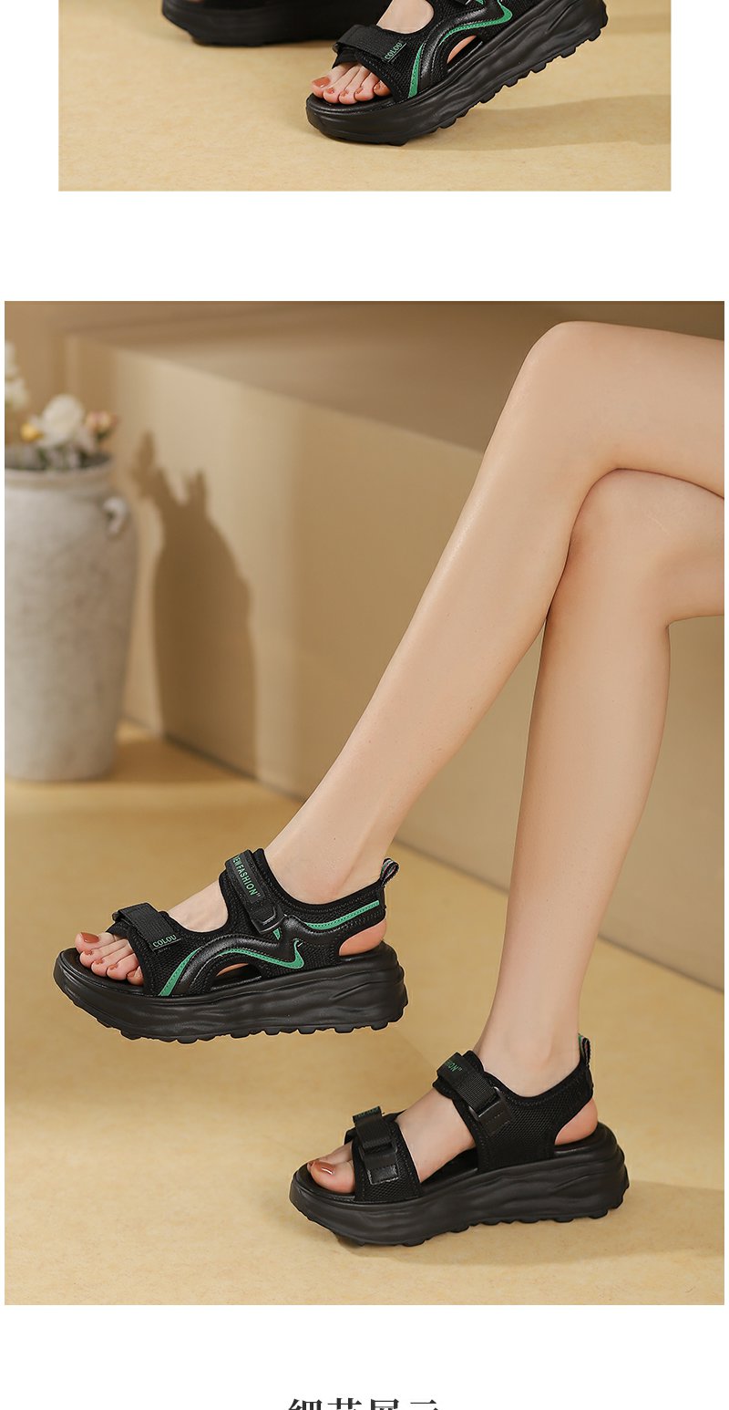 西村名物厚底凉鞋女2022夏季新款百搭仙女风软底运动魔术贴罗马鞋T22BG25101