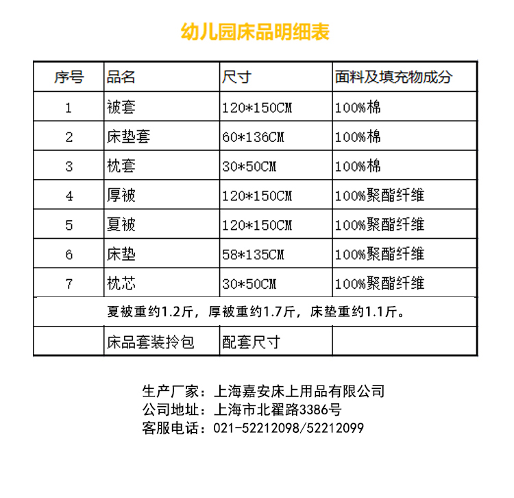闵行区华漕镇中心幼儿园床上用品