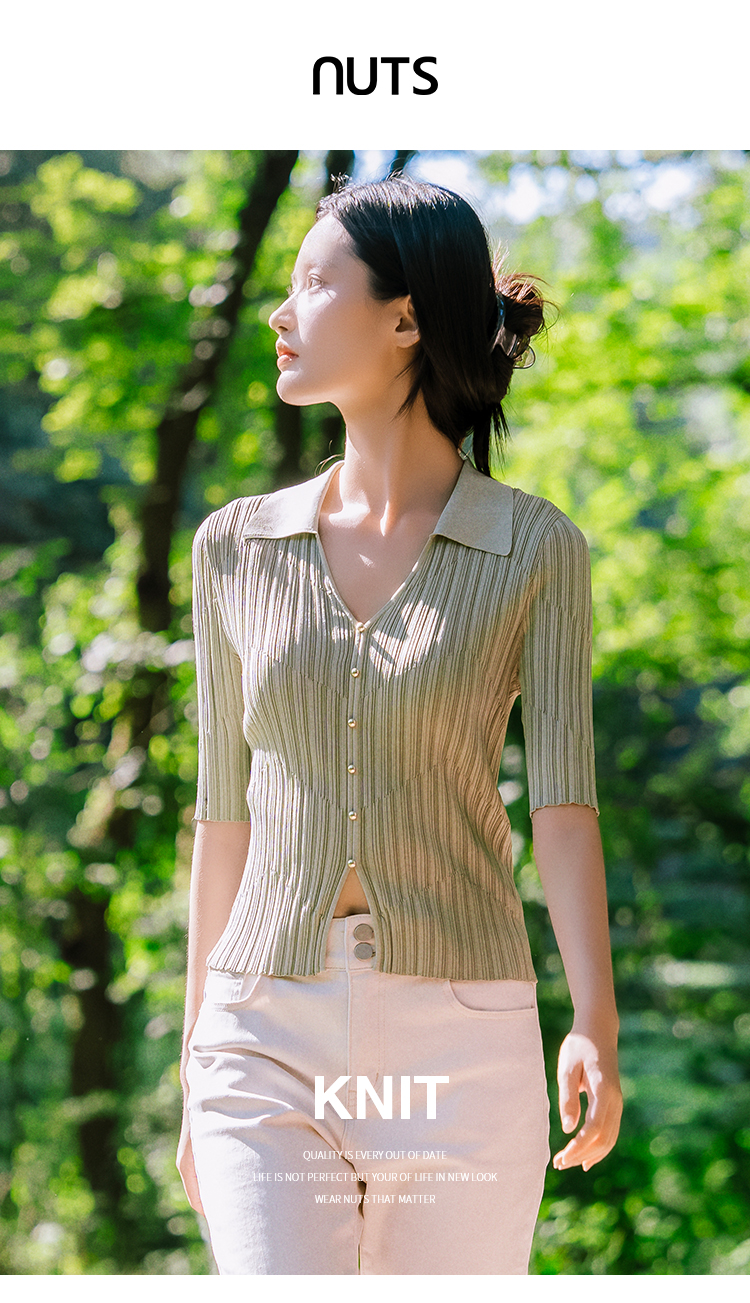 NUTS夏季新款修身显瘦短袖针织衫女时尚百搭上衣4310505A1