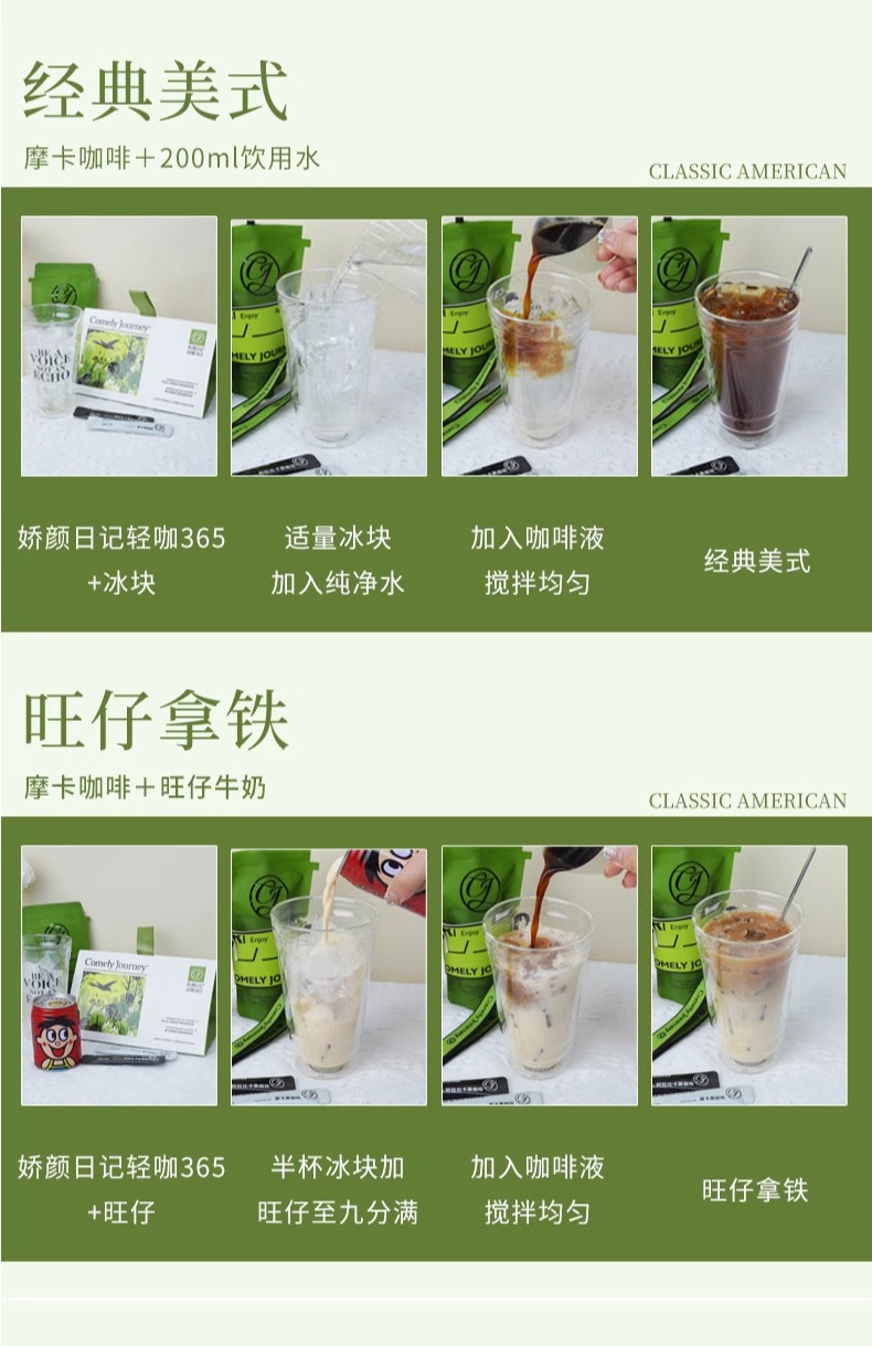 【分仓直发包邮】娇颜日记轻咖365冷萃咖啡3盒(口味可选:摩卡黑咖啡3盒/绿燃黑咖啡3盒)