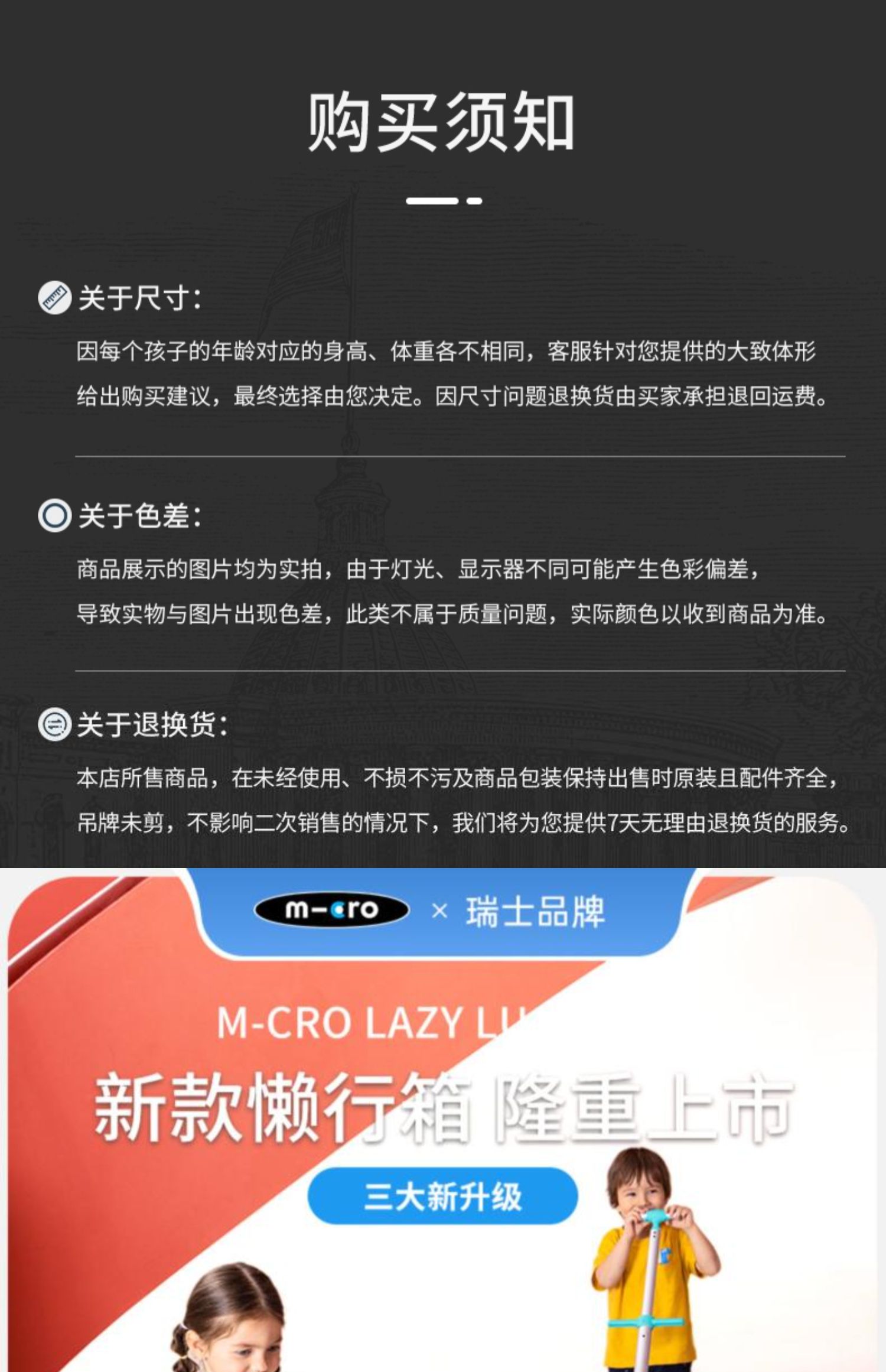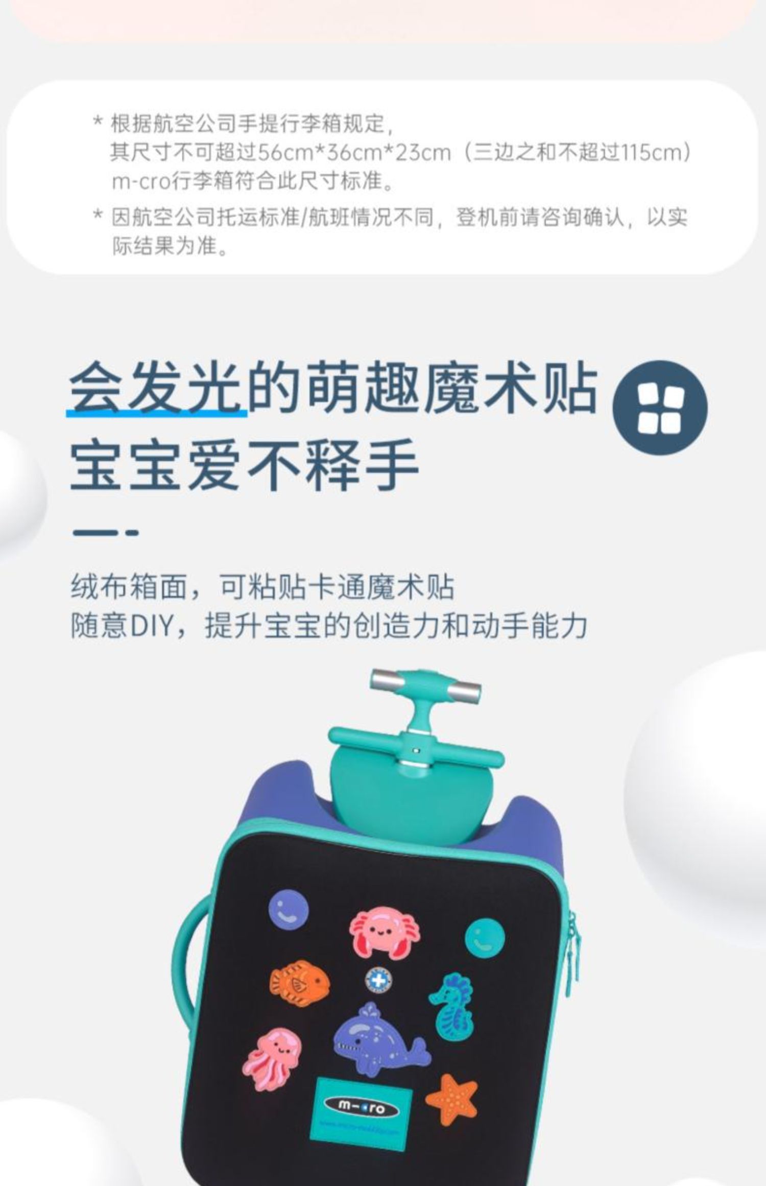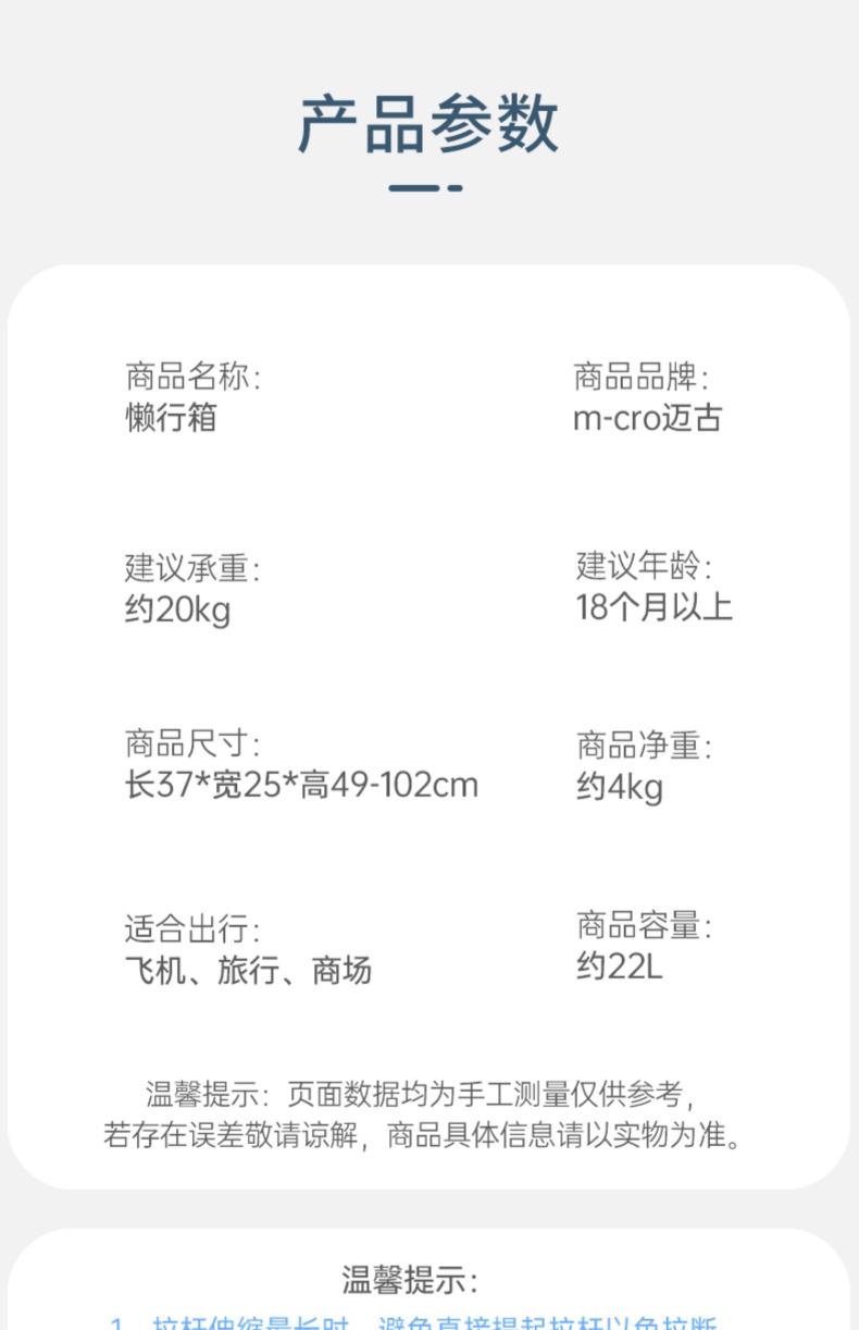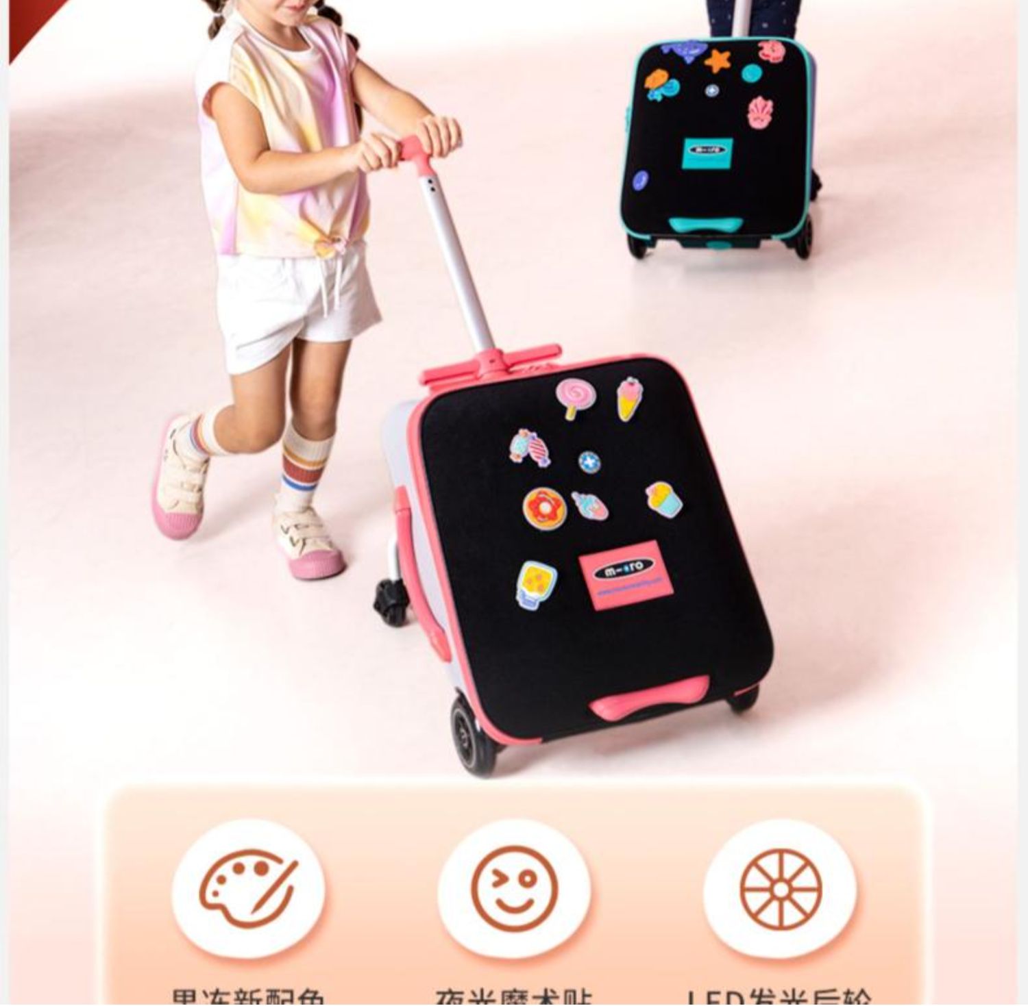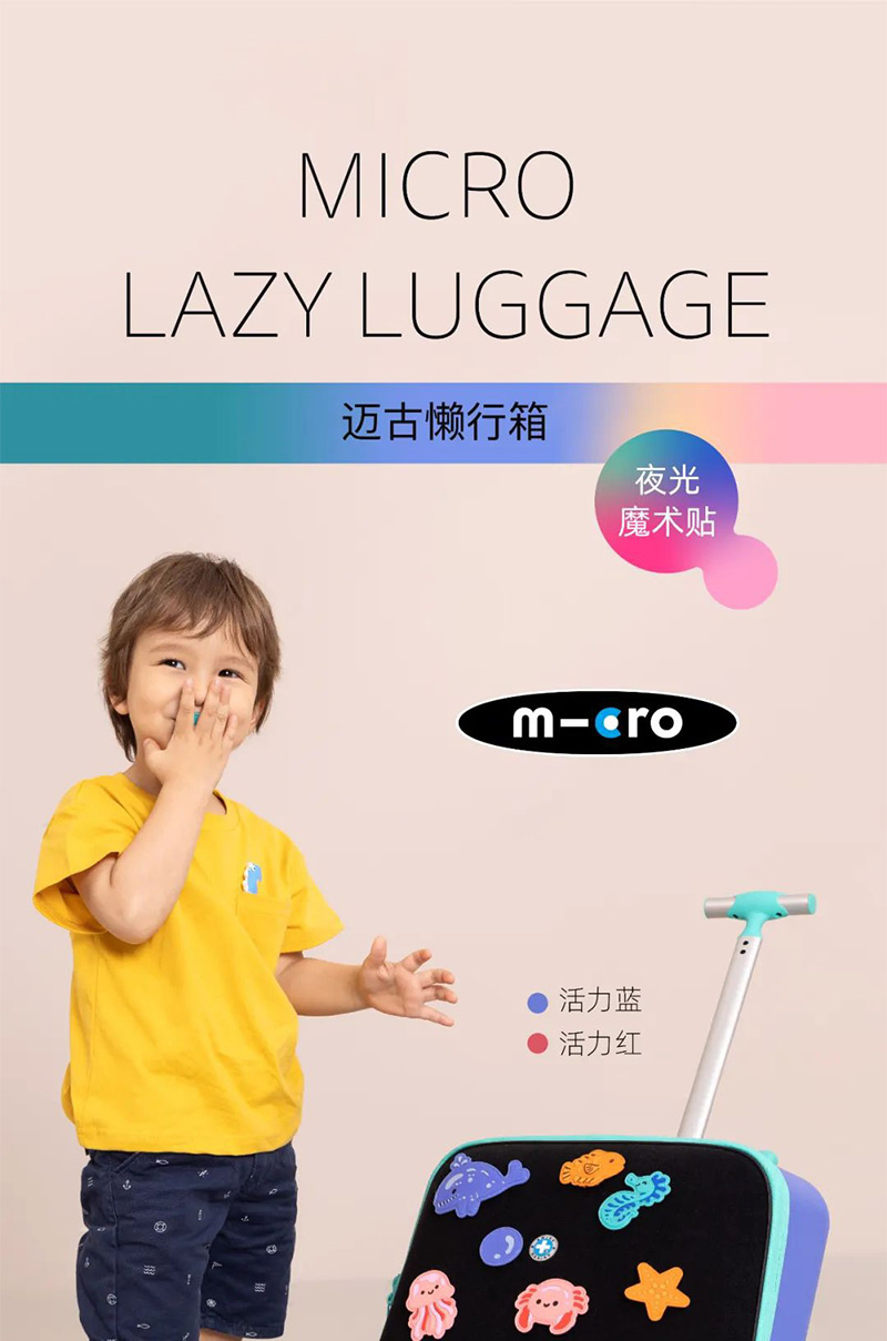 micro迈古儿童行李箱懒人拉杆箱光轮可坐宝宝旅行箱18月+ ML-CN0029/CN0030