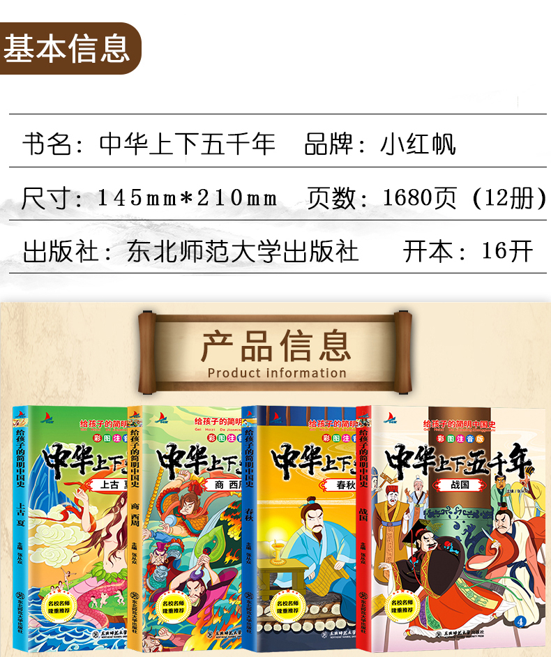 正版全12册注音版中华上下五千年套装正版小学生版写给儿童的史记中国历史5000年人物故事书籍6-7-8-10岁一二三四五六年级课外阅读
