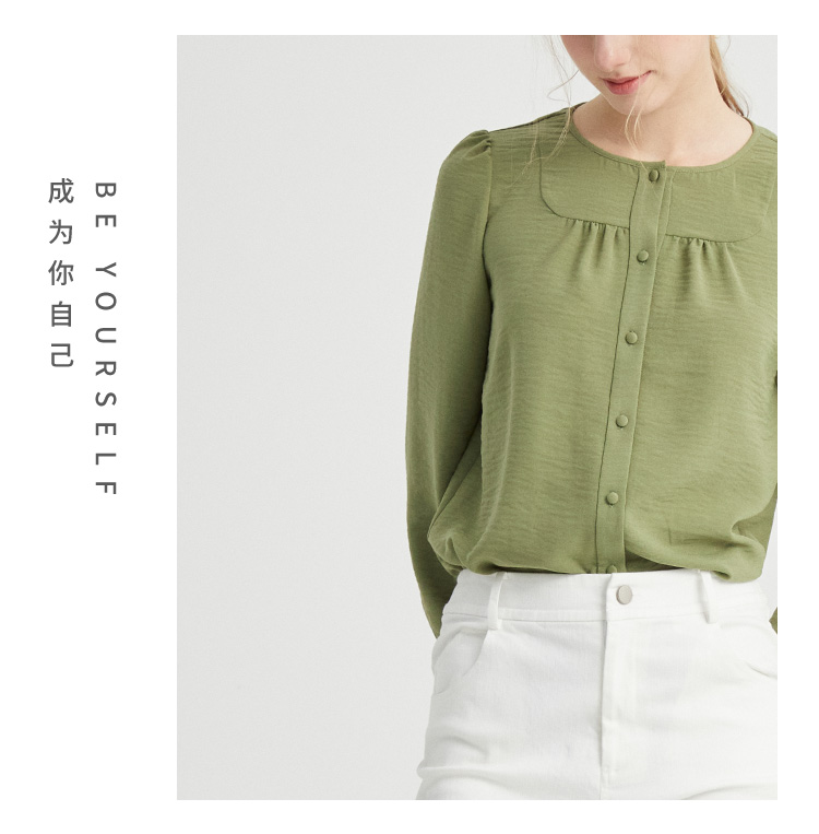 VIVIAN LIU R2457311秋新款圆领宽松侧腰褶皱不规则下摆针织衫