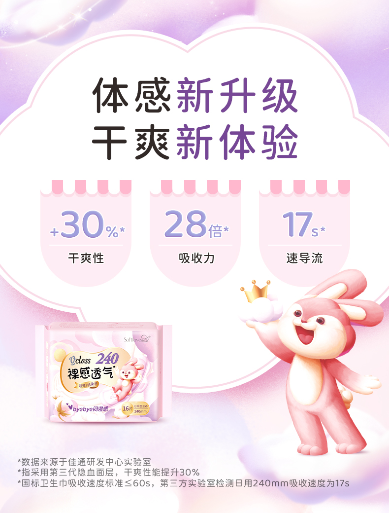 柔爱VCLASS 裸感透气超薄瞬吸舒适透气卫生巾护垫多规格任选★