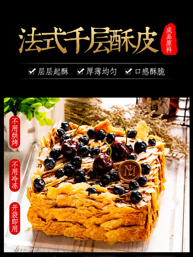 拿破仑酥皮千层酥皮(层层起酥口感酥脆厚薄均匀)无需烘烤开袋即切即用