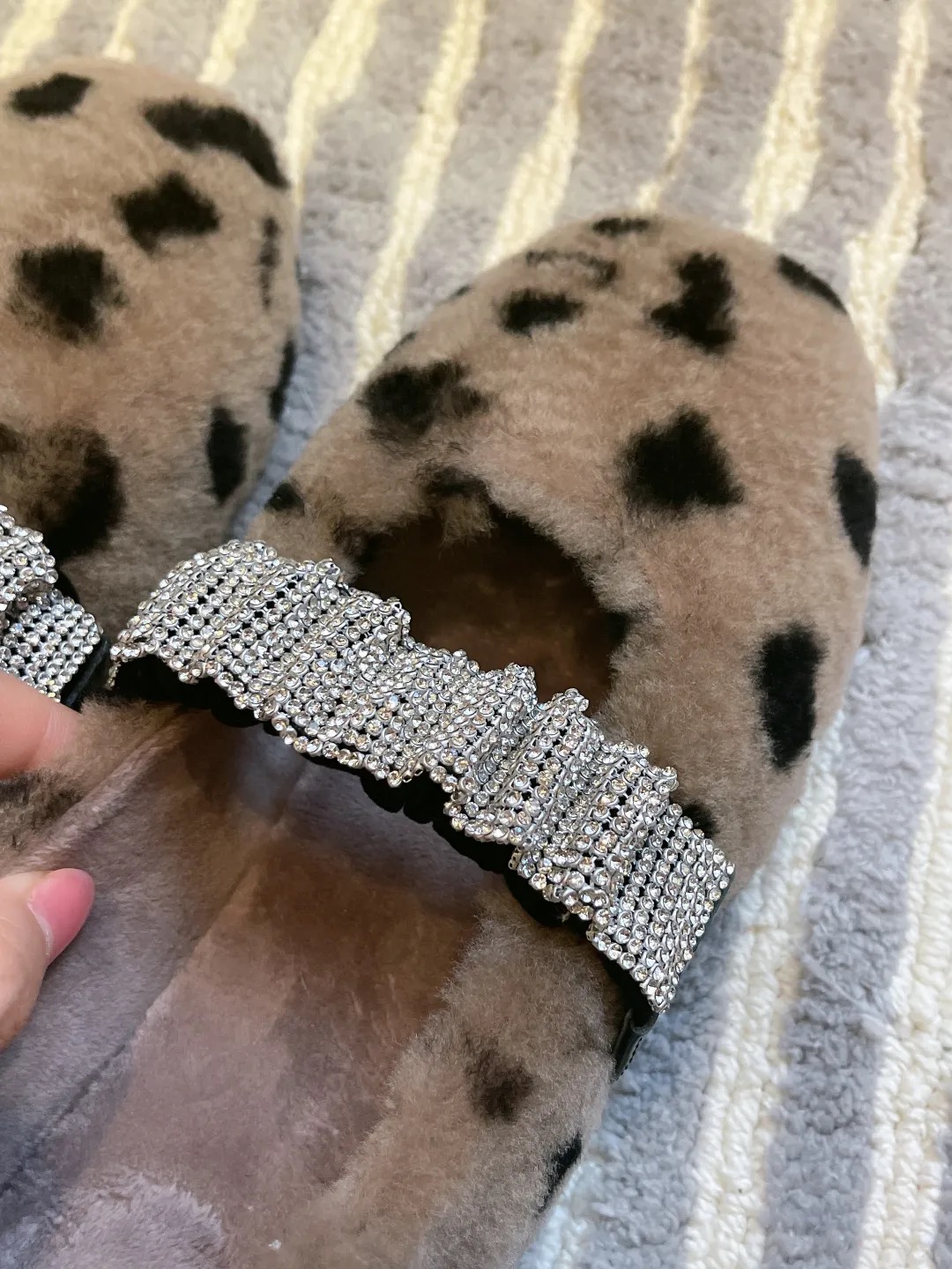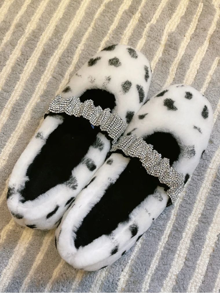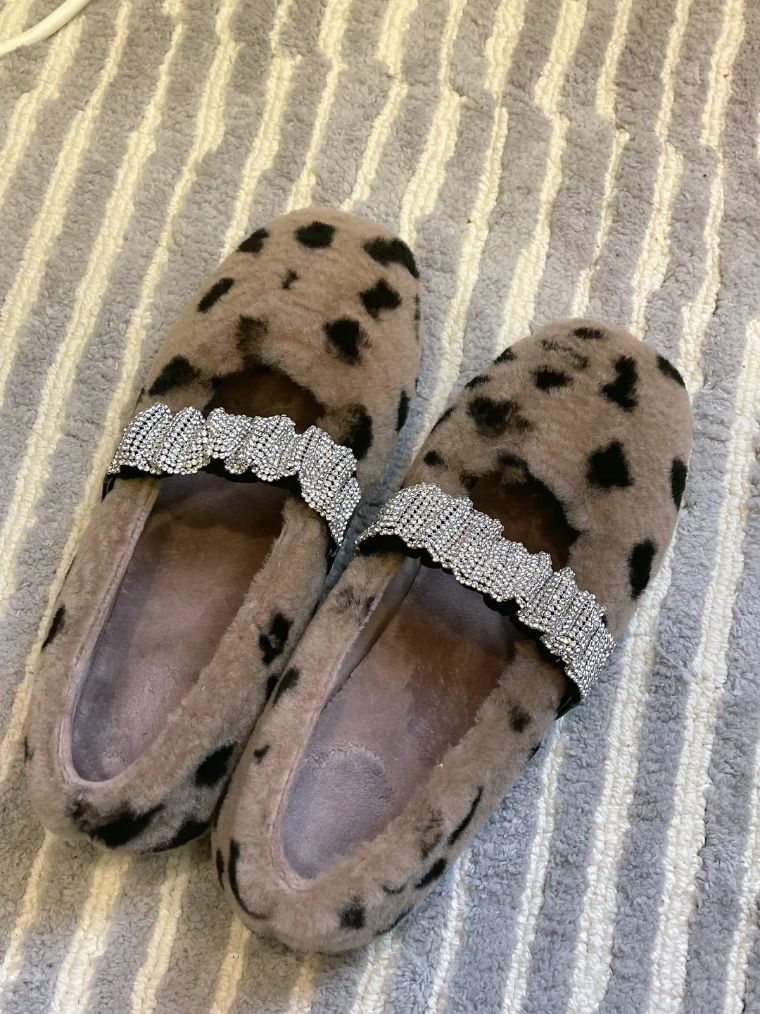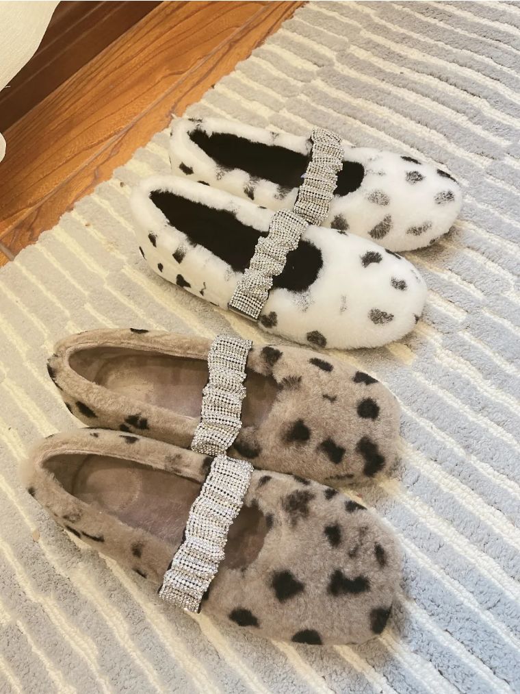 玛丽珍+水钻羊羔毛鞋丨blingbling水钻松紧带穿脱方便 一体式羊羔毛设计 保暖又实用 可爱软萌的设计师定制款 羊羔毛平底鞋 适合这个寒冷的秋冬