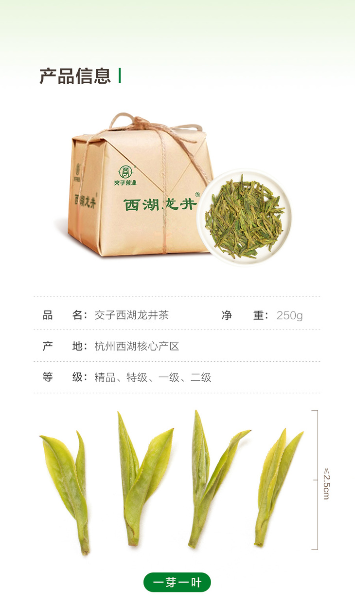 交子西湖龙井茶【250G*1 一级】纸袋装