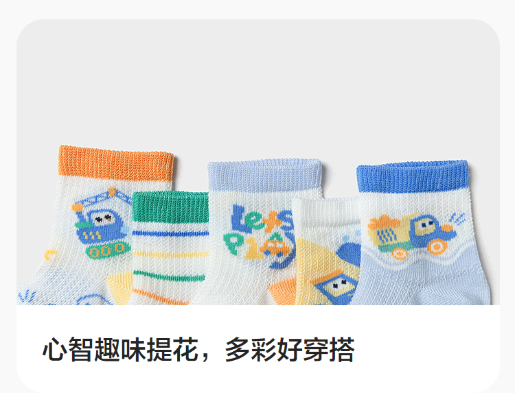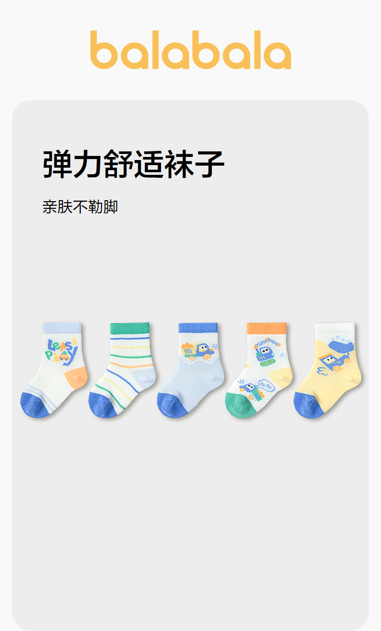 巴拉巴拉宝宝袜子夏季新款网眼透气儿童短袜男女童萌趣可爱五双装
