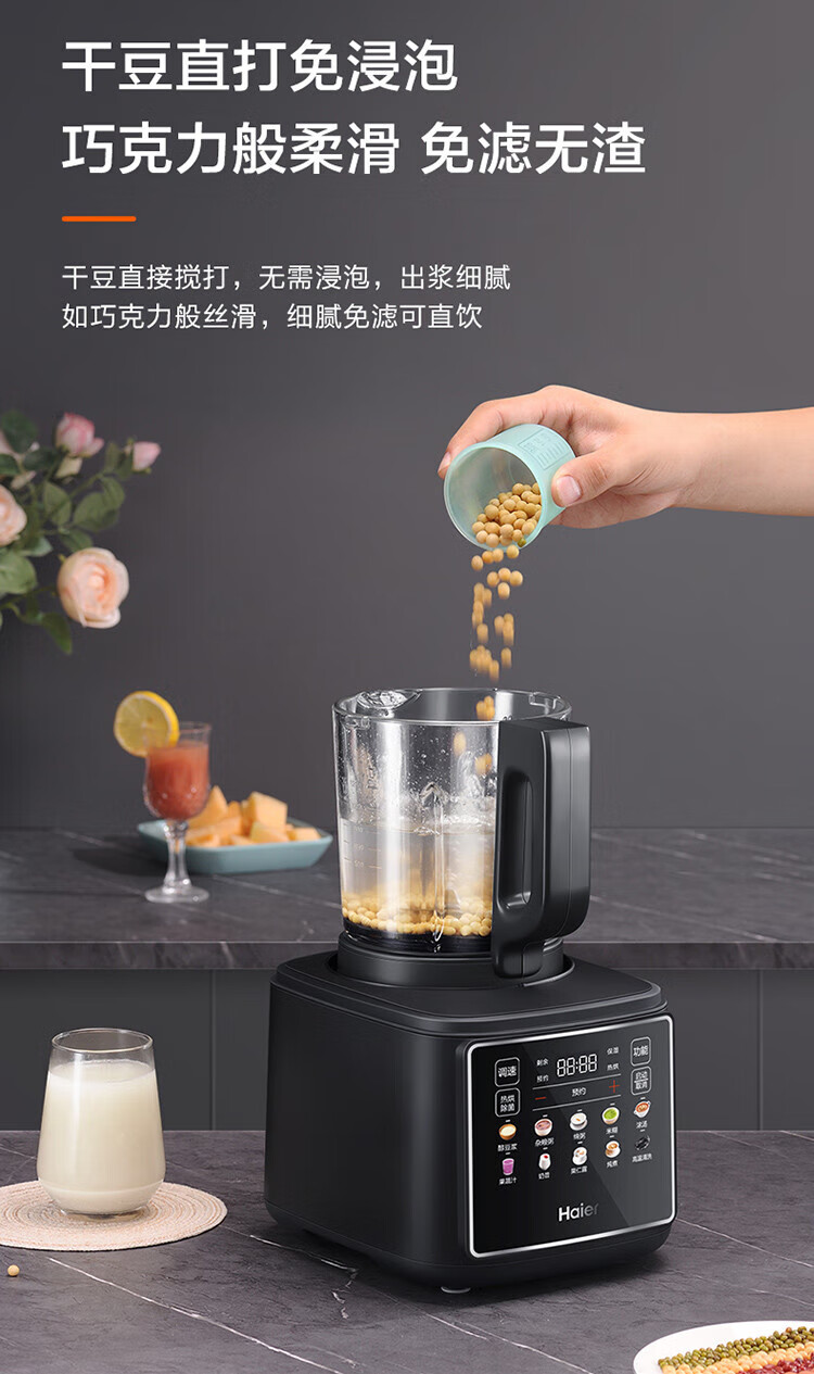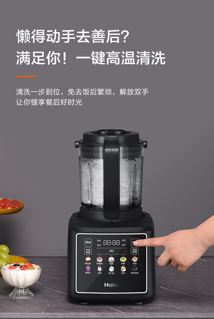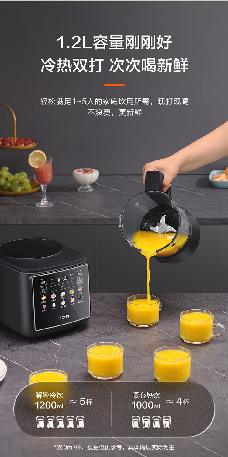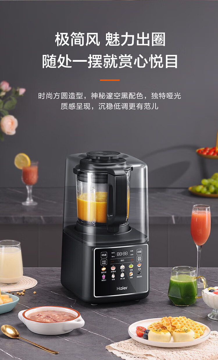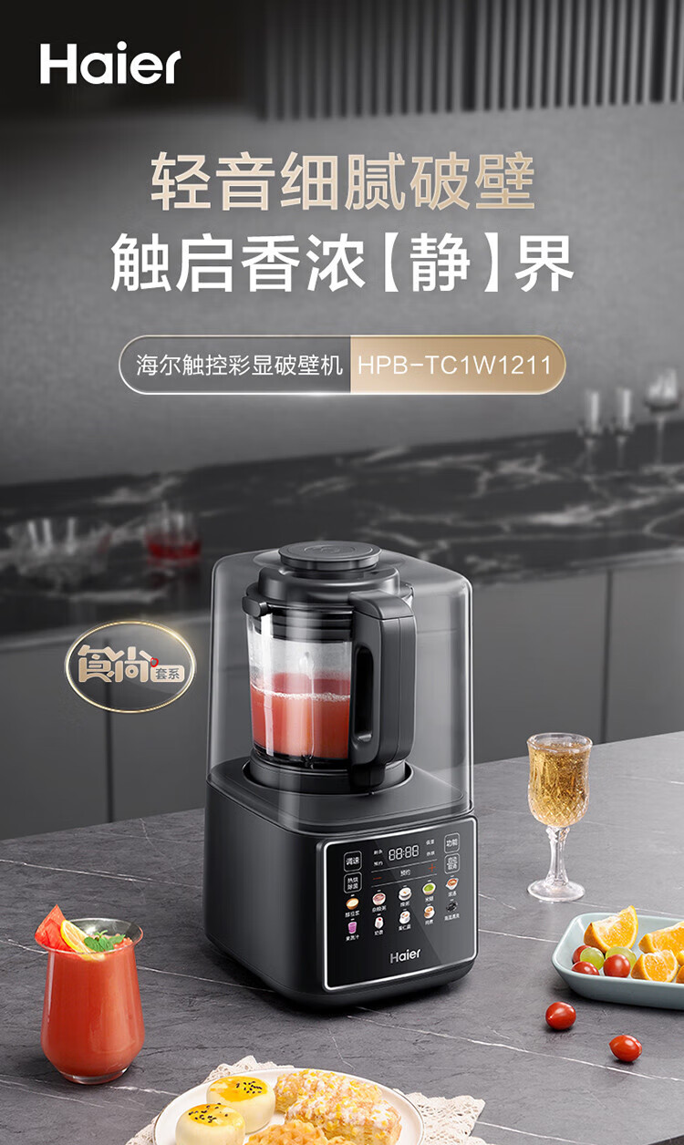 海尔破壁机 超大彩屏多功能破壁机 双层6叶精钢刀头 黑色 HPB-TC1W1211【八重降噪 1.2L]