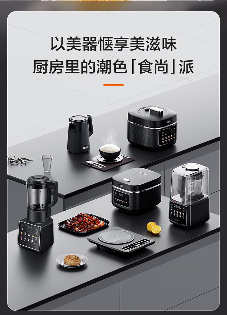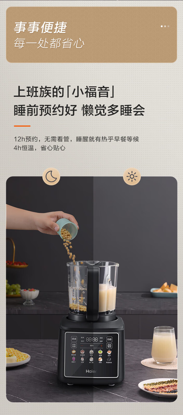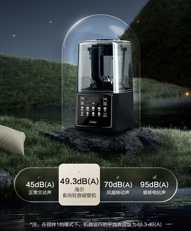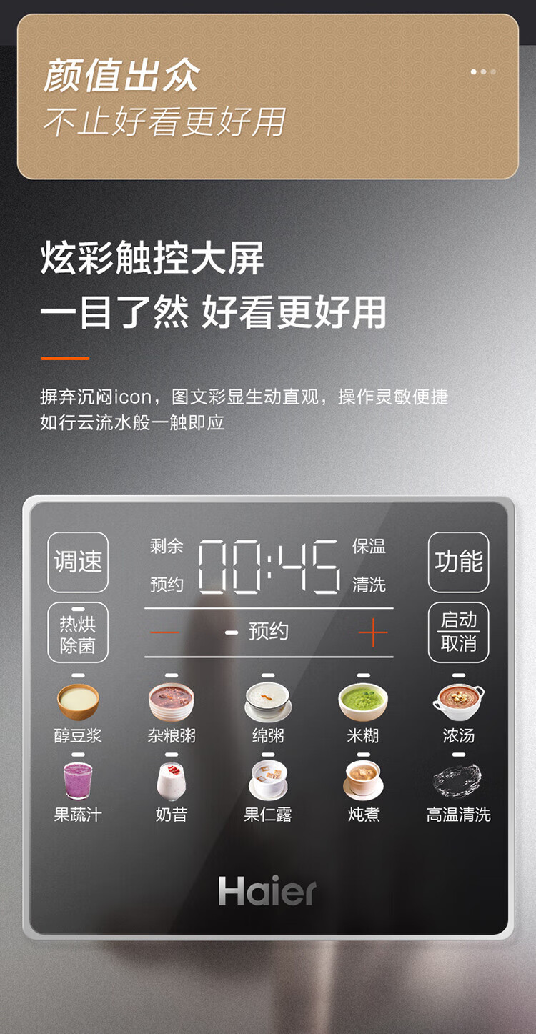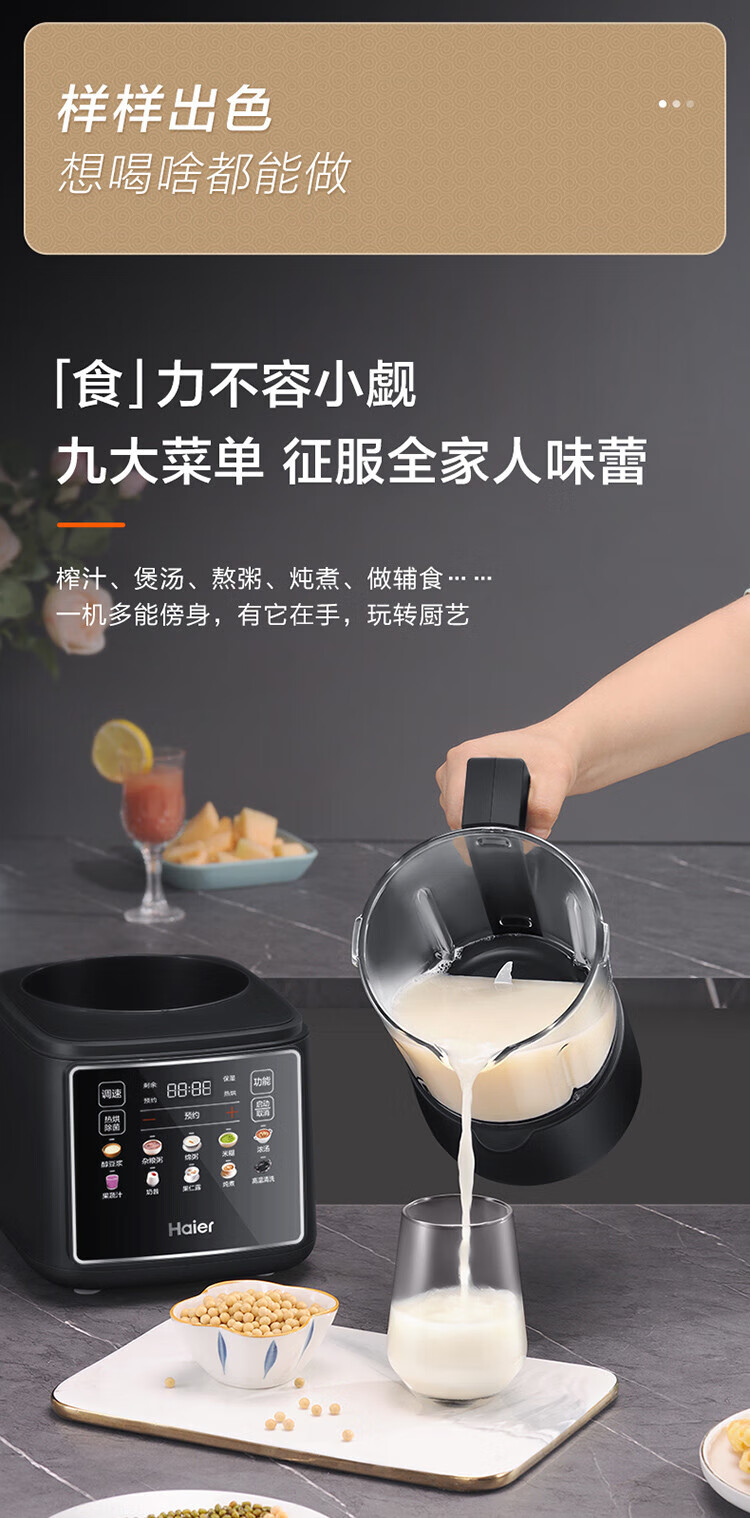 海尔破壁机 超大彩屏多功能破壁机 双层6叶精钢刀头 黑色 HPB-TC1W1211【八重降噪 1.2L]