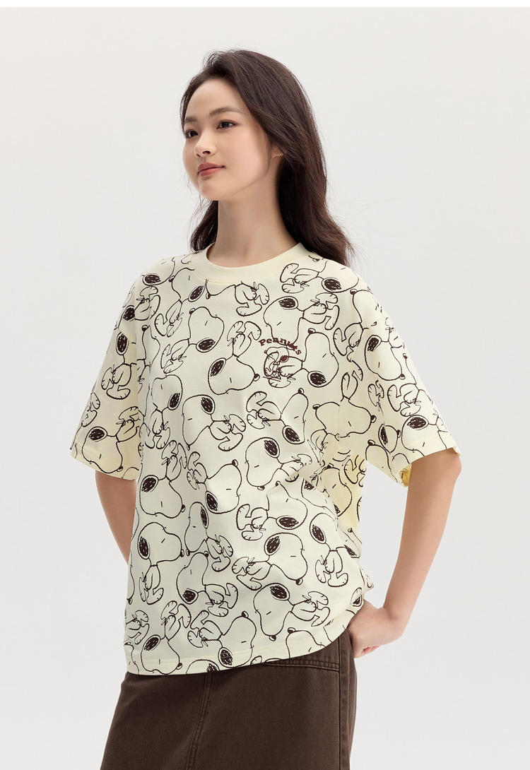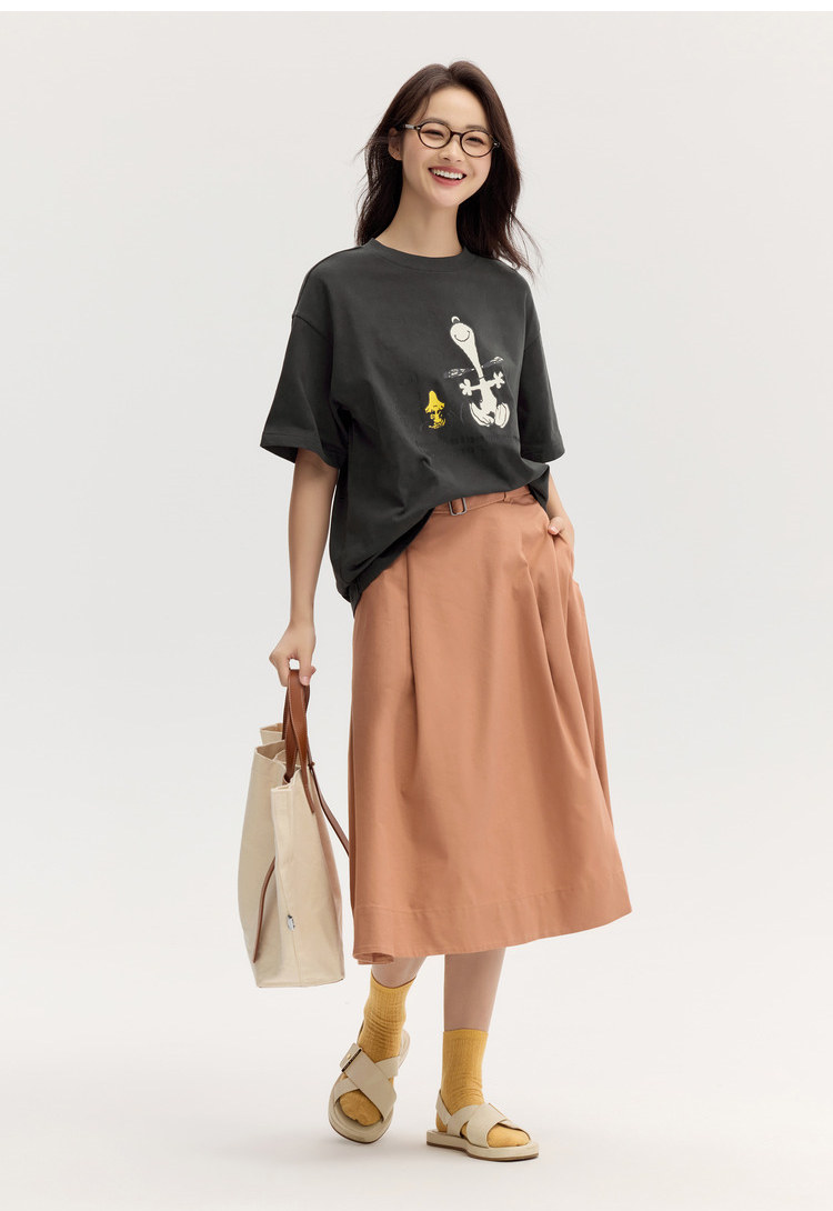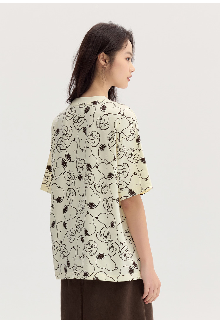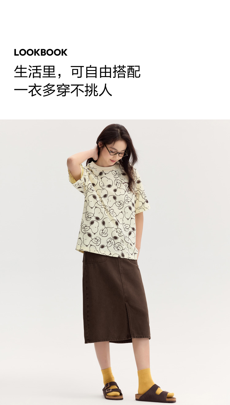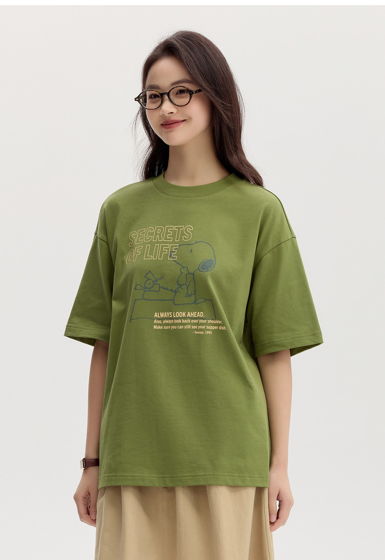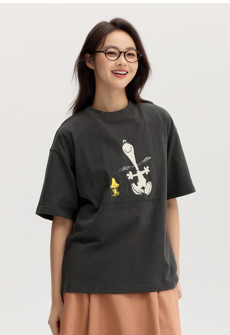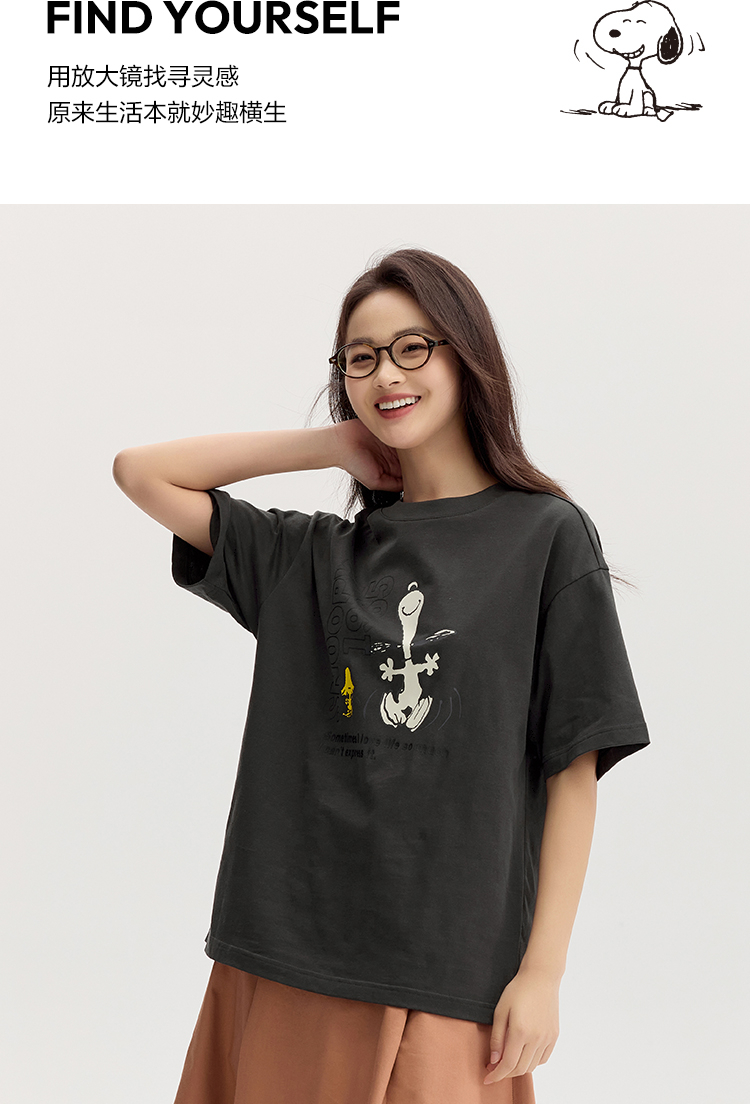【99元任选2件】森马史努比系列短袖T恤女中长款印花新款纯棉秋装