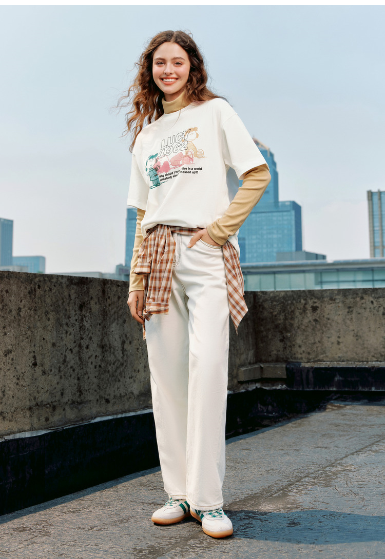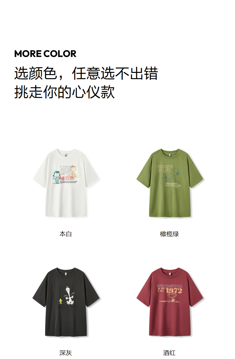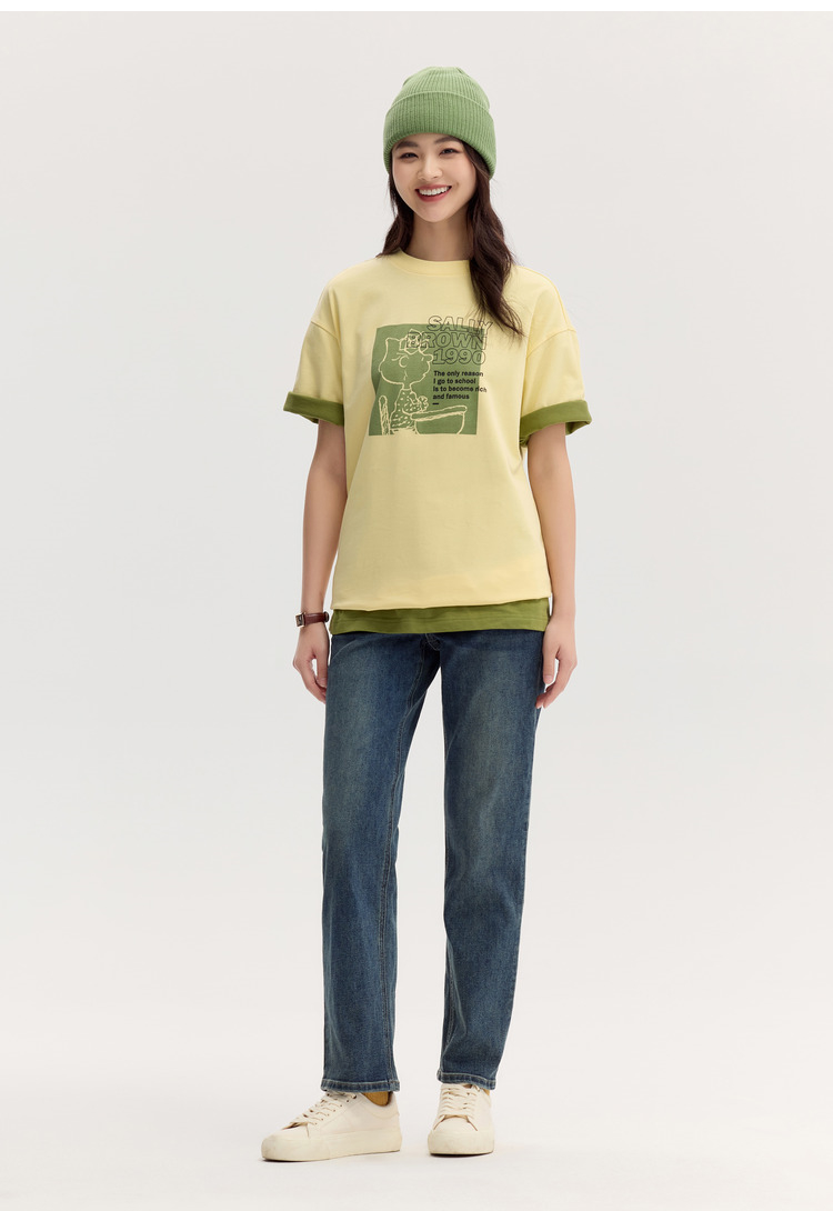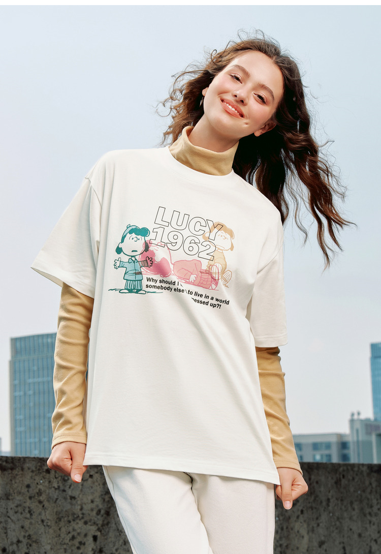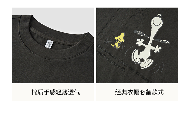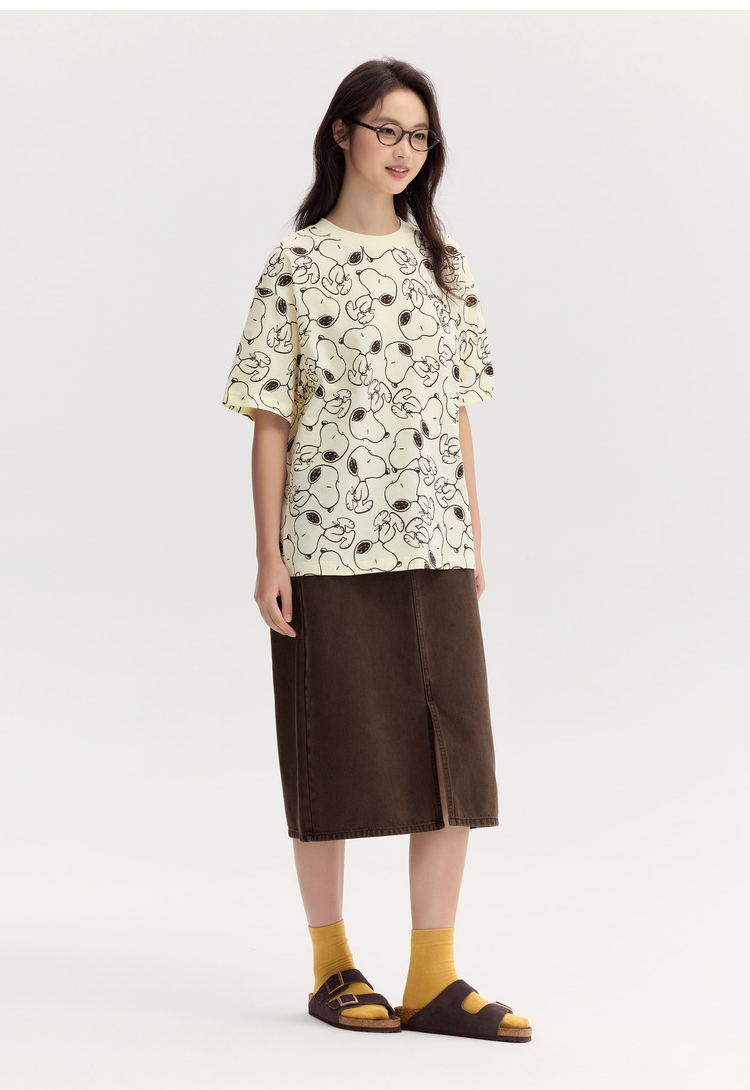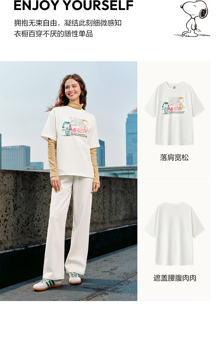 【99元任选2件】森马史努比系列短袖T恤女中长款印花新款纯棉秋装