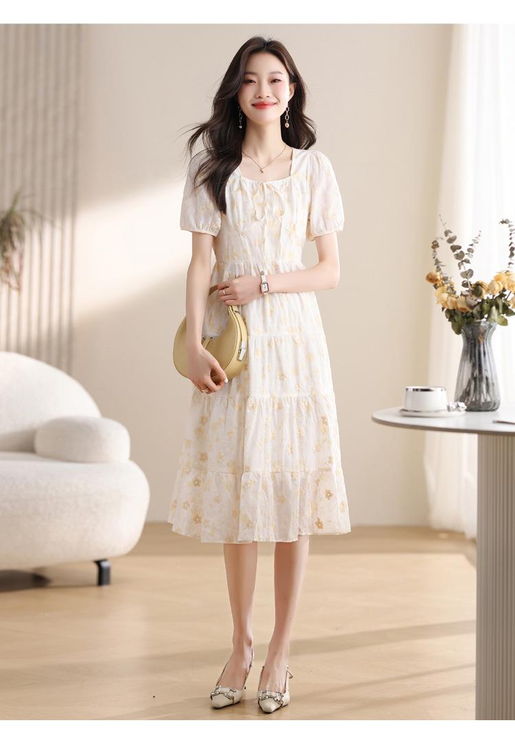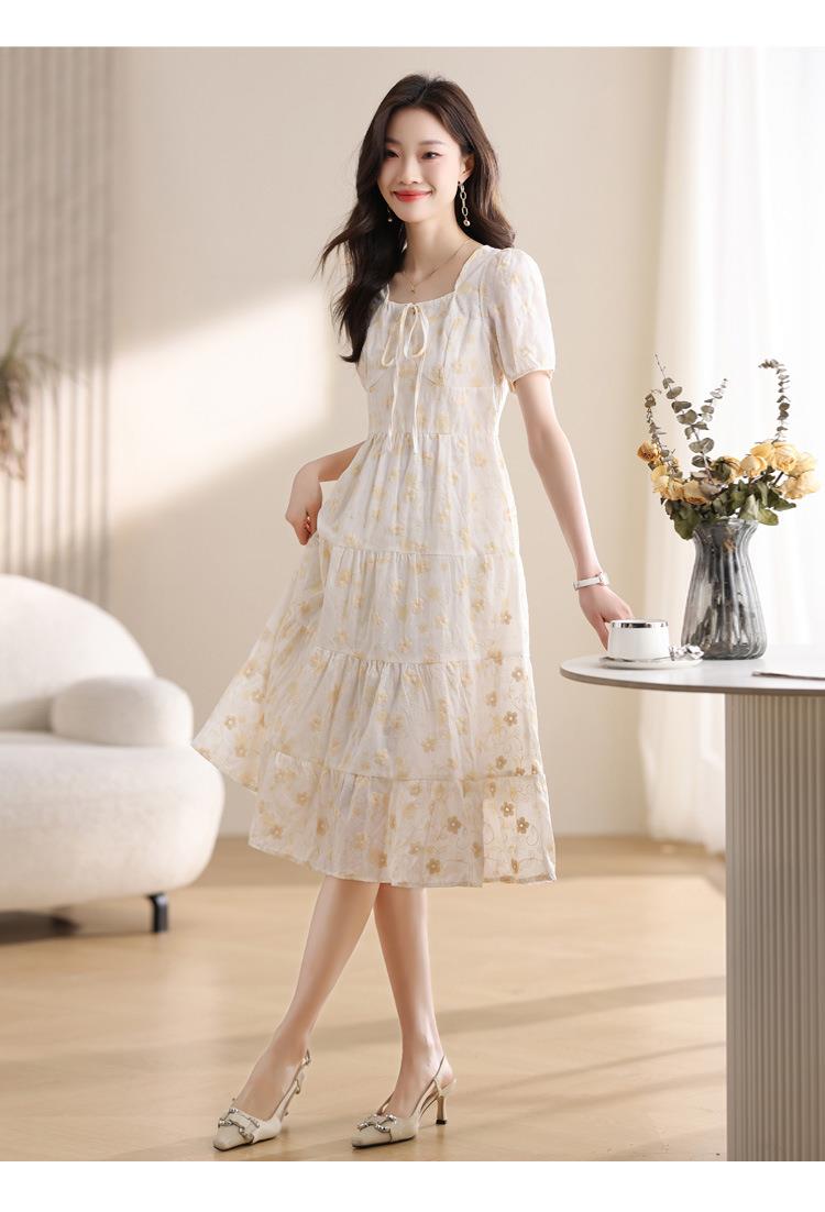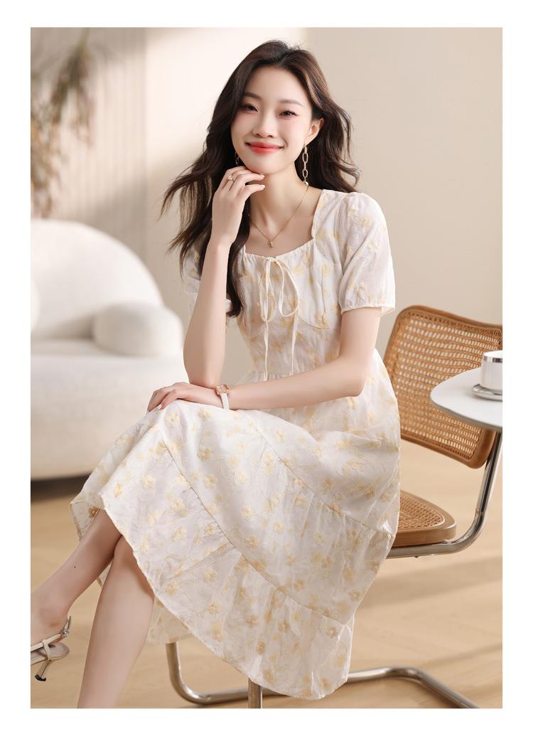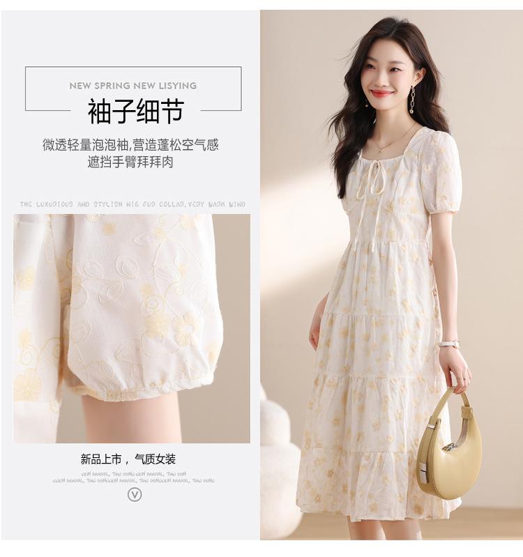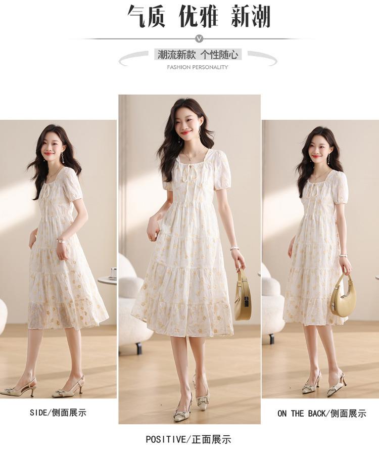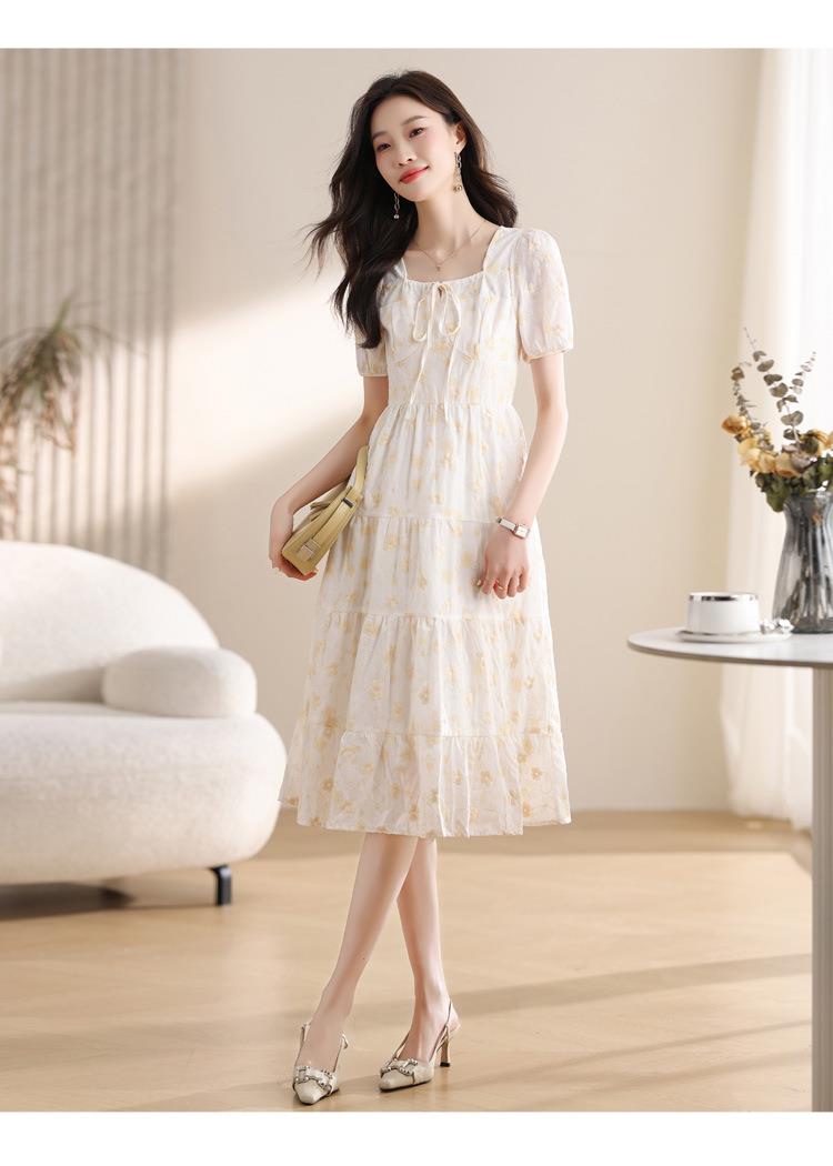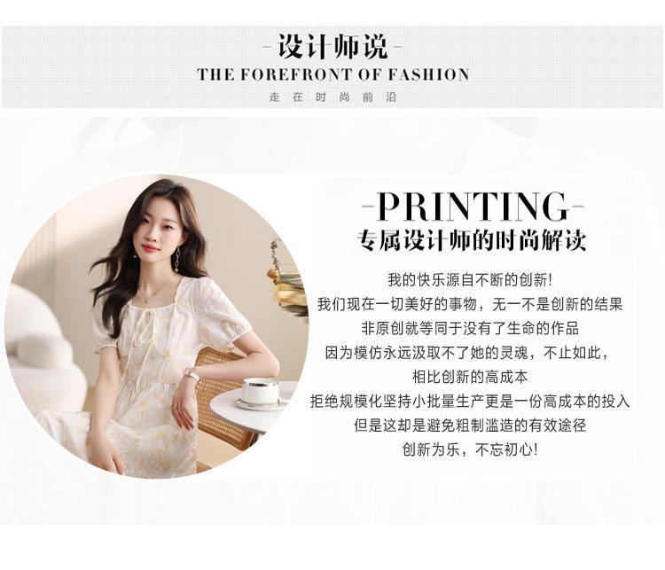 茶歇法式白色碎花连衣裙子女2024夏季新款质感高级感收腰中长裙子