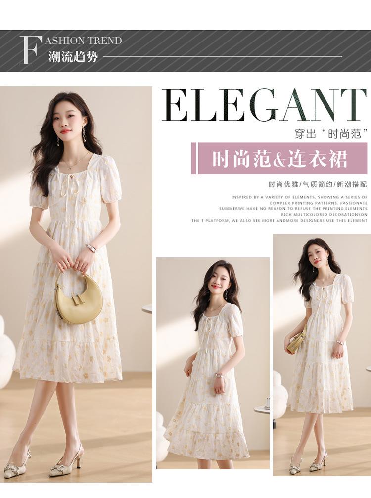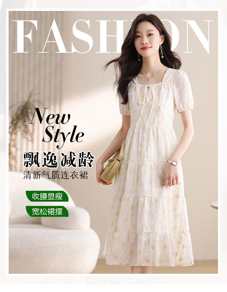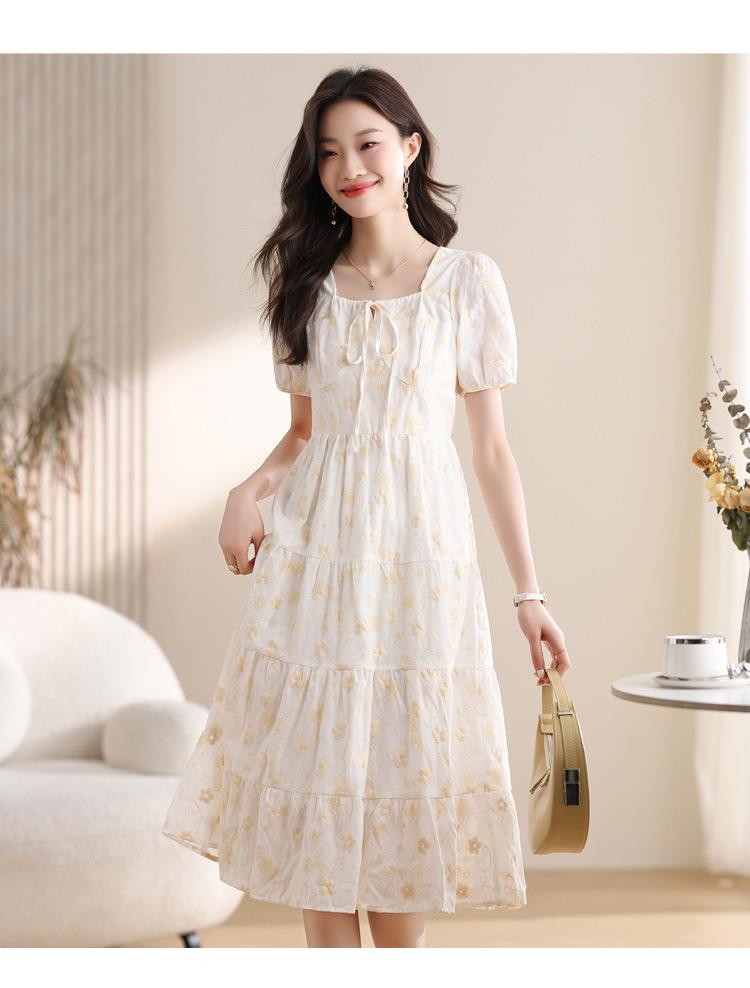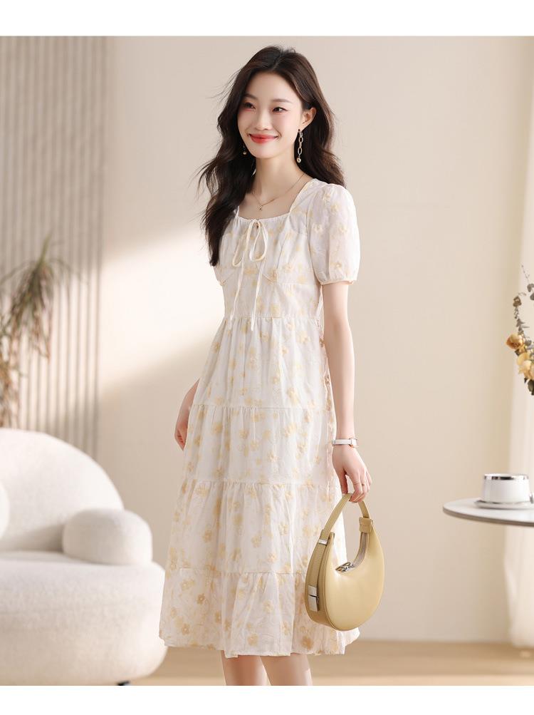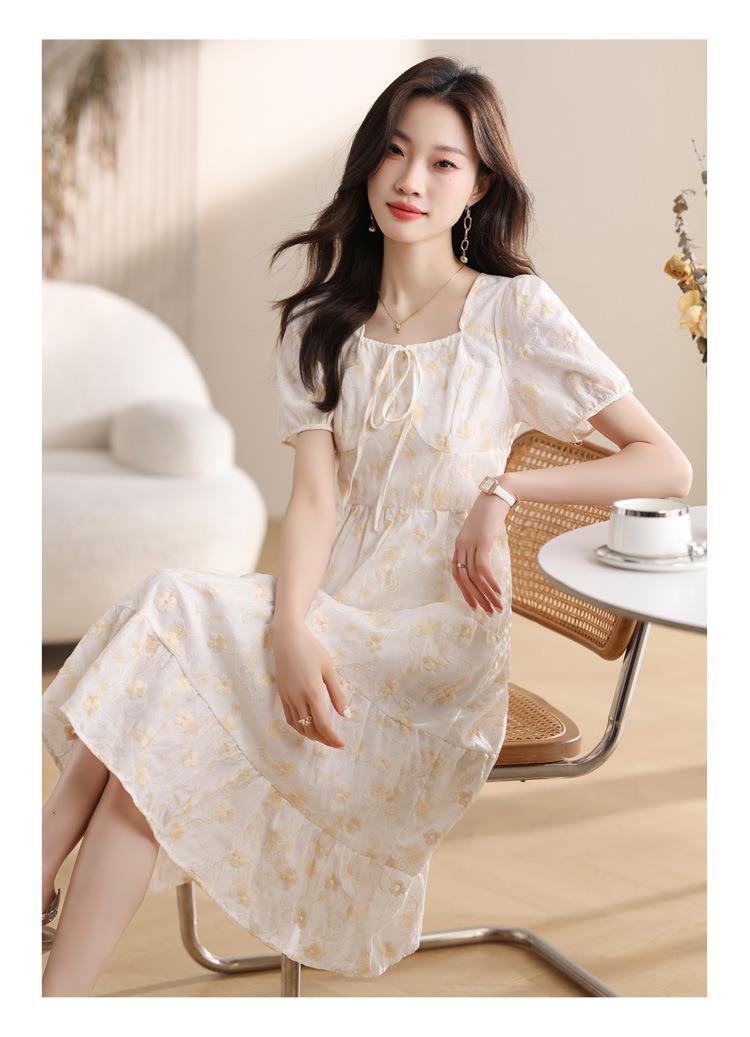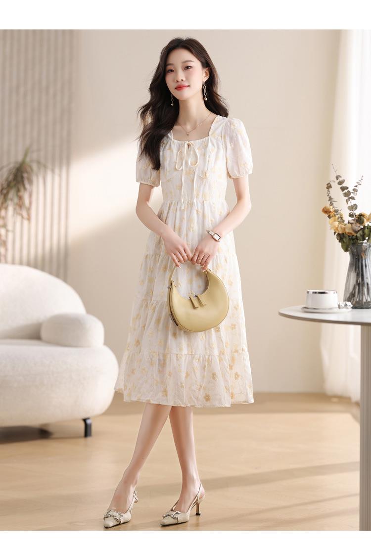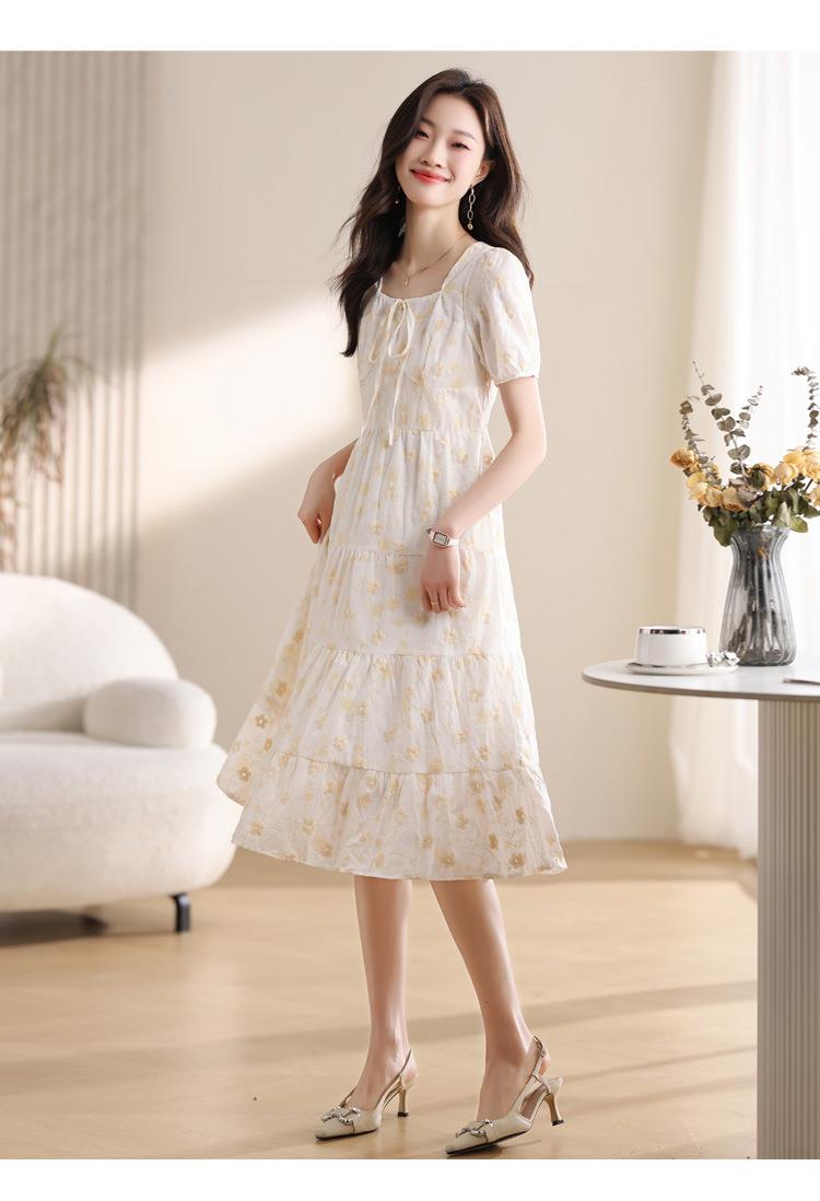 茶歇法式白色碎花连衣裙子女2024夏季新款质感高级感收腰中长裙子