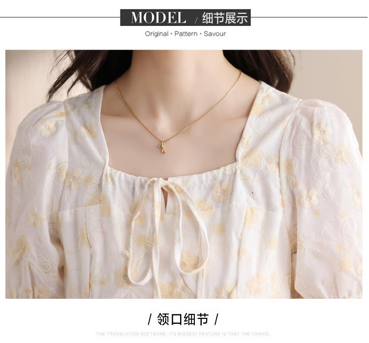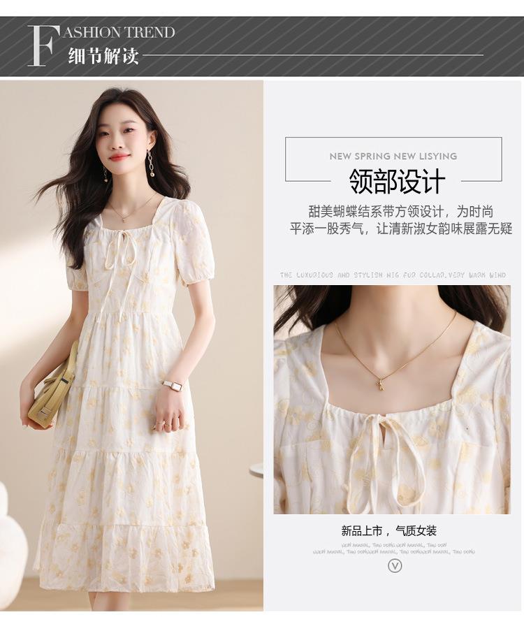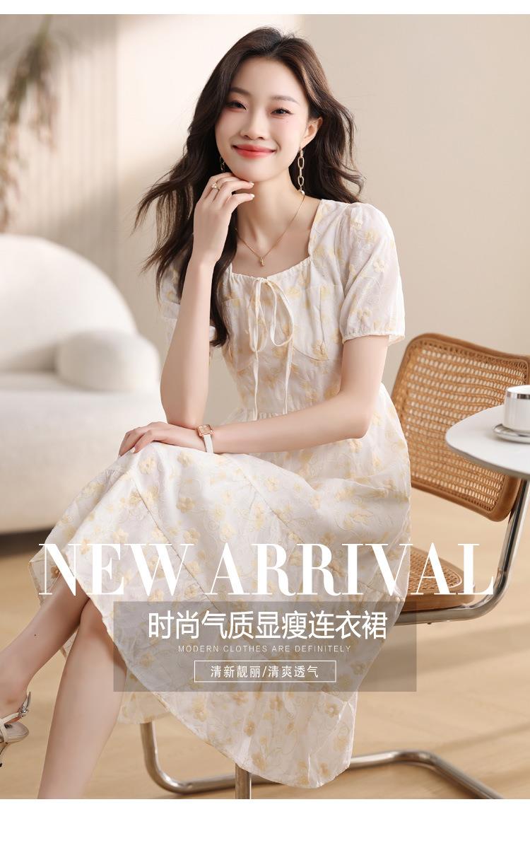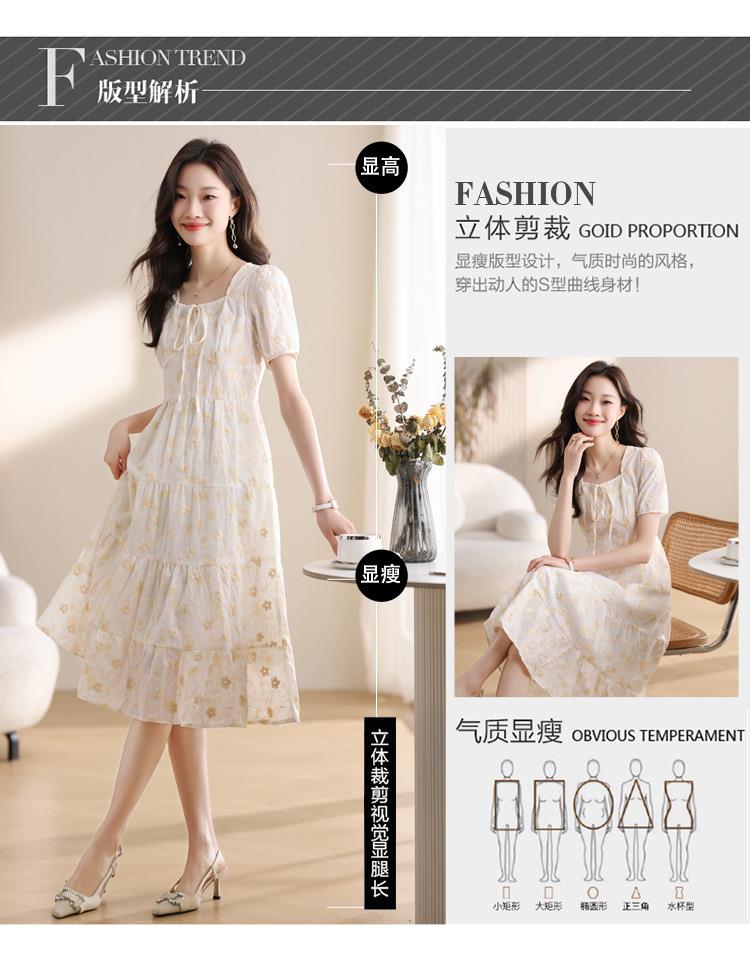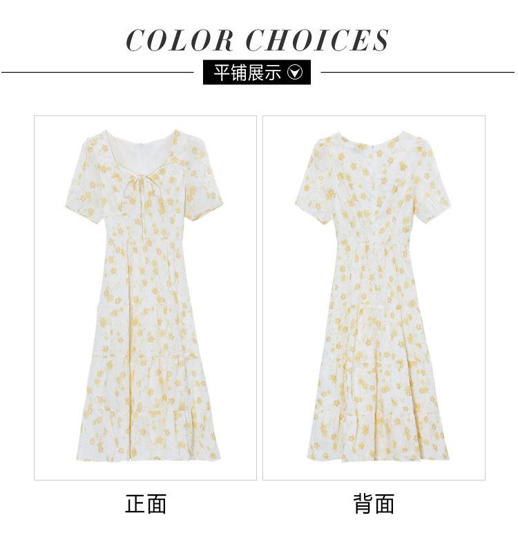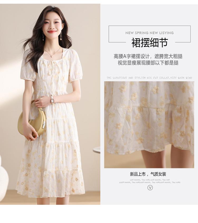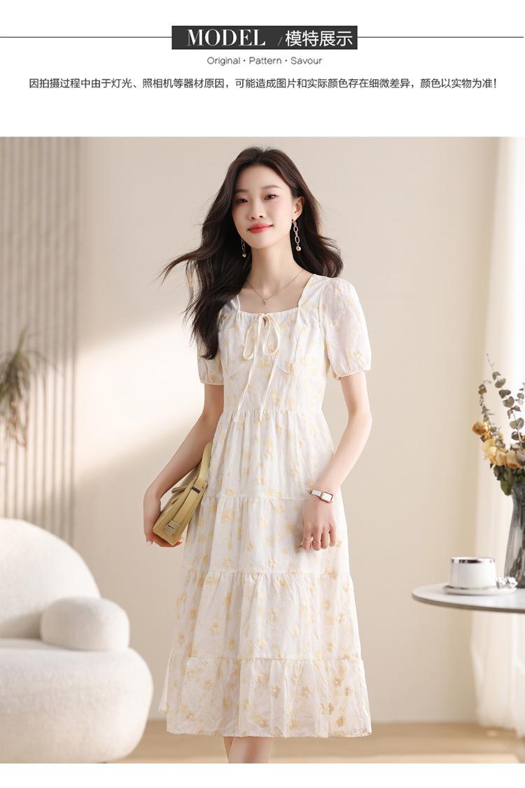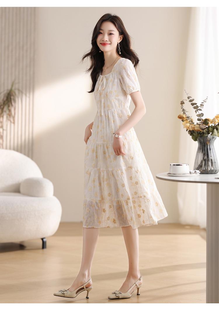 茶歇法式白色碎花连衣裙子女2024夏季新款质感高级感收腰中长裙子