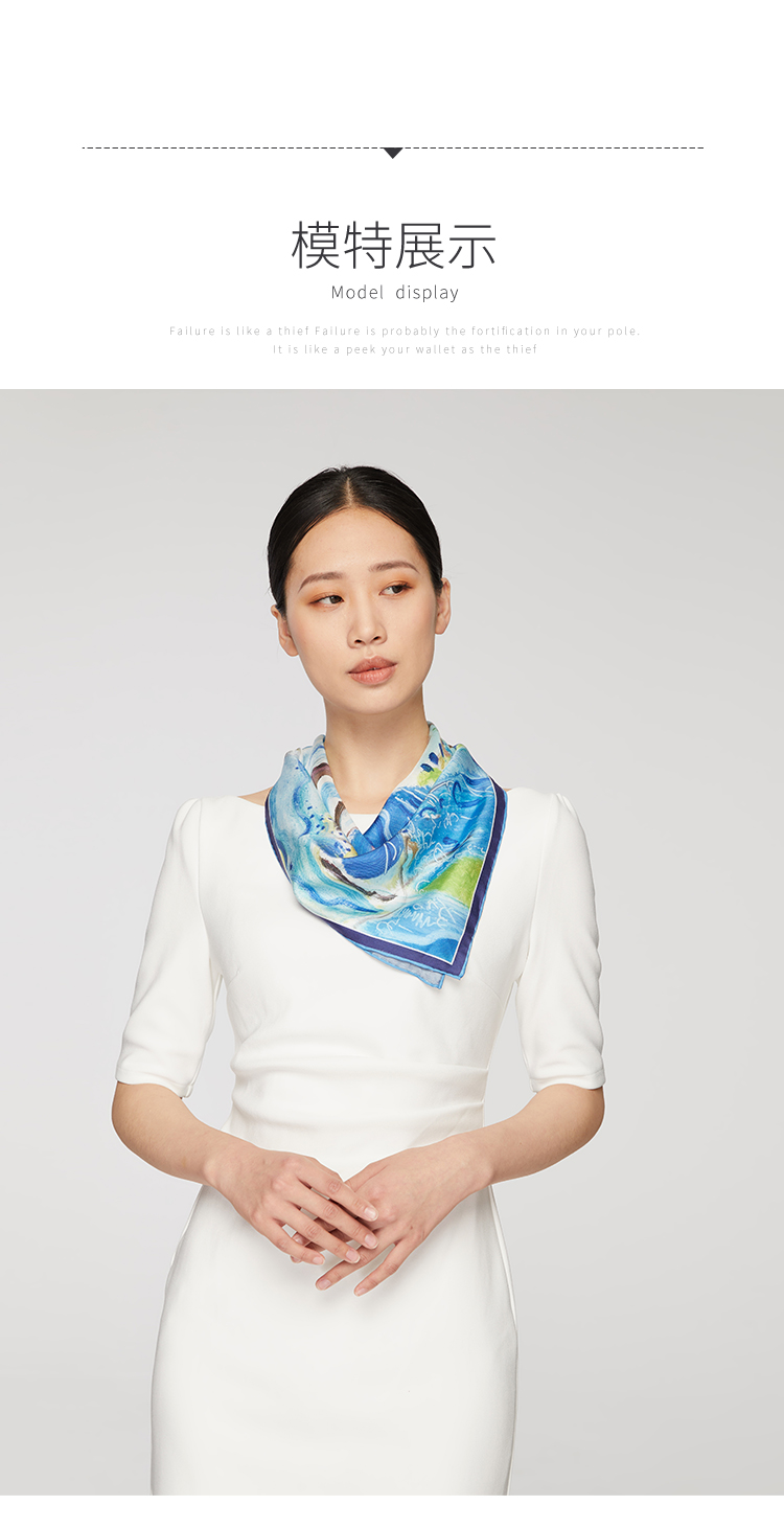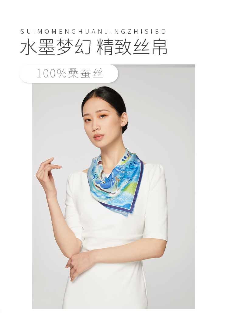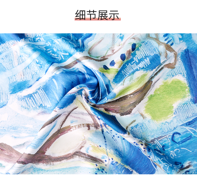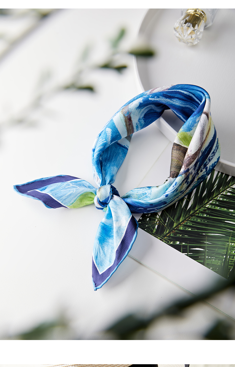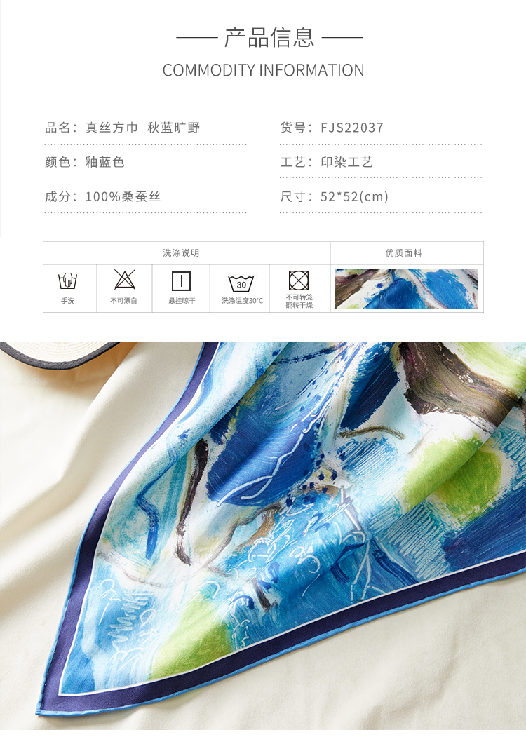 SAINTJOY/上久楷 女式真丝方巾 秋蓝旷野 FJS22037