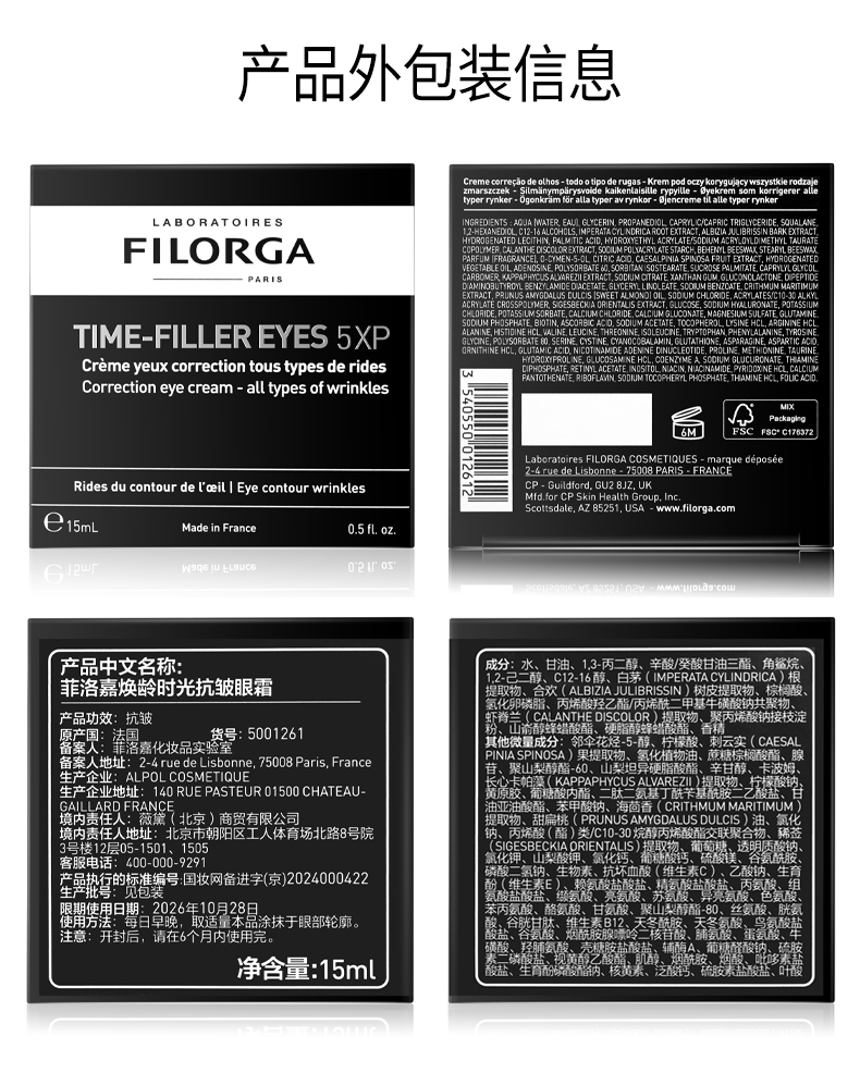 菲洛嘉焕龄时光抗皱眼霜15ml/瓶(效期至26年10月)
