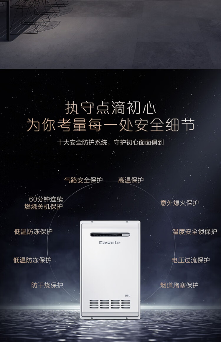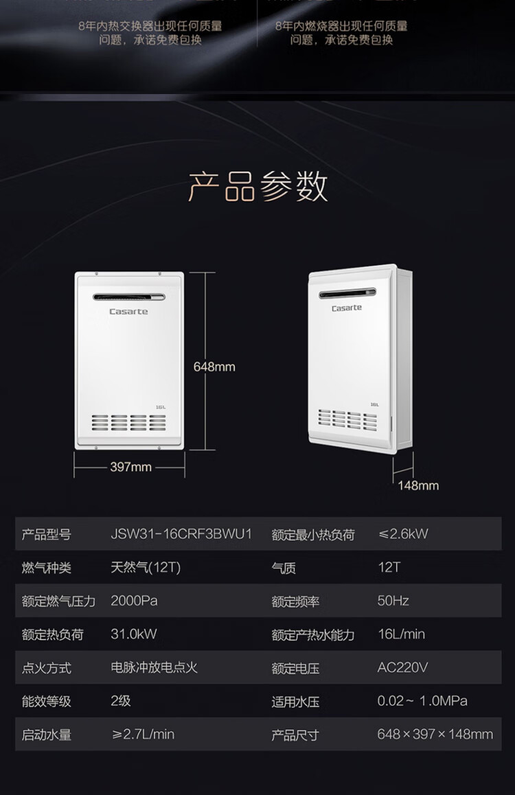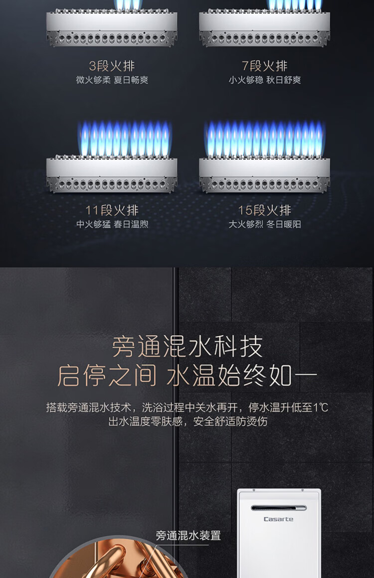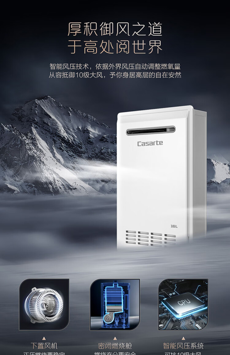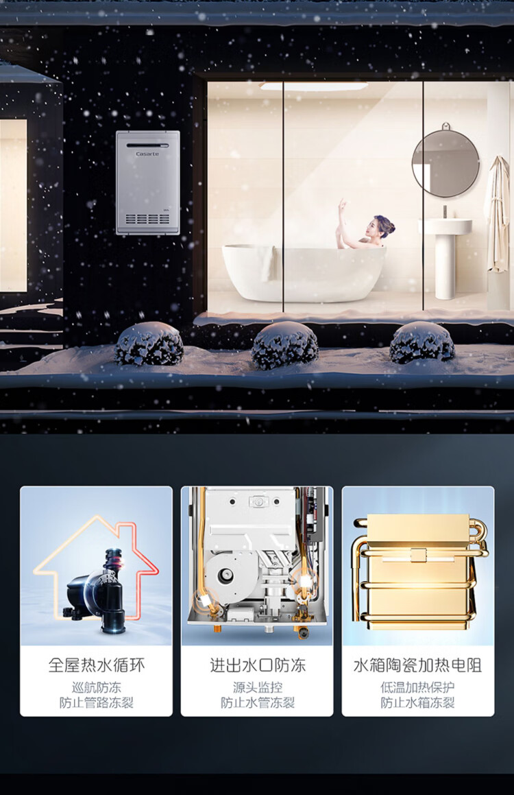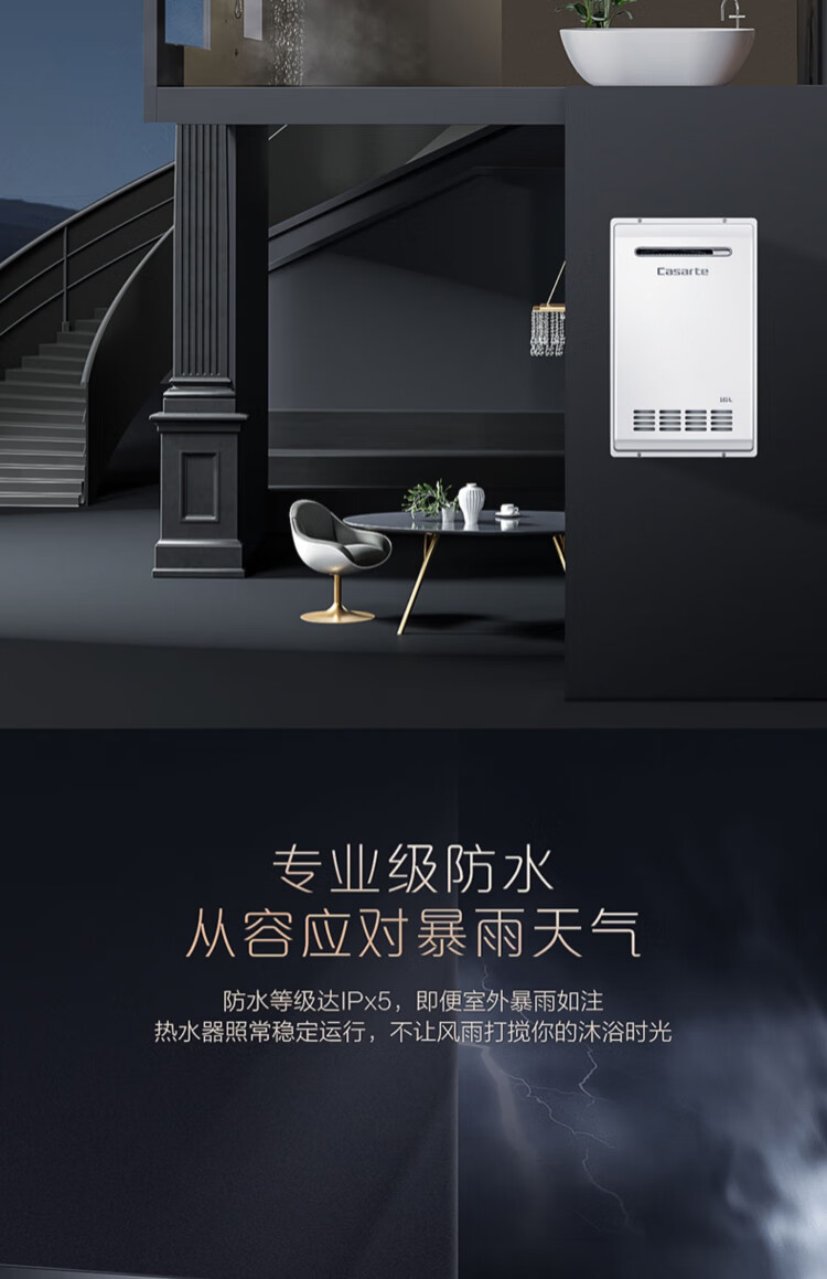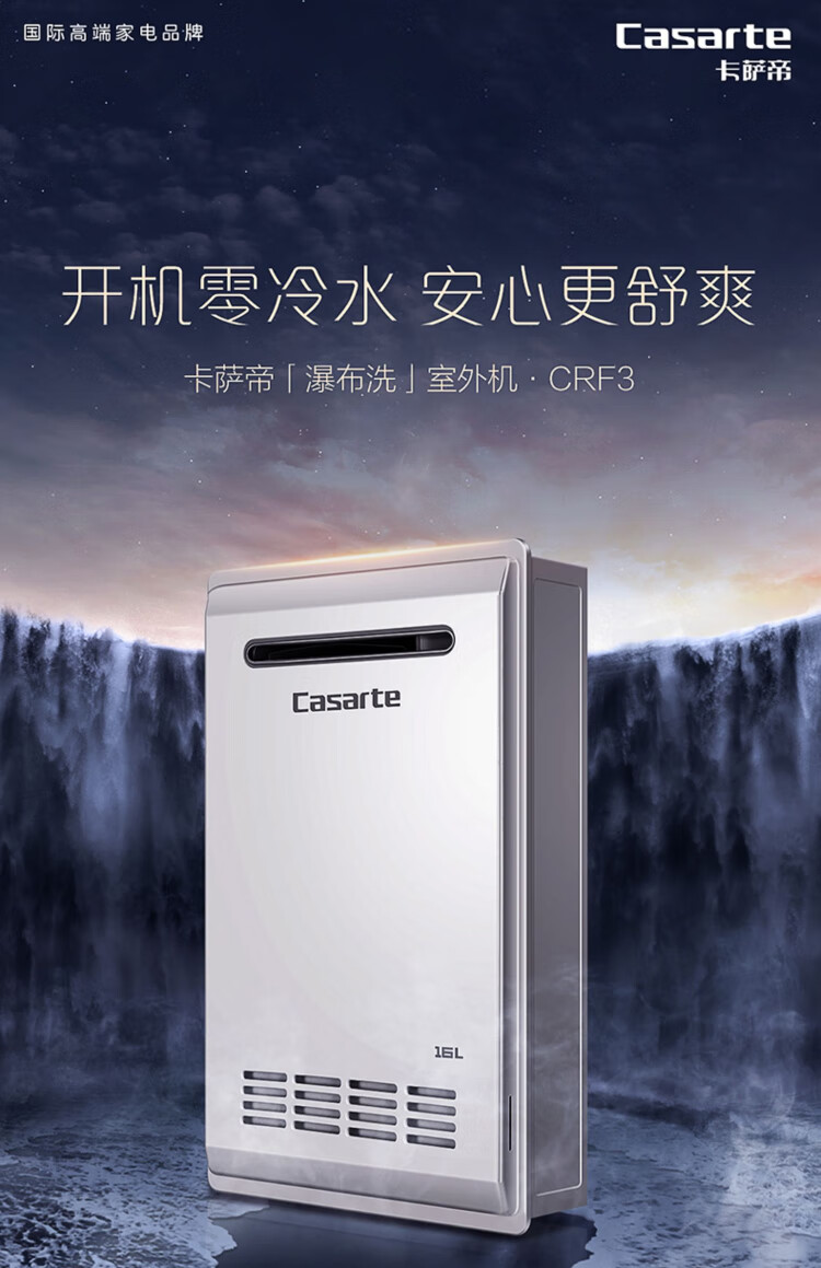 卡萨帝(Casarte)16升三管零冷水室外机家用燃气热水器增压瀑布洗大水量下置风机室外专用智能遥控 JSW31-16CRF3BWU1