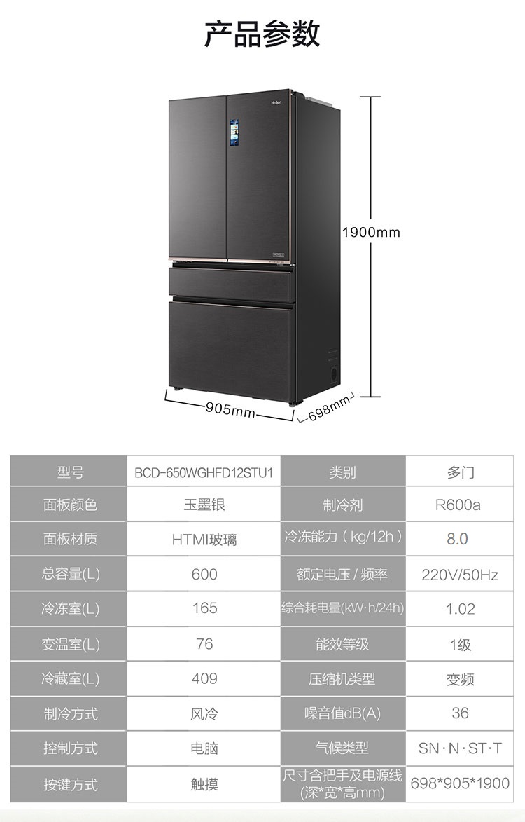 海尔(Haier)冰箱 BCD-650WGHFD12STU1