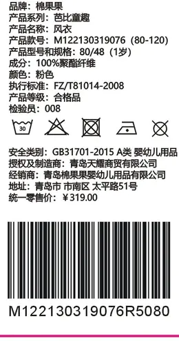 棉果果春秋款女童 风衣外套M122130319076