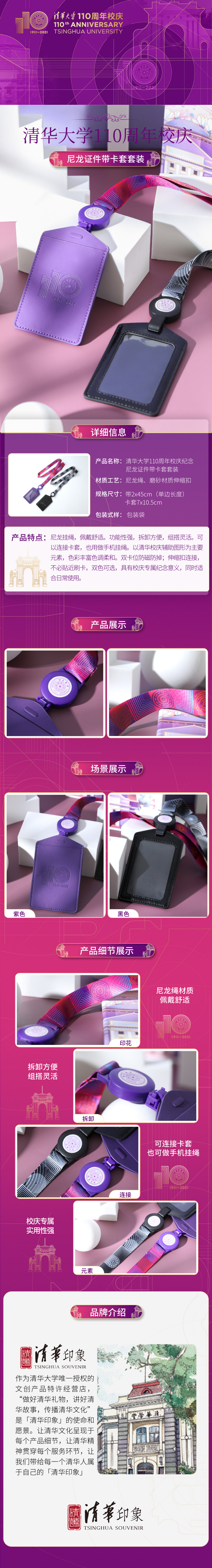 清华大学110周年校庆纪念【尼龙】证件带