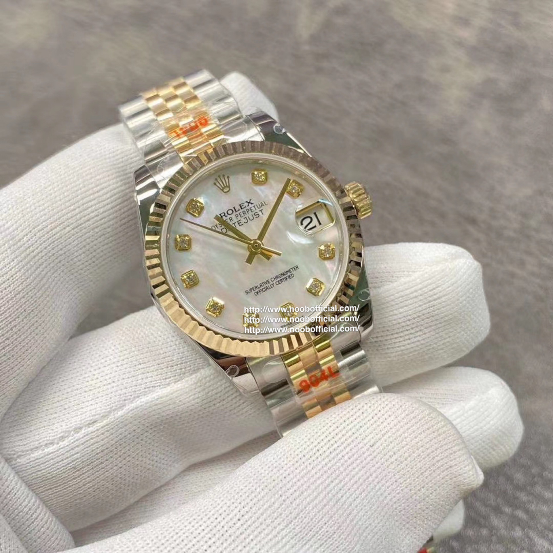 NOOB天然珍珠母贝!包18k金!劳力士蚝式恒动31日志 秀而不媚 恒久优雅 。【表壳】尺寸31mm,采用耗式904钢,表圈镶多粒施华洛斯奇钻 ,保证100米防水