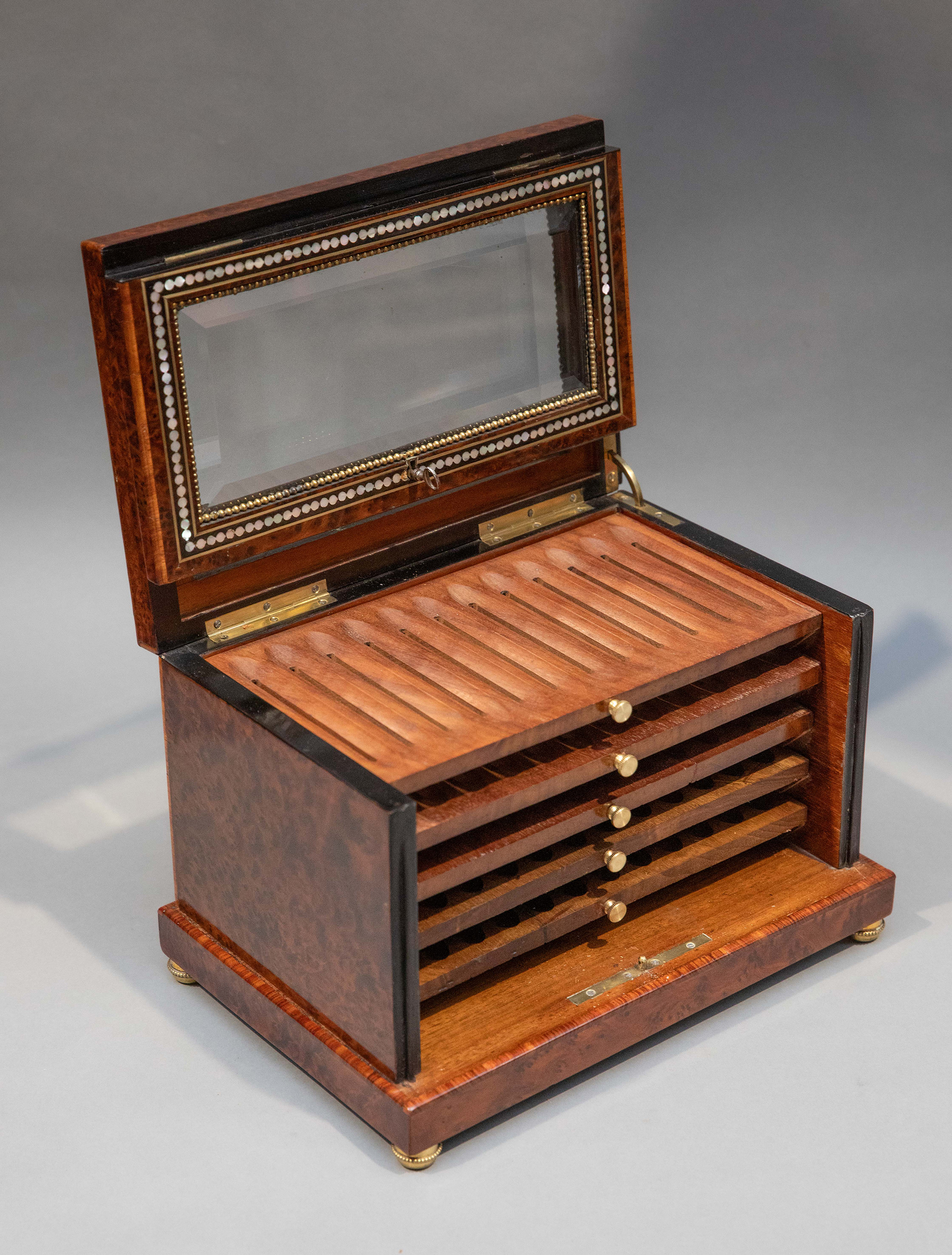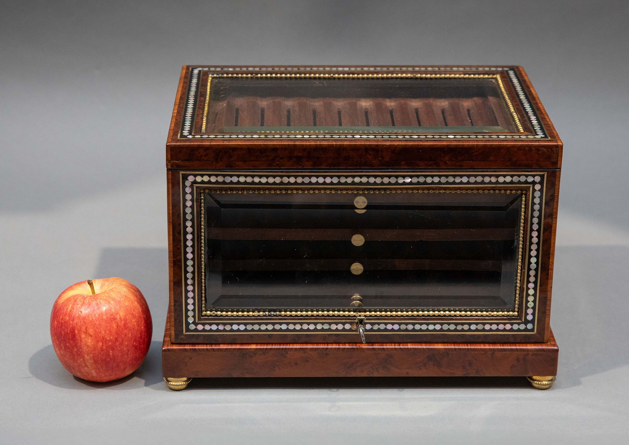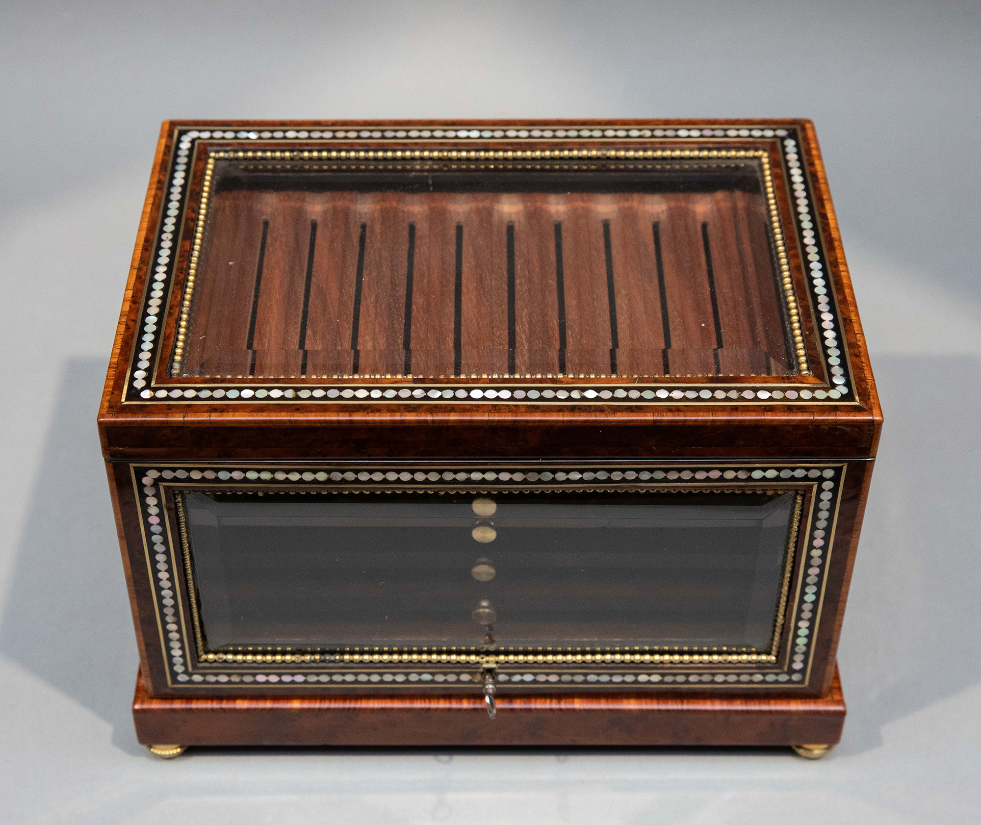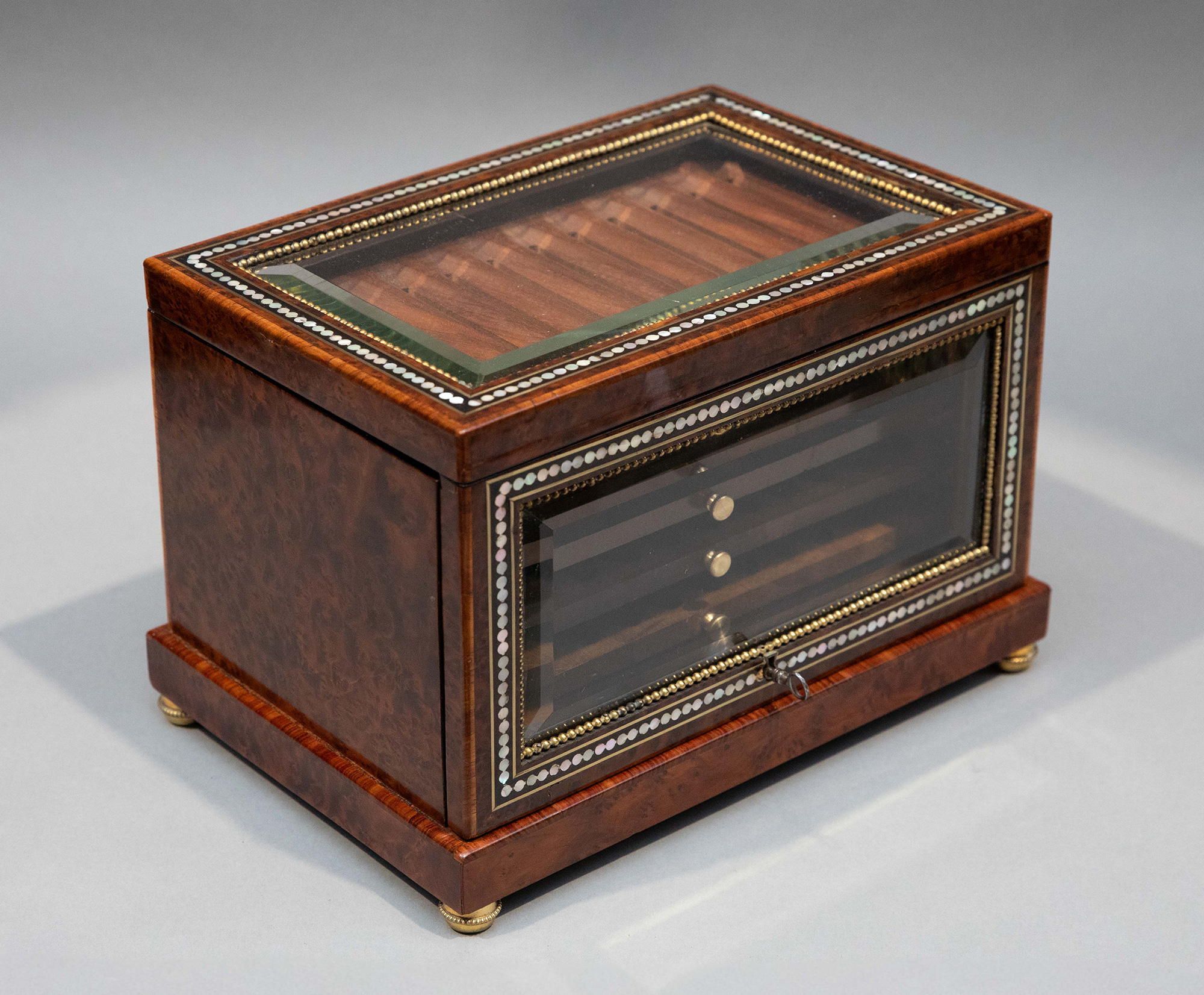 1850-1870年代法国拿破仑三世时期出品手绘描金嵌圆点纹母贝镶嵌水晶实木多层雪茄盒