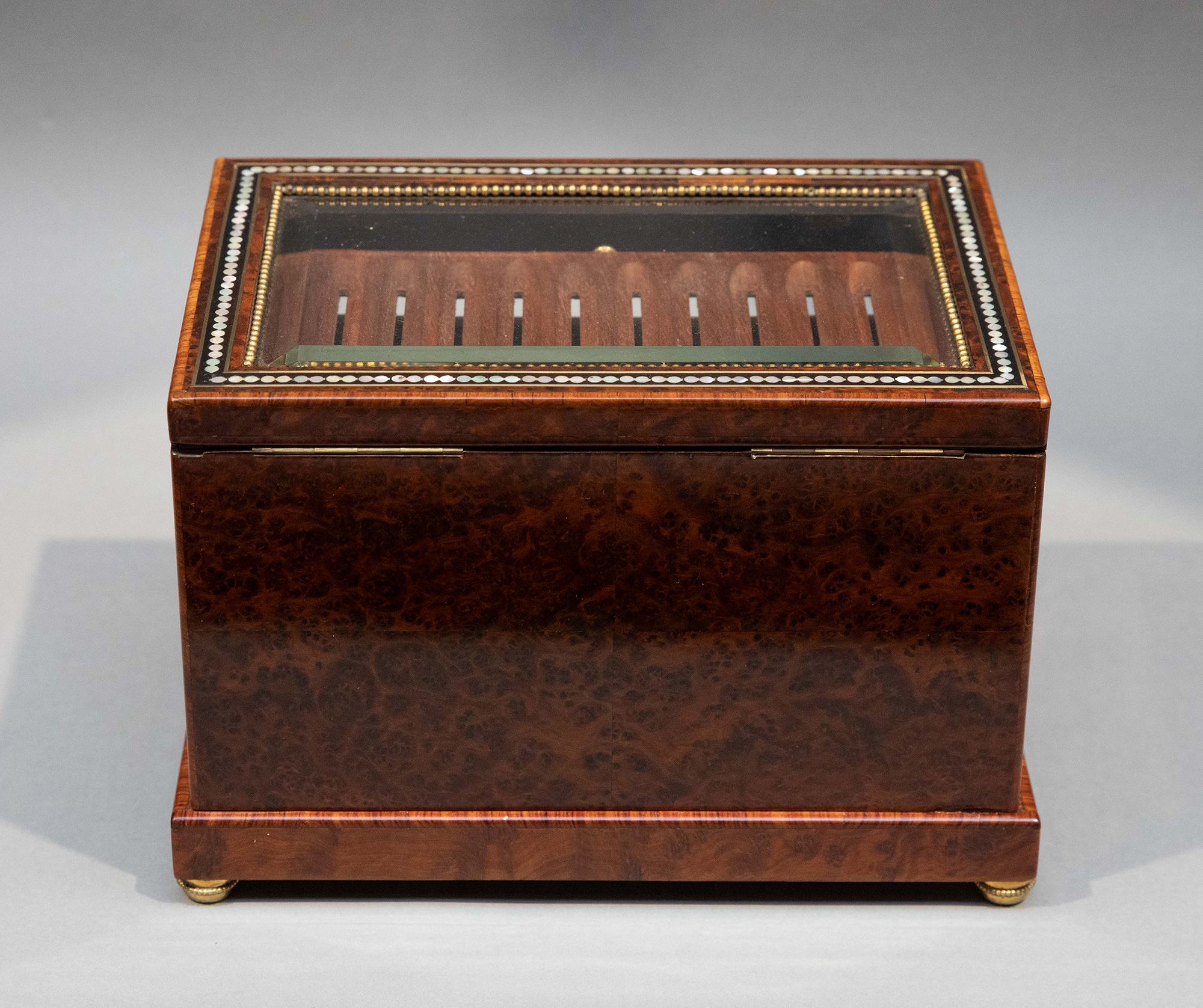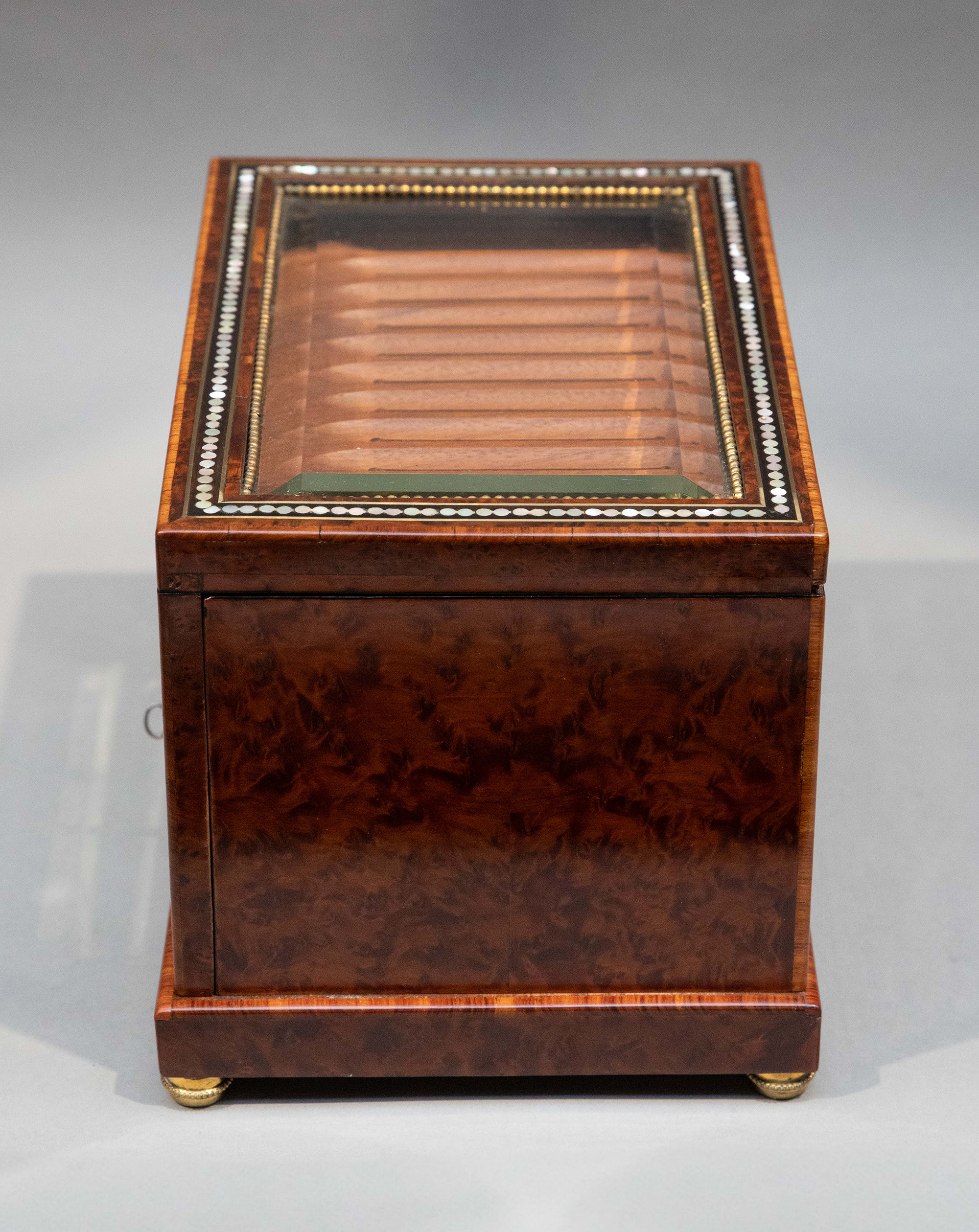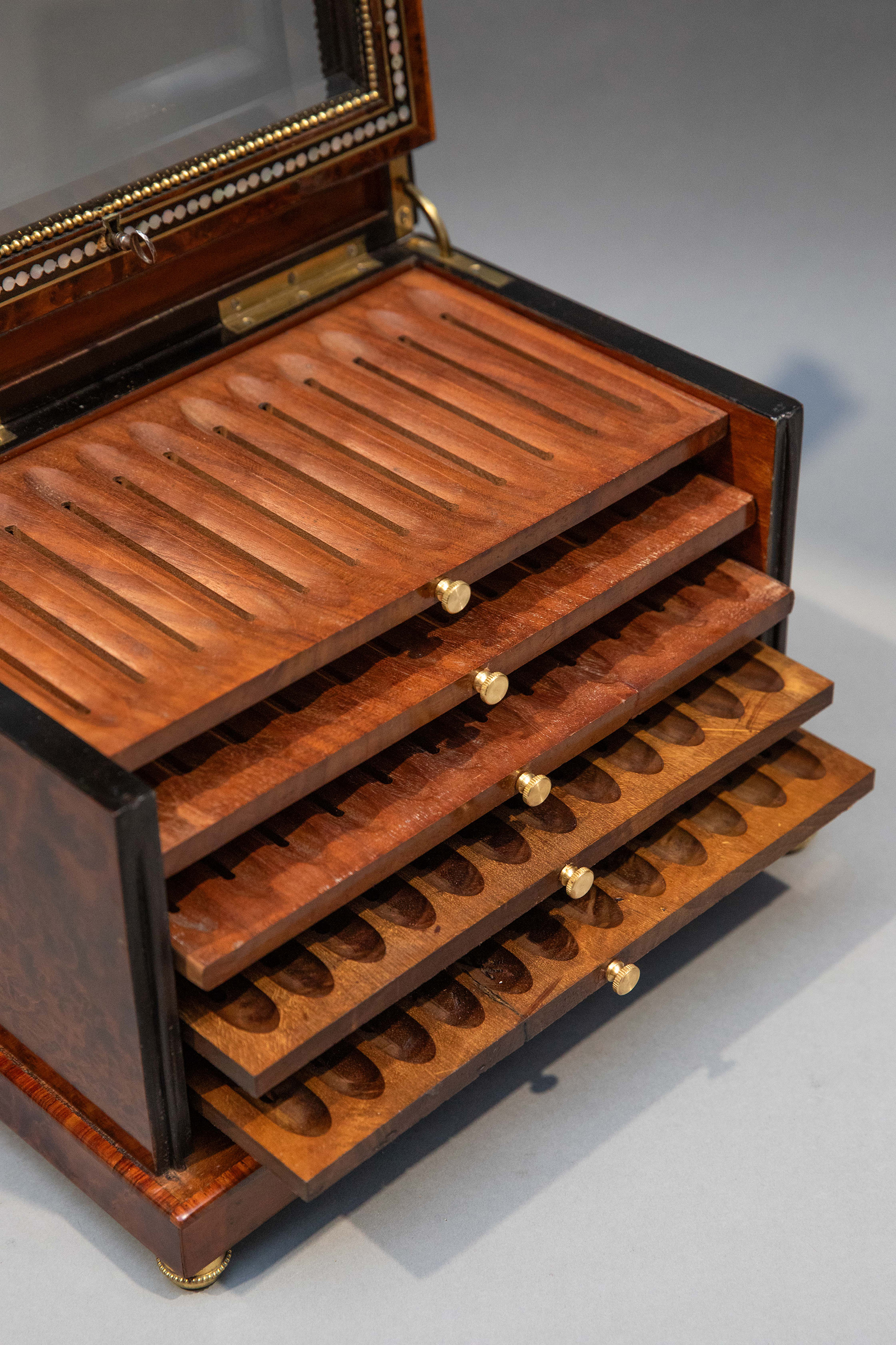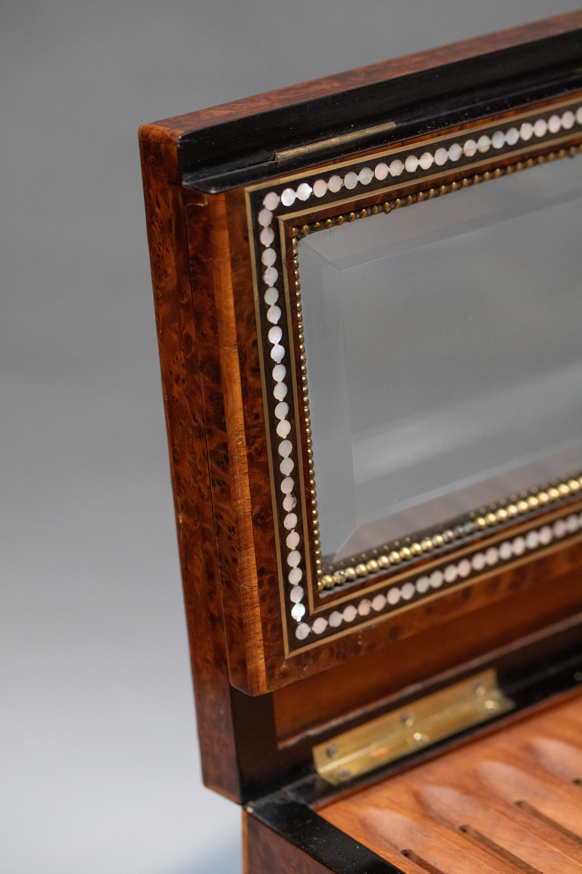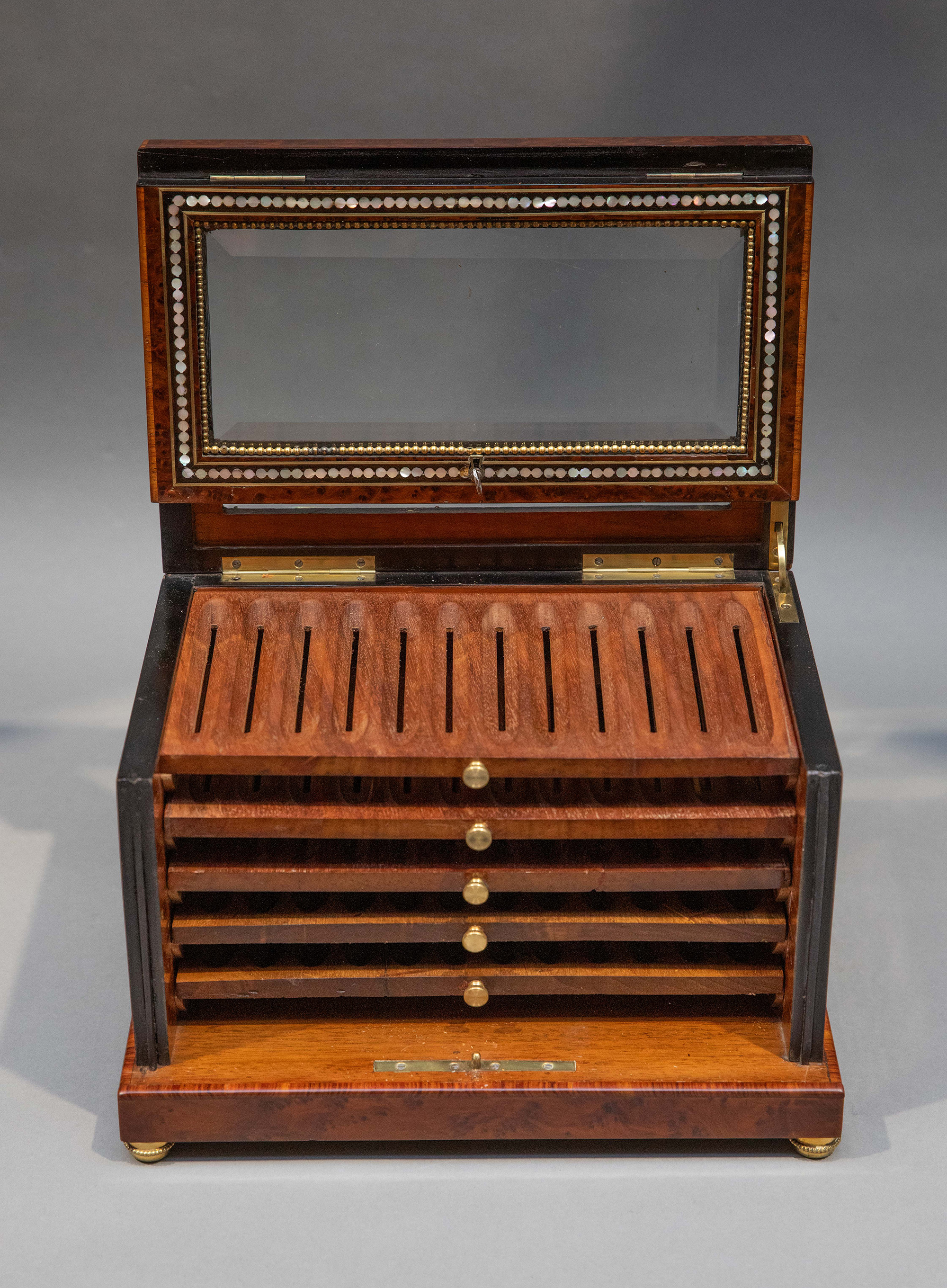 1850-1870年代法国拿破仑三世时期出品手绘描金嵌圆点纹母贝镶嵌水晶实木多层雪茄盒