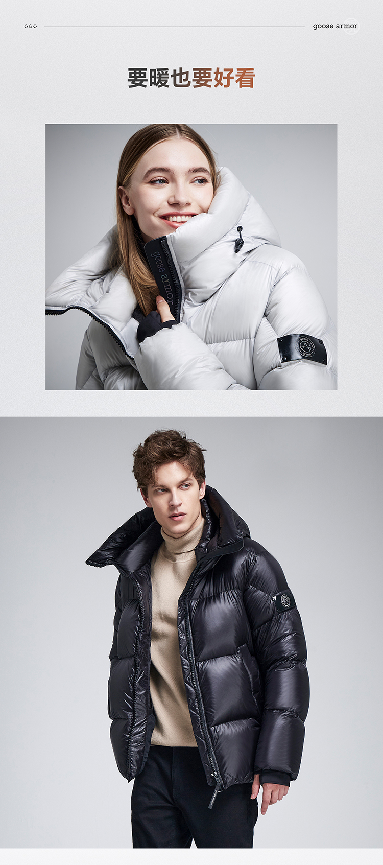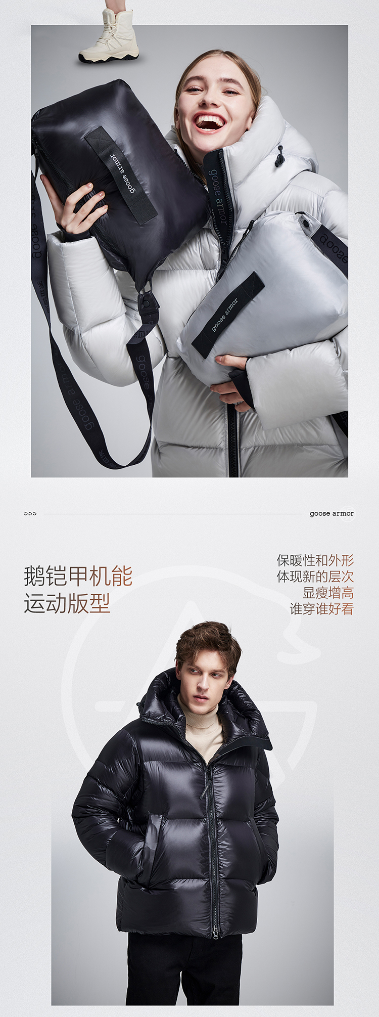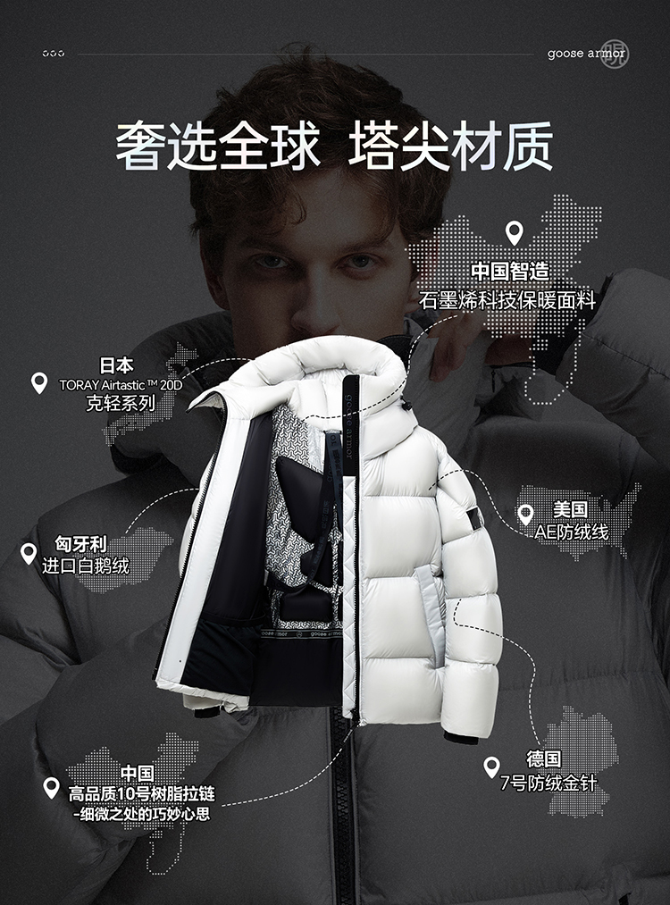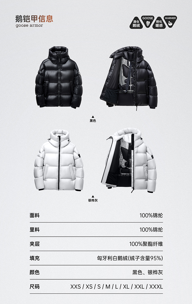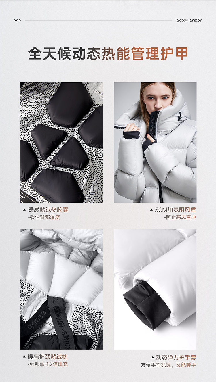 老罗 同款天石2023秋冬新款高端羽绒服鹅铠甲短款加厚白鹅绒连帽男女同款G303