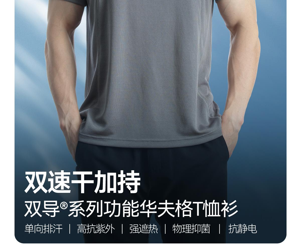单导华夫格圆领短袖t恤吸湿速干透气遮热防晒抗静电男休闲夏