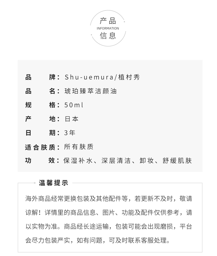 植村秀明星琥珀/绿茶/柚子臻萃洁颜油强韧养肤深层清洁卸妆油50ML
