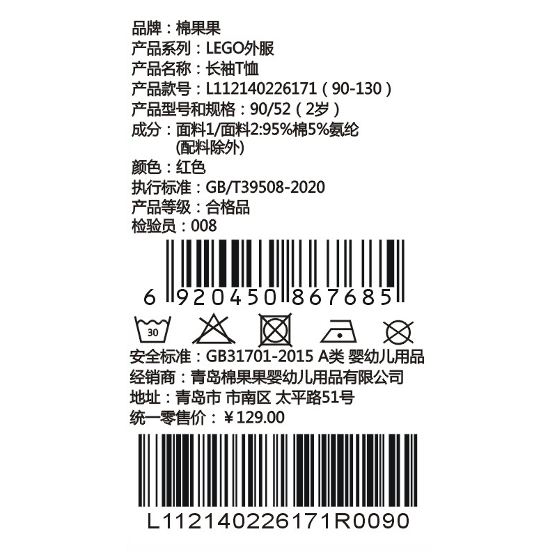 | 规格 部位 | 90# | 100# | 110# | 120# | 130# |