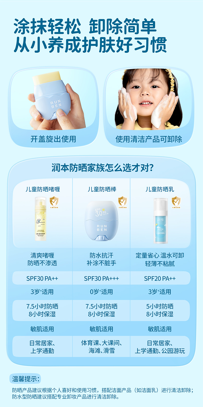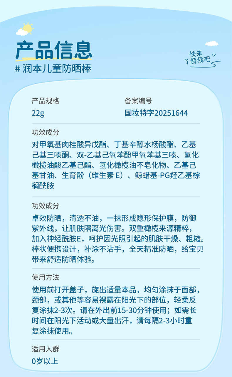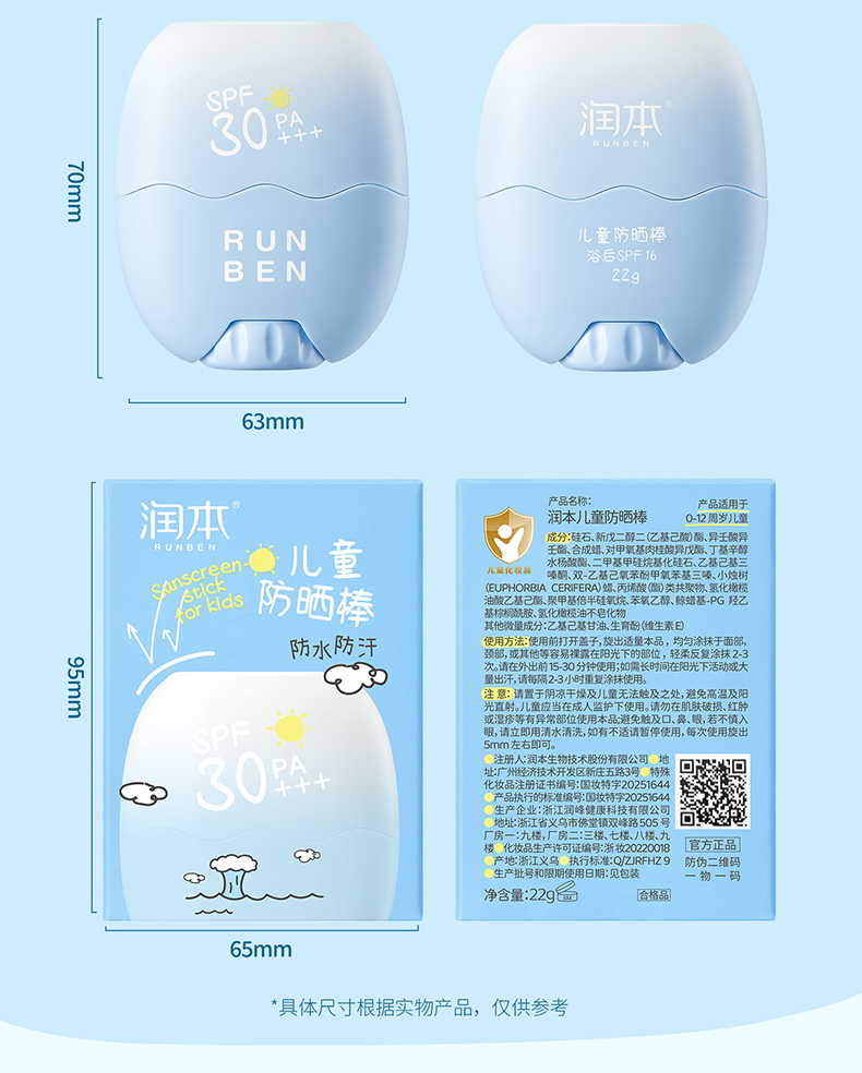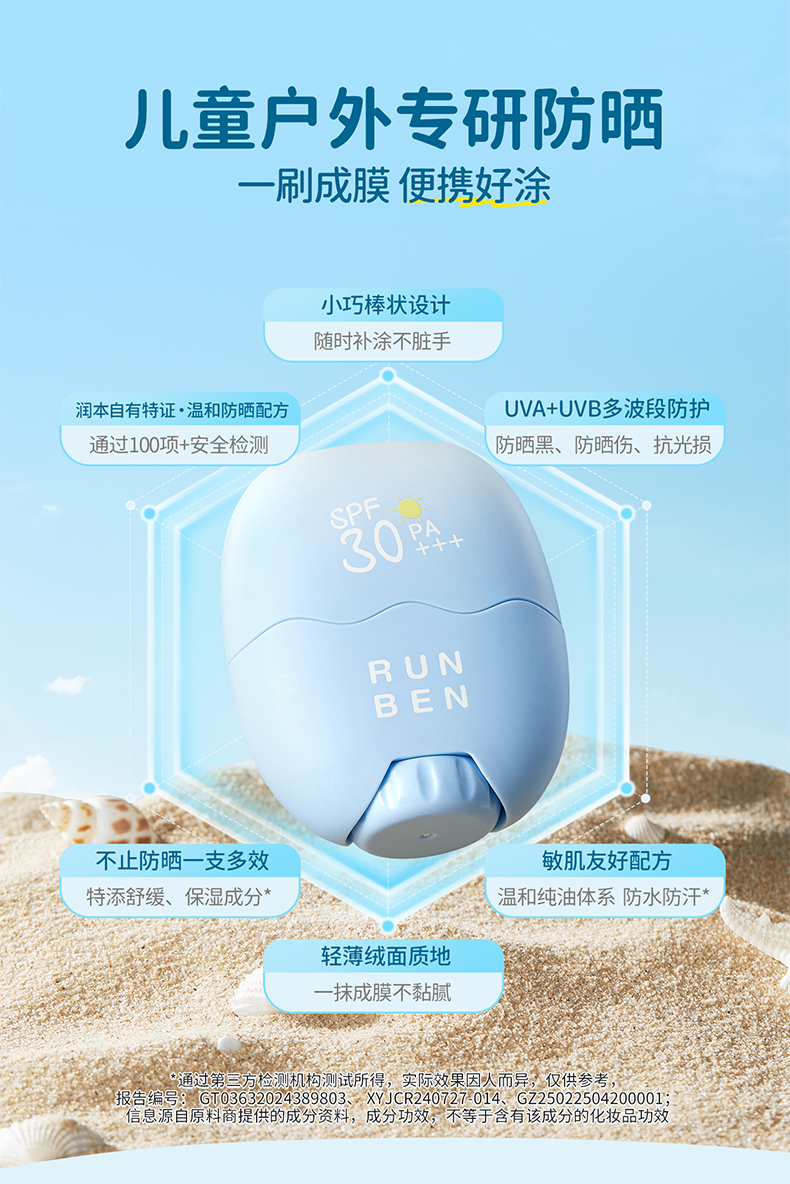 【官方直发】润本儿童防晒棒 男女童专用防晒乳户外防水汗防晒霜 成人可用