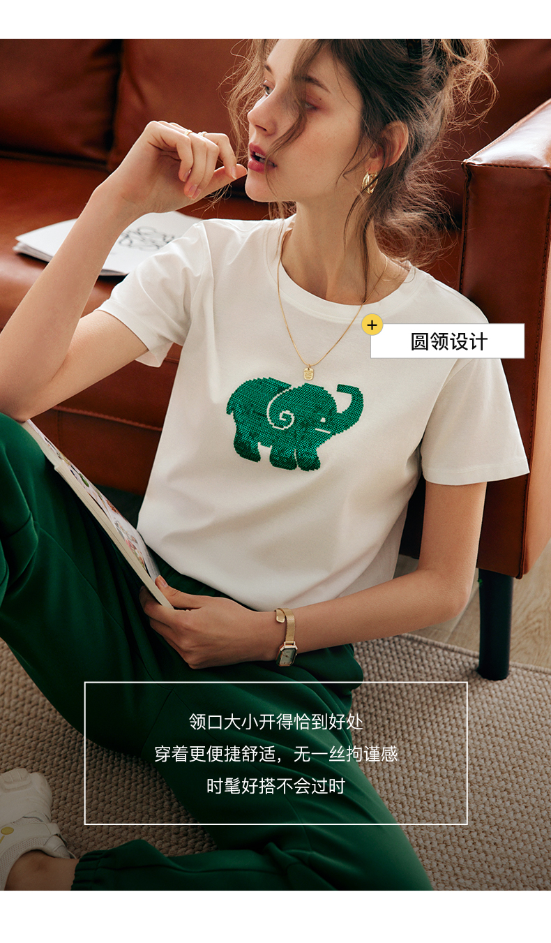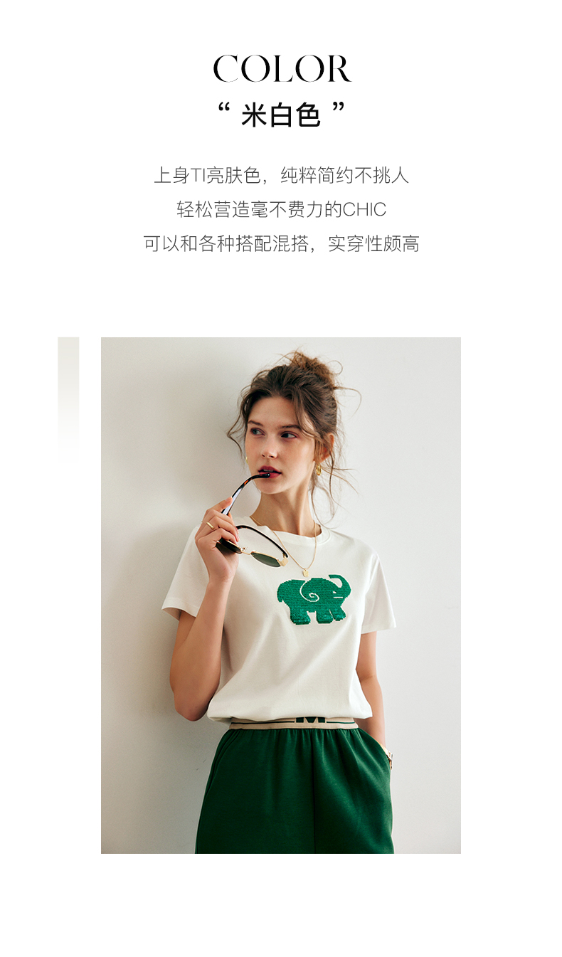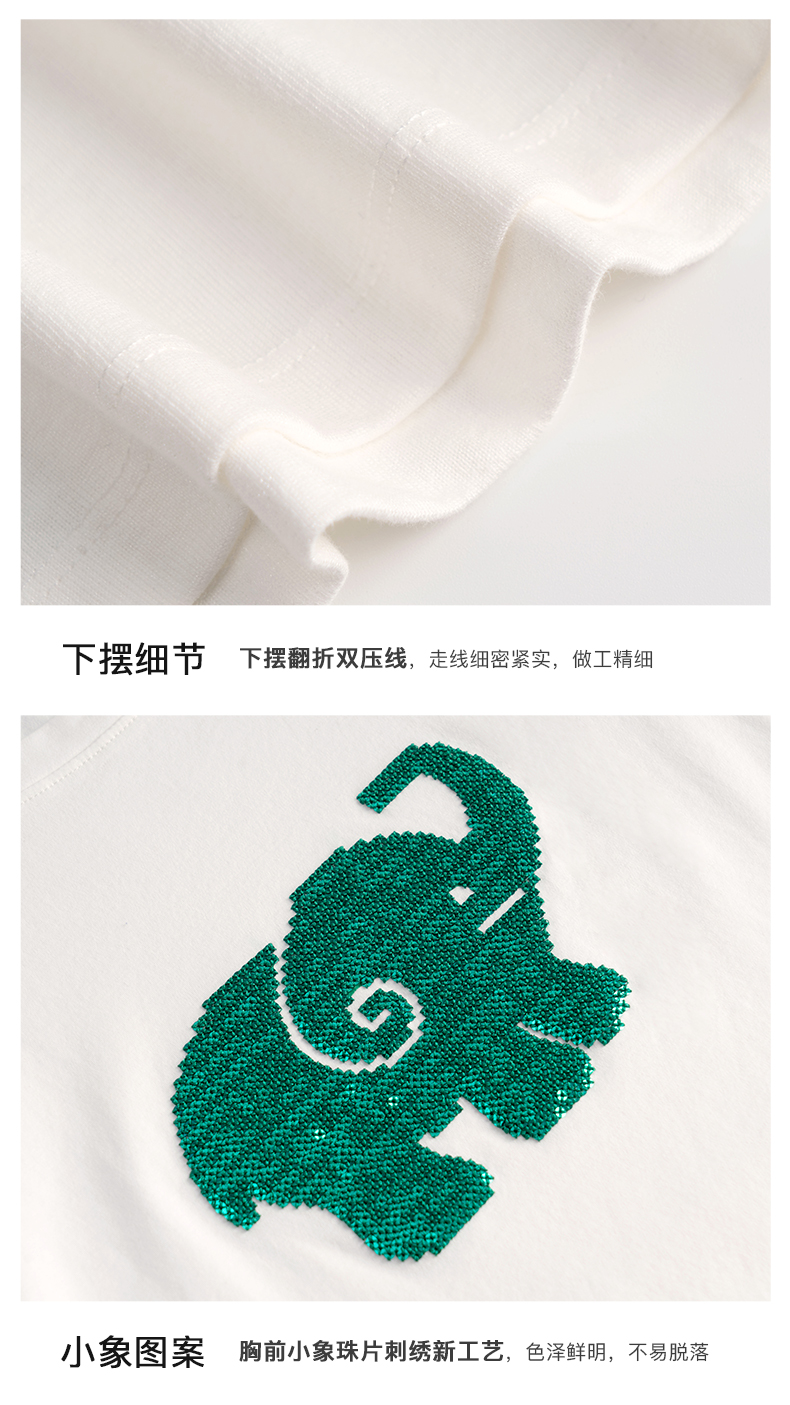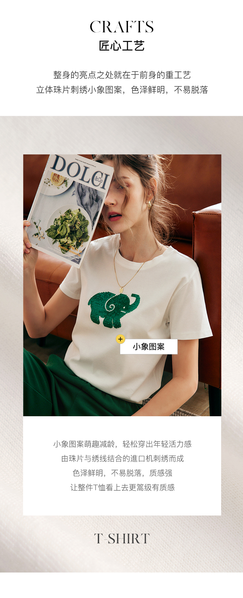 欧芮儿OLrain法式白色短袖T恤女夏季2022年新款小象绣纯棉上衣