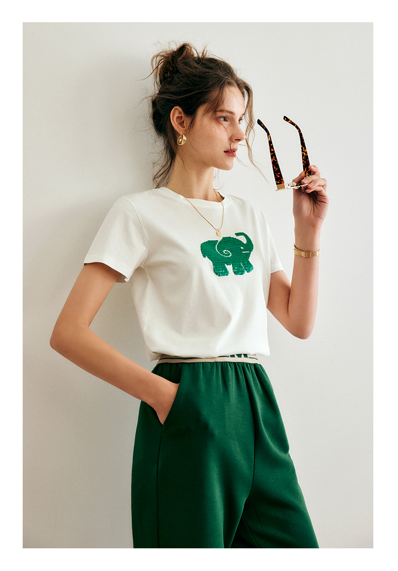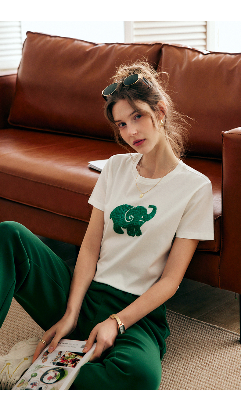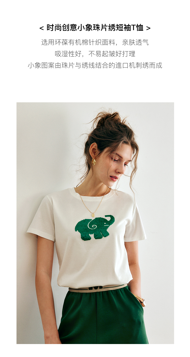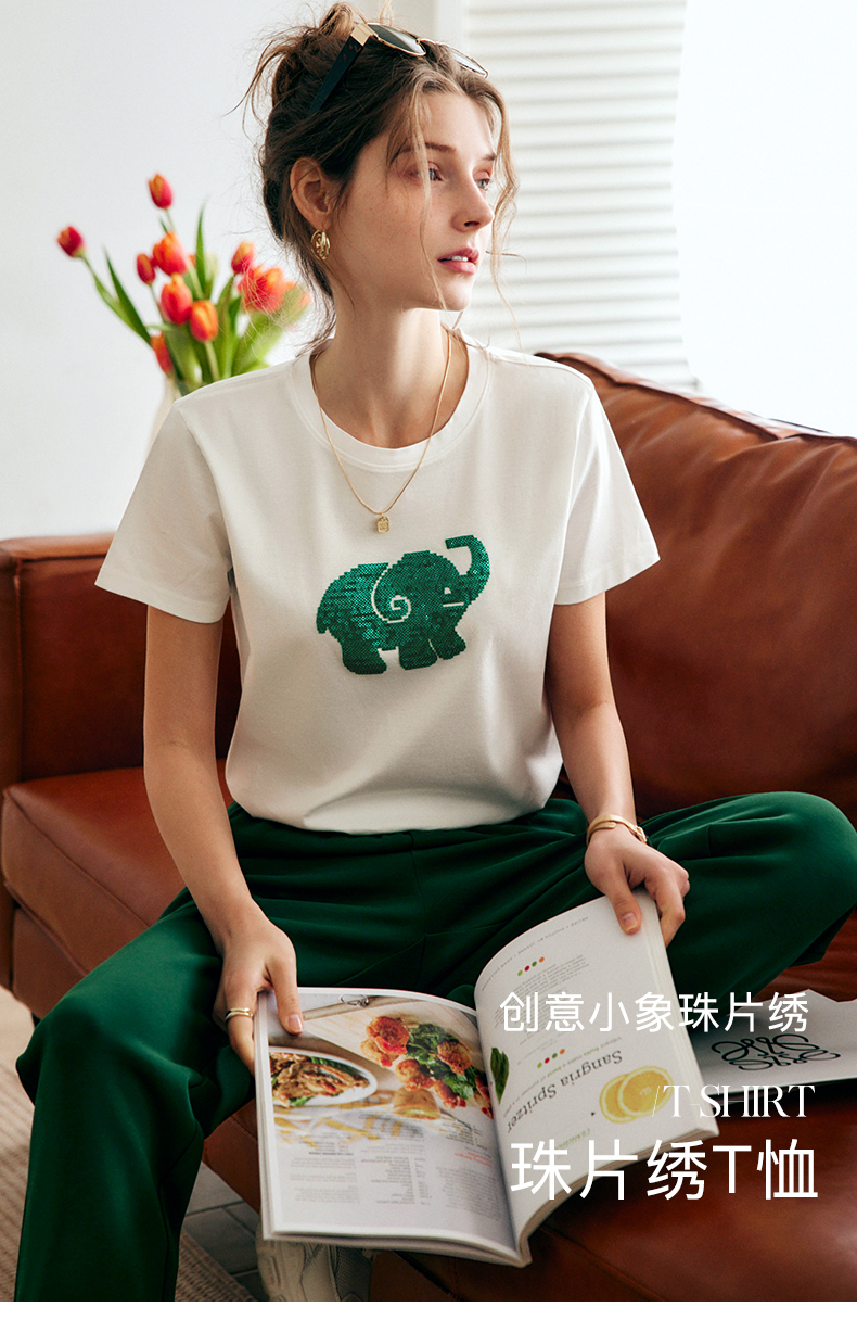 欧芮儿OLrain法式白色短袖T恤女夏季2022年新款小象绣纯棉上衣