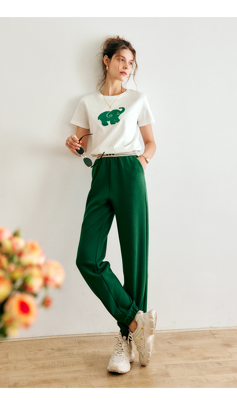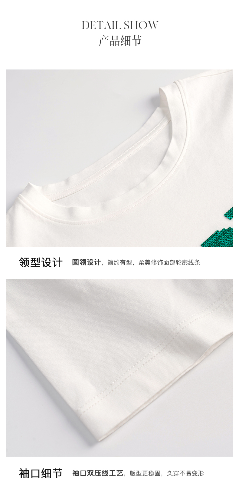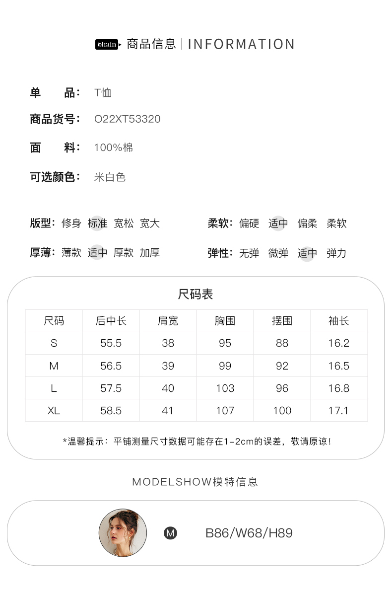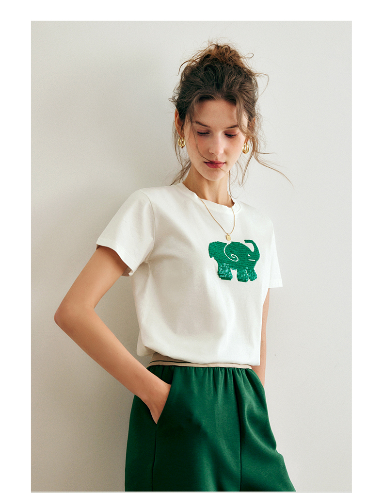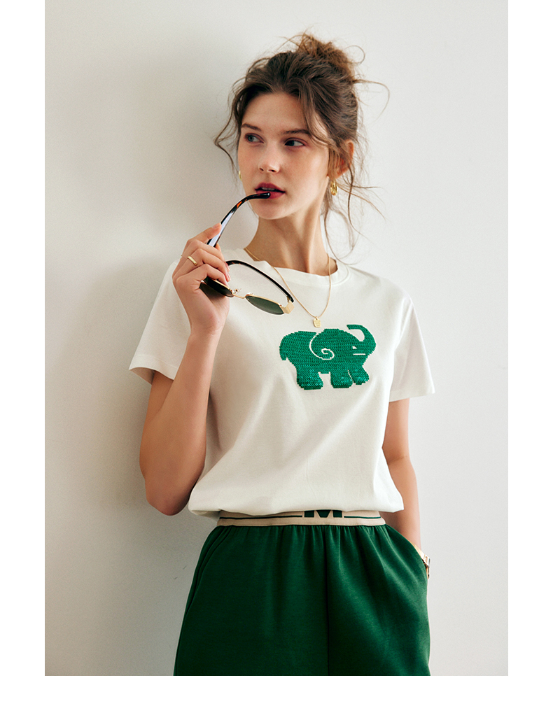 欧芮儿OLrain法式白色短袖T恤女夏季2022年新款小象绣纯棉上衣