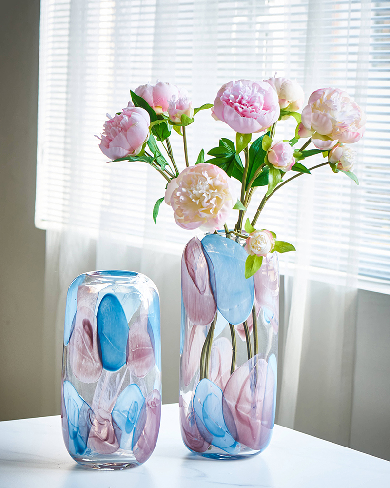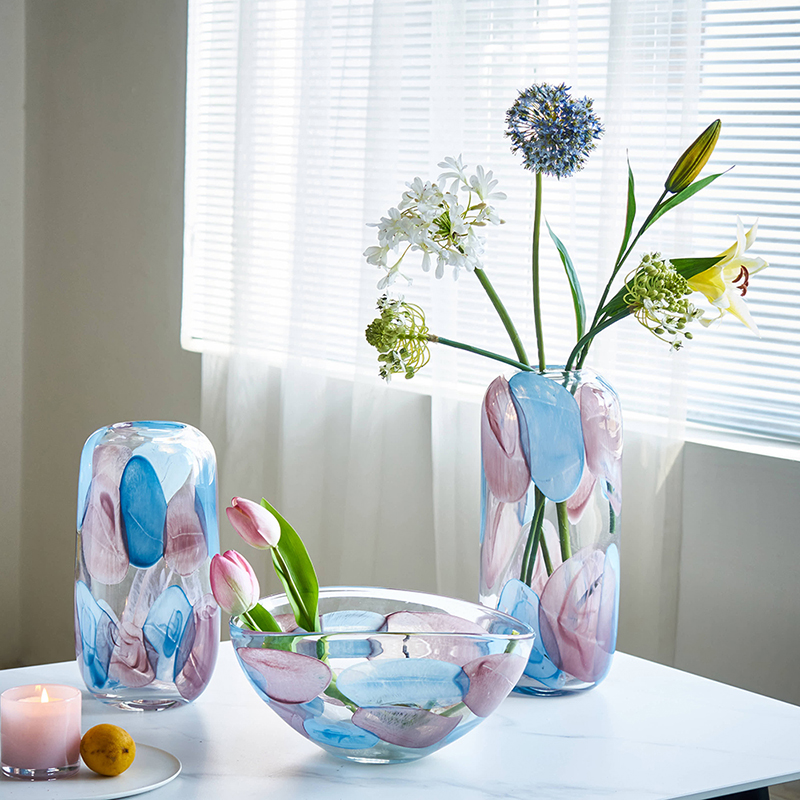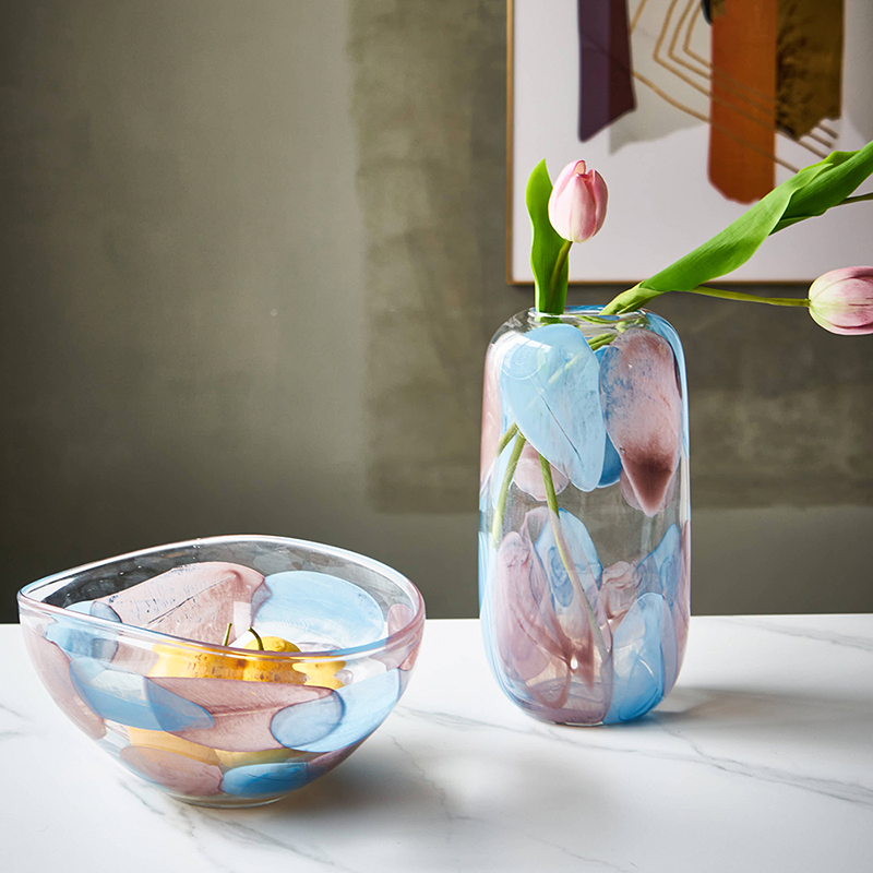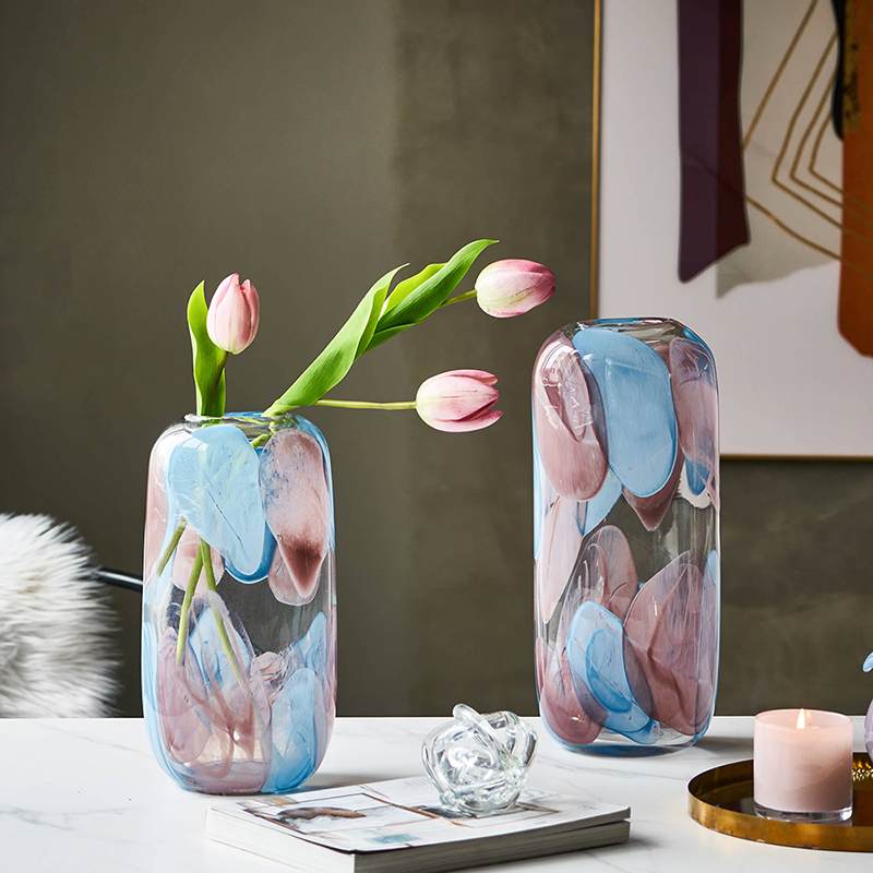 现代轻奢透明淡彩玻璃花瓶水培 家居装饰品摆件客厅餐厅软装花瓶