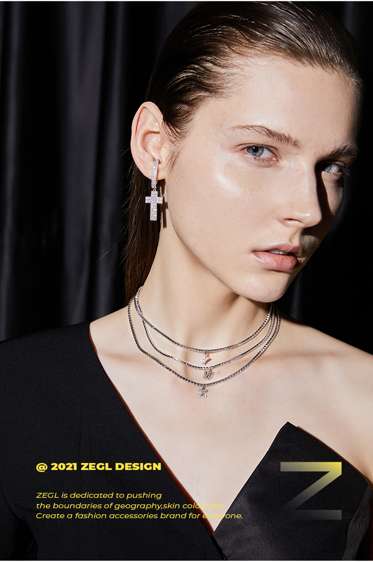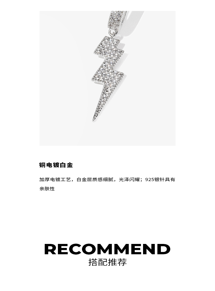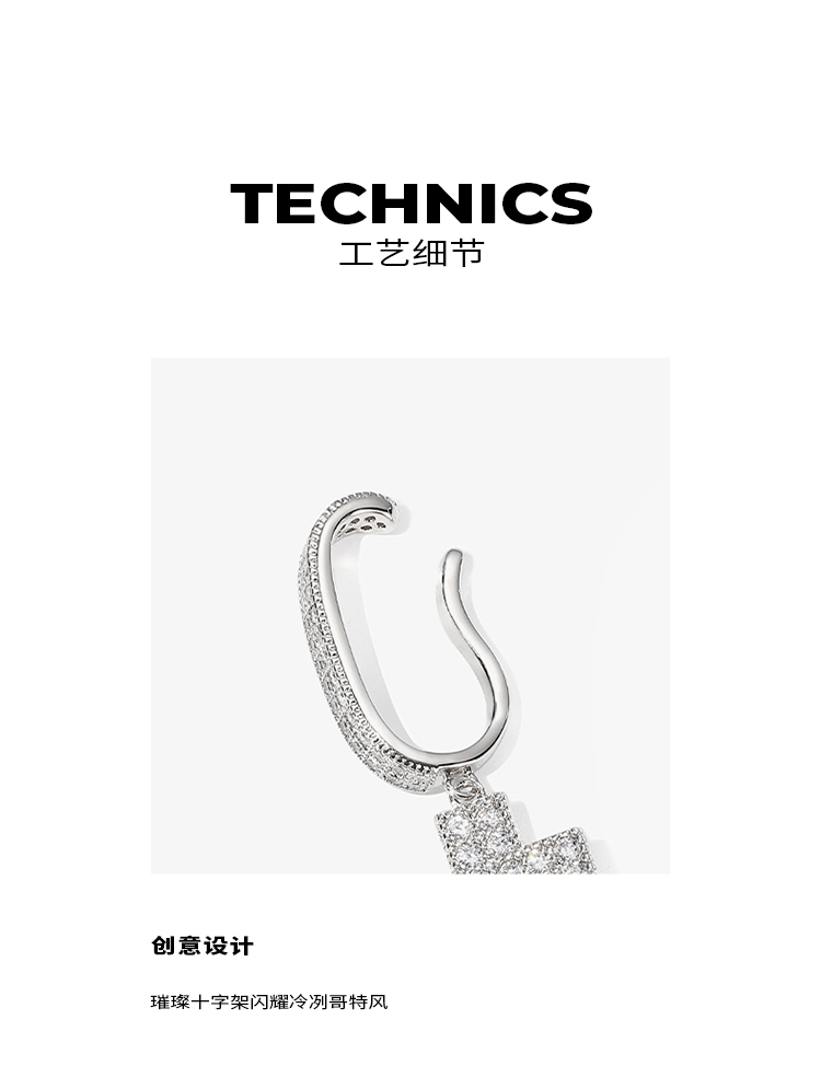 ZEGL设计师闪电十字架耳挂耳环女无耳洞耳夹简约冷淡风耳骨夹耳饰
