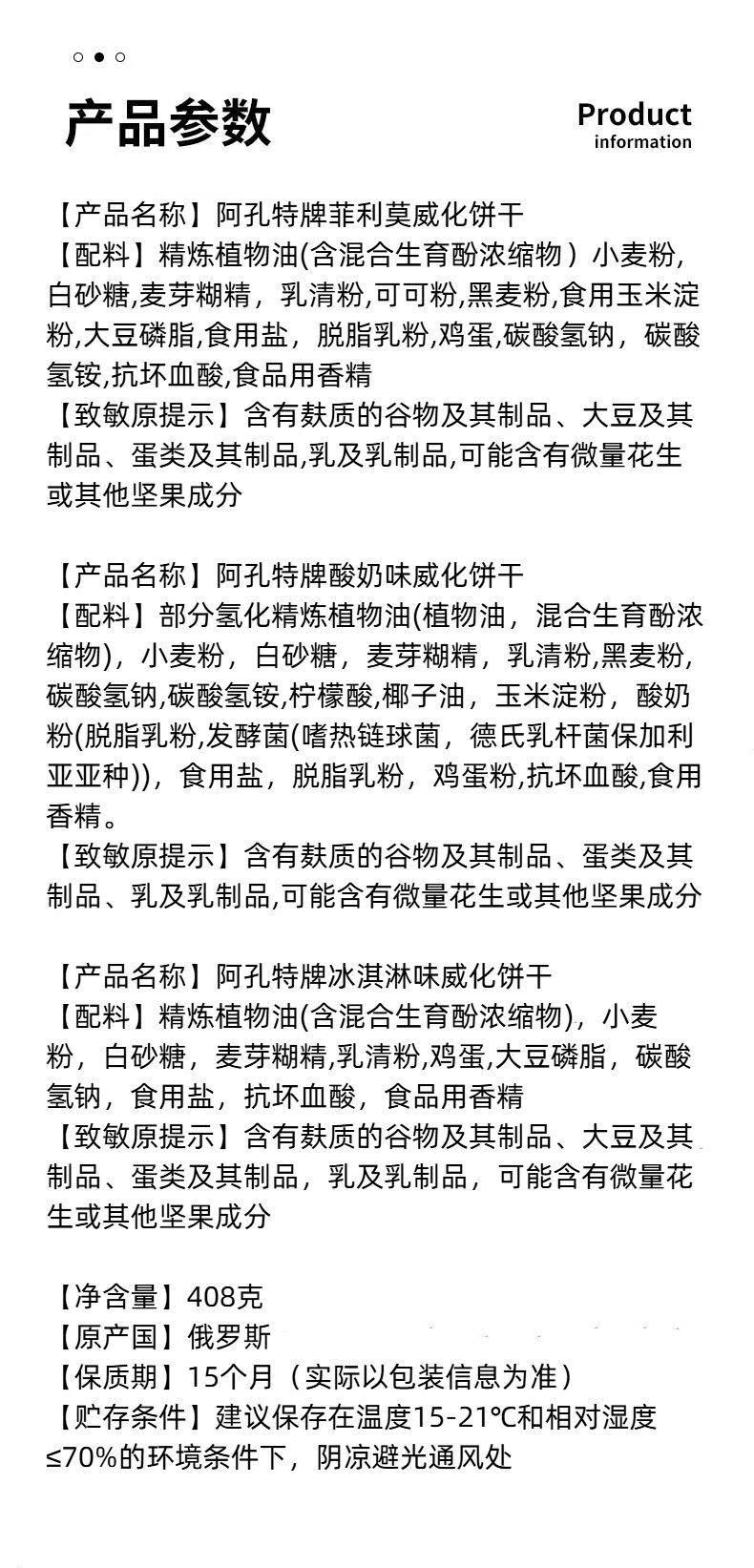 俄罗斯进口阿孔特牌威化饼干408g【多种口味】